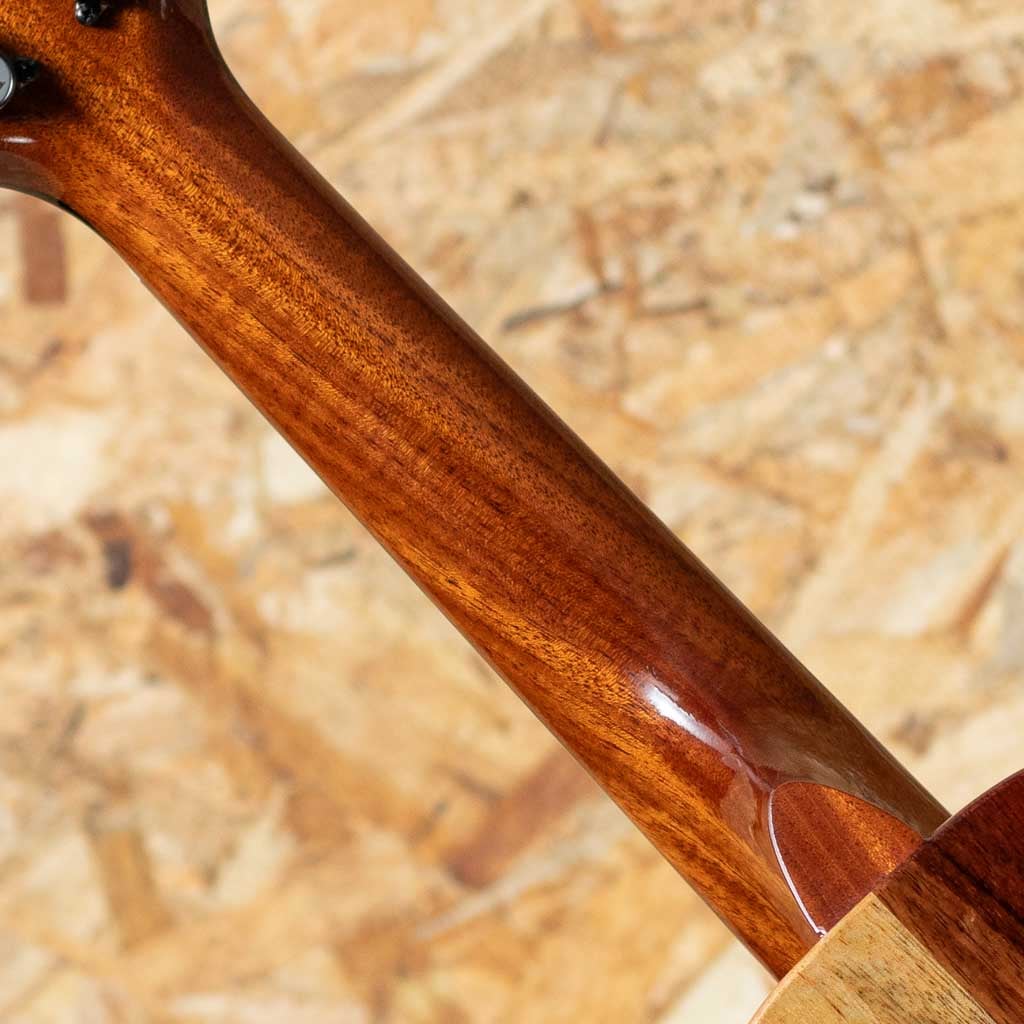 アルヴィン・オカミにより1995年に創設されたコアロハ・ウクレレ。現在は長男で社長のアランと、次男で副社長のポールを中心に、少数精鋭にて運営されております。今ではハワイを代表するウクレレメーカーの一つとなったコアロハ。モダンなルックスデザイン、優れた演奏性で、他のメーカーにはないハイファイでクリア、そしてなんと言っても大きな音量が特徴。本器はボディにハワイアンコア、マンゴーを半分ずつ用いたユニークなルックスが特徴の”ナウパカ・シリーズ”のソプラノモデル。名前はハワイに生息する花びらが片側半分しか咲かない花”Naupaka”に由来します。この花には伝説があり、火の神の嫉妬により引き裂かれた男女がそれぞれ別々の場所に咲くマウンテン・ナウパカ、ビーチ・ナウパカという花(それぞれ実際にハワイに生息します)になったが、片側しか花を咲かすことができず、それは現在も続いており、その2つのナウパカを合せると2人の魂に導かれ、恋人達はきっと結ばれると言われています。(伝説は他にも何種類かございます。)そんな神秘的な伝説を持ったナウパカをハワイアンコアとマンゴーで表現したデザイン性溢れるモデルです。ウクレレ全体でそれぞれの材の対比が本当にユニークに表れております。コアロハらしくクリアなサウンドですが、低域の広がりもありながら、中域・高域は華やかで明るく、ハワイアンコア材とマンゴー材の良いとこ取りの様な響きを持っております。新たに少し仕様変更があり、ヘッドの突板がエボニーに変わっています。映えるルックスのモデルです。耐久性抜群かつ軽量なセミライトケースが付属します。