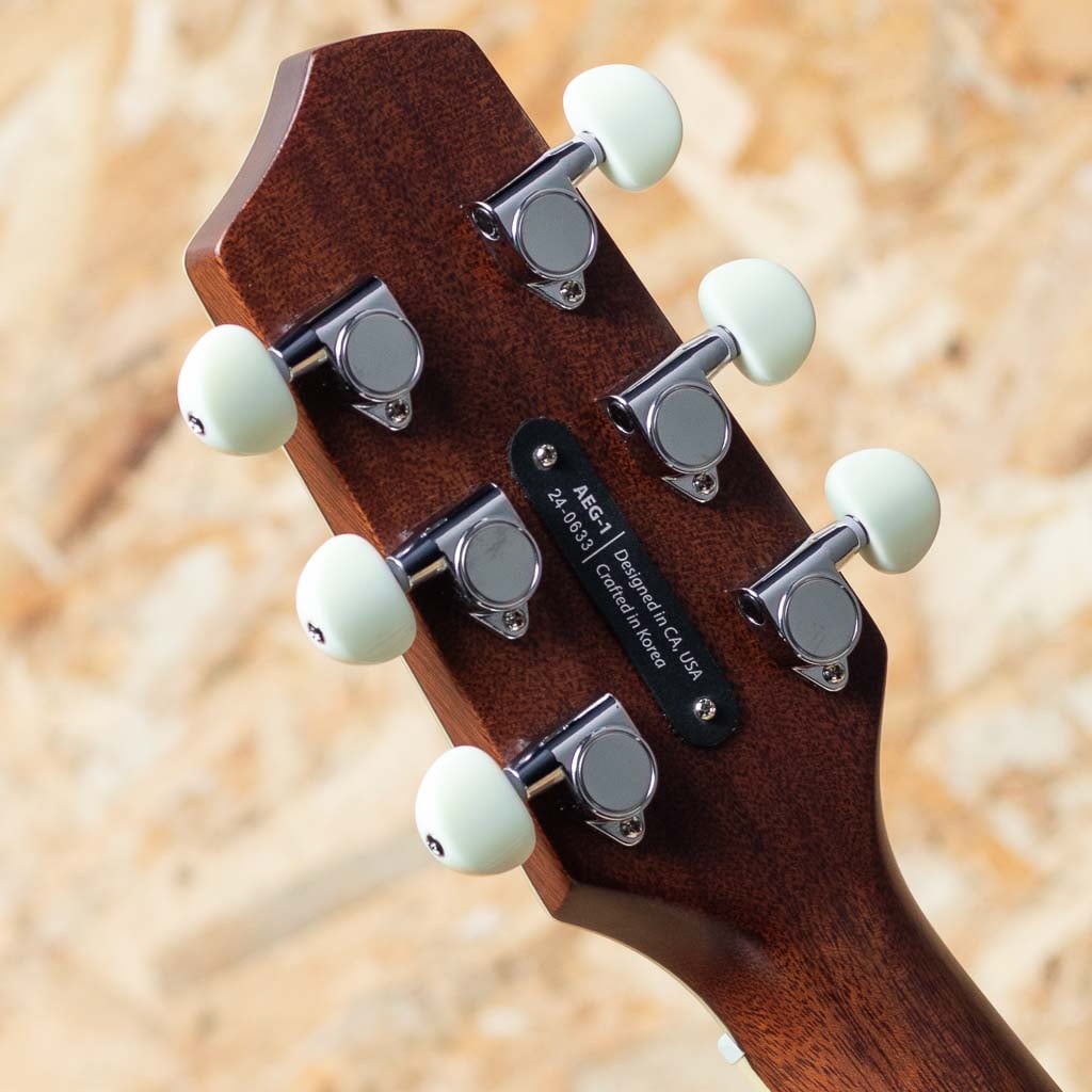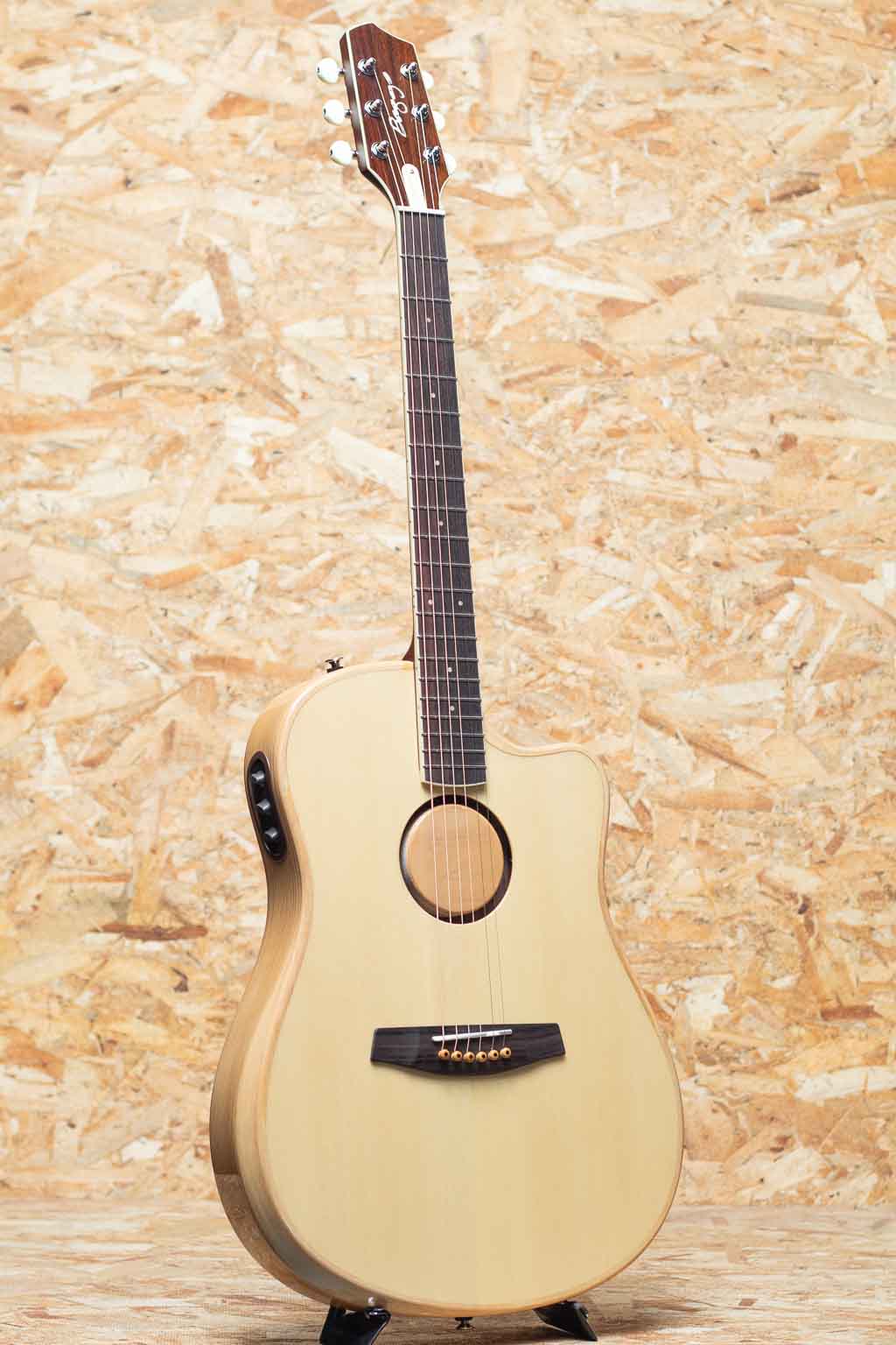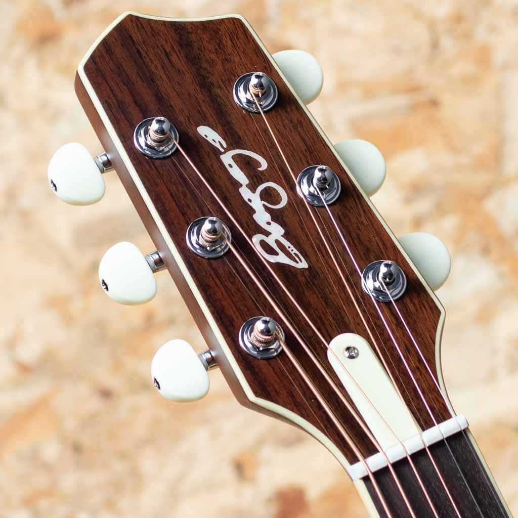 ピックアップには最新のHiFi Duetを採用。優れたバランス、トーン、明瞭度、ダイナミクスを持つHiFiブリッジ・プレート・センサーと、スタジオ・マイクに匹敵するSiloマイクで構成。コントロールは、マスター・ボリューム、ピックアップ/マイク・ブレンド、トーン、位相反転、バッテリーライフ・インジケーター。ステージ等でもダイレクトでナチュラルなサウンドを出力し、高いパフォーマンスを発揮します。トップ材は3種類の展開をしており、本器はイングルマン・スプルースのナチュラルカラーモデルです。