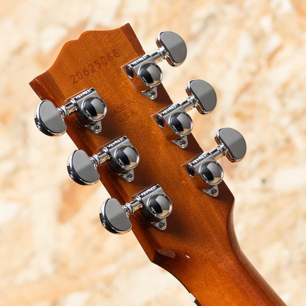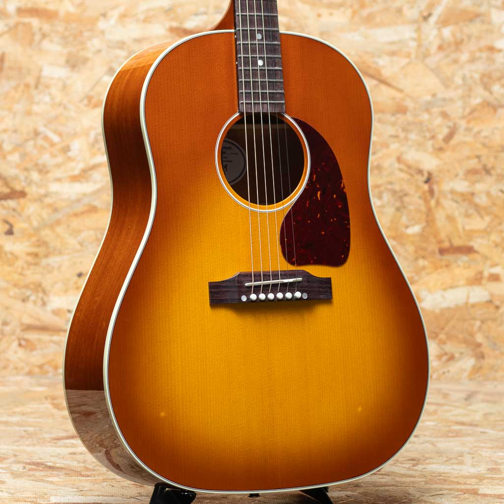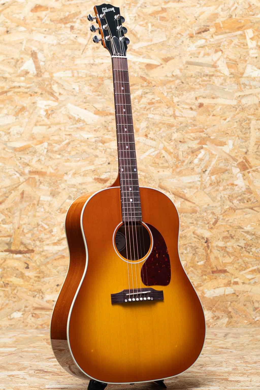 "The Workhorse(頼りになる馬車馬)" の愛称で信頼されるベストセラー・モデル。ウォームな低域とエッジの効いた中高域が織りなす優れた表現力でプレイヤーを支え、どんなときにも信頼できるパートナーとして1942年の登場以来、ギブソン・ラウンド・ショルダー・ラインナップの中心的役割を担い続ける”J-45”。基本的なスタイルは継承されつつもマイナーチェンジを繰り返し、年々進化し続けております。本器は赤を浅く飛ばした"J-45 Standard Heritage Cherry Sunburst"。シトカスプルーストップ、マホガニーサイド&バック、マホガニーネック、ローズウッド指板&ブリッジ、グローバーペグ、MOP指板ドット、べっ甲柄スモールガード、スキャロップド・Xブレイシング、L.R.Baggs Element VTCピックアップ標準装備。グローバーペグにべっ甲柄スモールガードを装備したJ-45 Standardのカラーチェンジモデルとなっています。ブライトで気っ風の良いレスポンス、ドライでどこか泥臭さを感じさせる倍音、外観と違わぬ荒削りなサウンド。発表以来、数々の名演を支えてきた"J-45"、移りゆく時代の中でも変わらぬ憧れと同時に一味違った趣を放つ一本です。