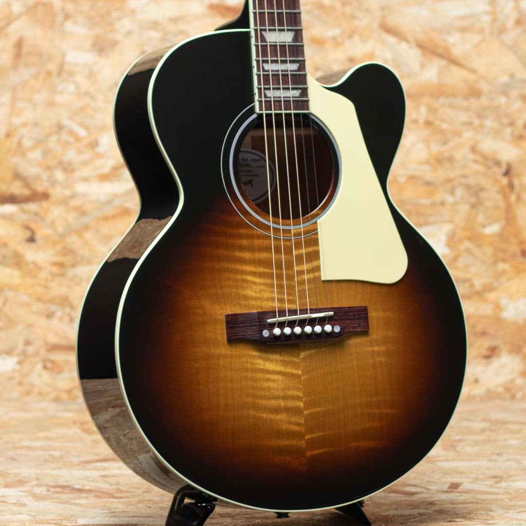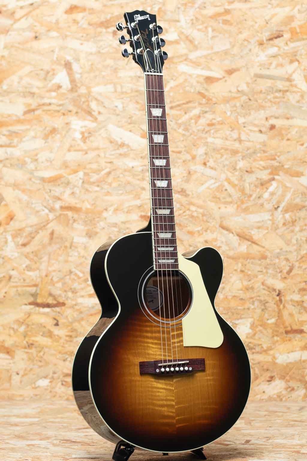 ギブソン”Les Paul”といえば世界中のミュージシャンに愛されてきたギブソンエレクトリックギターの名作ですが、1969年から1973年にはジャンボ・カッタウェイ・モデルとして、2000年から2003年にはソリッドボディ・スタイルとして、これまでにいくつかアコースティック・バージョンが製作されてきました。本器はLes Paulの新たなアコースティック・バージョン”Les Paul Parlor Acoustic”。”SJ-200”をスケールダウンしたようなボディシェイプのコンパクトなパーラーサイズボディを採用。AAAグレードフレイムメイプルトップ、マホガニーサイド&バック、ローズウッド指板&ブリッジ、トラペゾイドインレイ、シングルプライクリームピックガード、グローバーロトマチックペグ、スキャロップドXブレーシング、”Les Paul Model”デカール、ヴィンテージサンバーストカラー。エレクトリックギターの”Les Paul Standard”を彷彿とさせる形状のクリーム仕上げのピックガード、マザー・オブ・パールのGibsonロゴに加えてヘッドにあしらわれた金色の”Les Paul Model”デカール等、レスポールに不可欠な要素が散りばめられています。ピックアップにはL.R.baggs社のElement VTCを採用。メイプルならではの力強いアタック感とクリアなサウンド。コンパクトなサイズ感で取り回しもよく、構えやすさや演奏性の高いギターです。オリジナルハードケース付属。