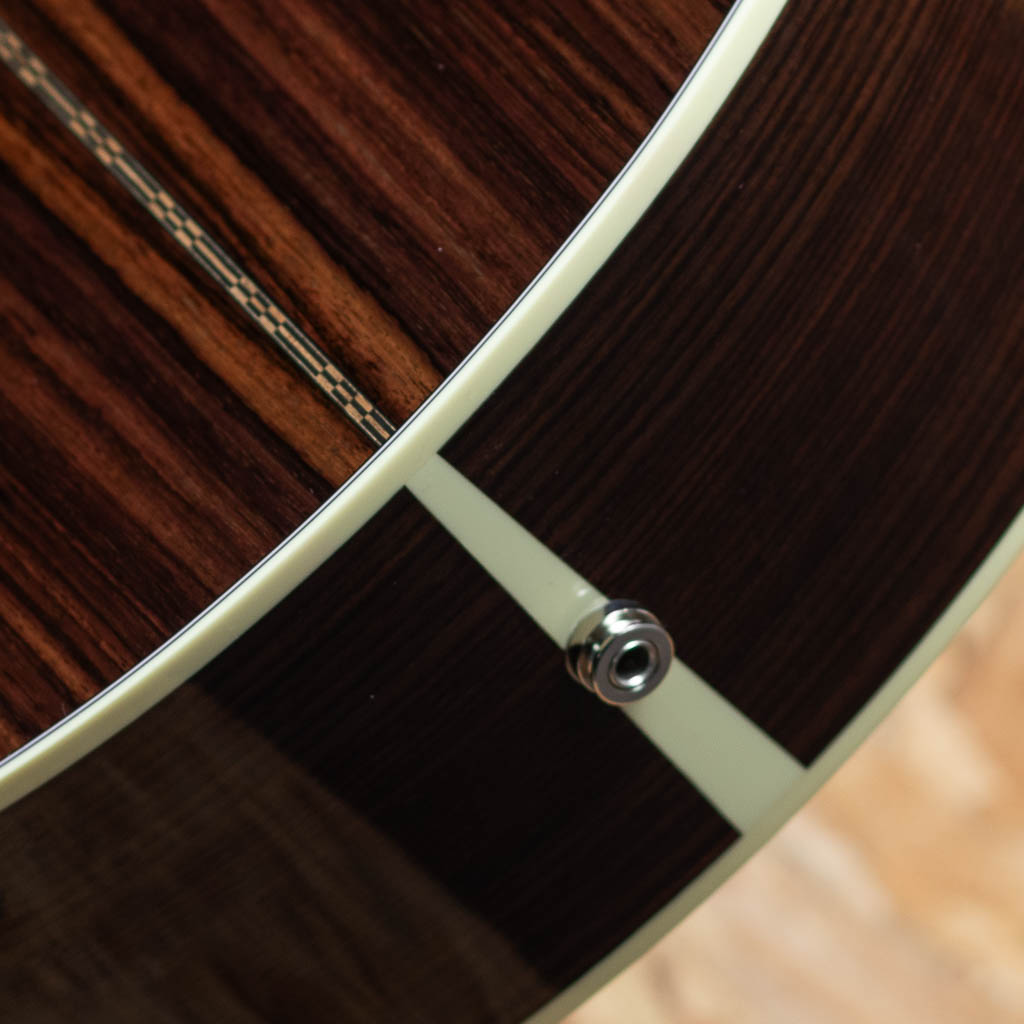 Fishman Matrixピックアップシステムをインストールし、サウンドホールに取り付けられたコントロールでVOLUME・TONE調整が可能。
