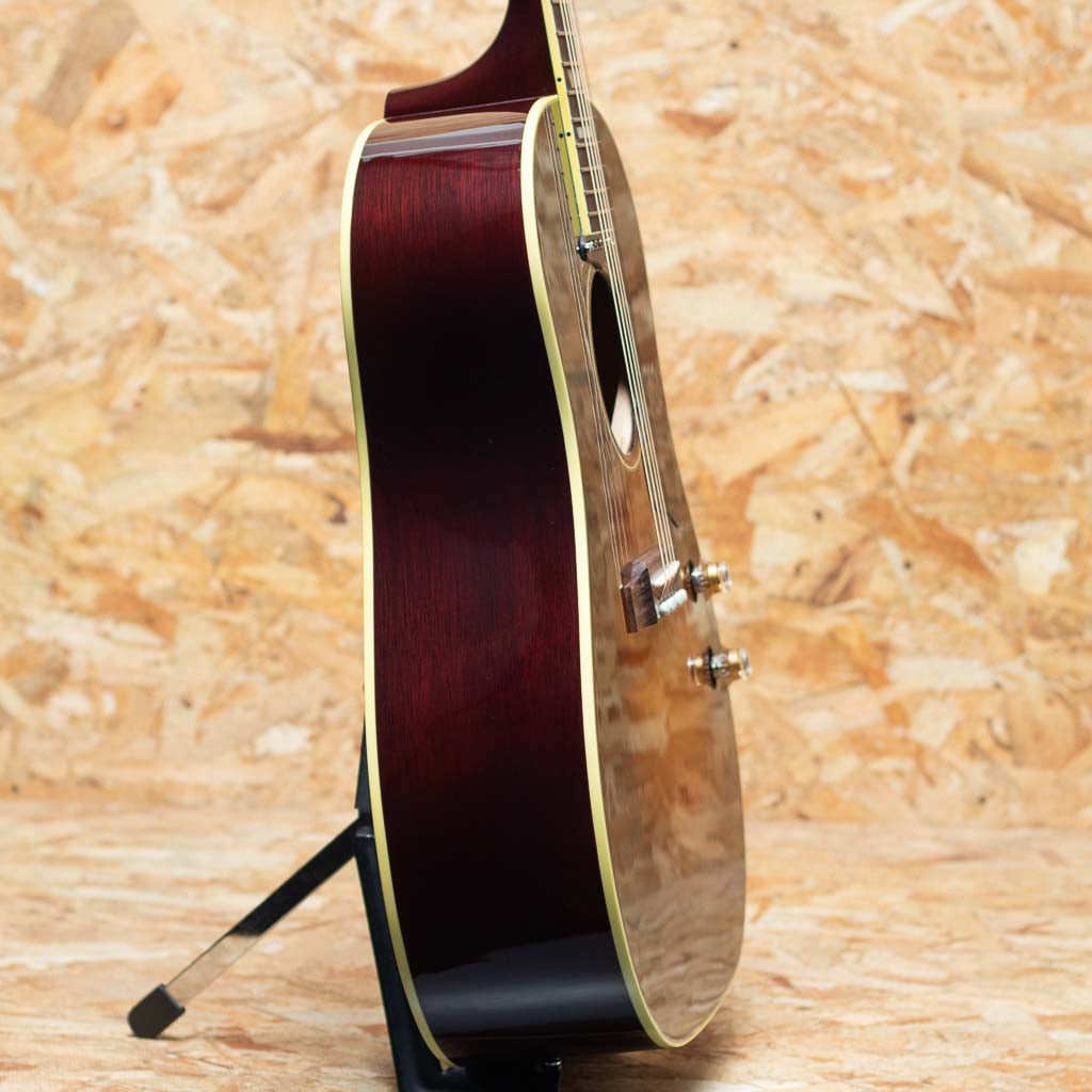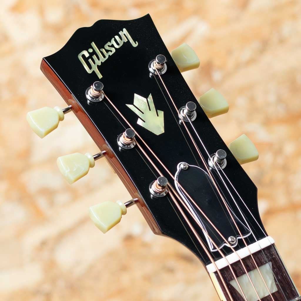 ジョン・レノンとジョージ・ハリスンがお揃いで入手したギター、ビートルズギアとしてあまりにも有名な機種である"J-160E"。1951年にアンサンブルの中でも音量で負けない様にと発表された世界で始めてピックアップが搭載されたフラットトップ"CF-100"。その基本コンセプトを受け継いだ"J-160E"は1954年に発表されました。本器は久しぶりにアコースティック・オリジナル・コレクションシリーズとしてラインナップに登場した"J-160E Original"。ヴィンテージJ-160Eをベースに、アコースティックでもエレクトリックでもどちらの環境にも最適となるように、オール単板、Xブレイシングを採用。生鳴りも楽しめる仕様となっています。スプルーストップ、マホガニーサイド&バック、マホガニーネック、ローズウッド指板&ブリッジ、パーロイド・トラペゾイド指板インレイ、15フレットボディジョイント。ピックアップにはP-90 DC(デュアルコイル)ピックアップを搭載。P-90 DCはクラシックなP-90トーンを損なわず、ハムを抑えてノイズを排したクリアなエレクトリックサウンドを実現。出力時には特有のファットで甘い響きが魅力的です。伝統と現代的な要素を取り入れ久しぶりの登場です。