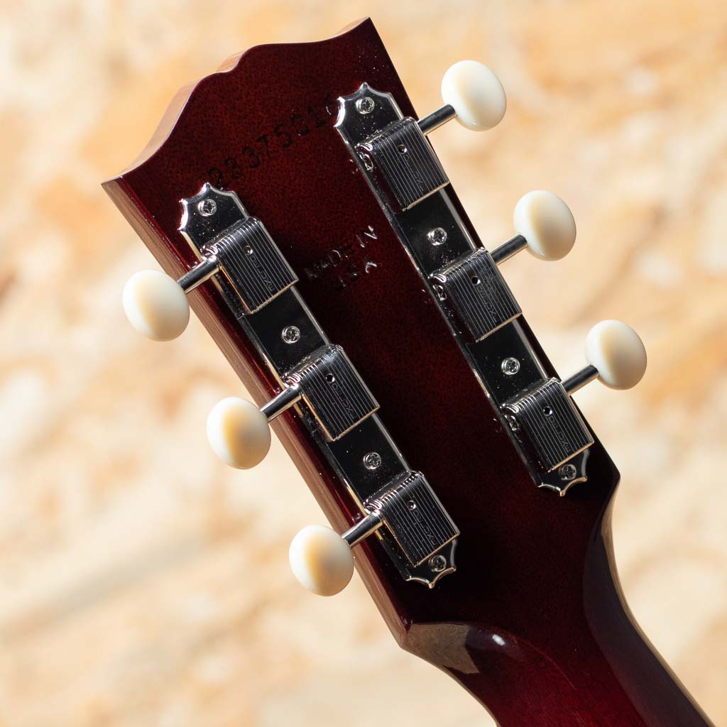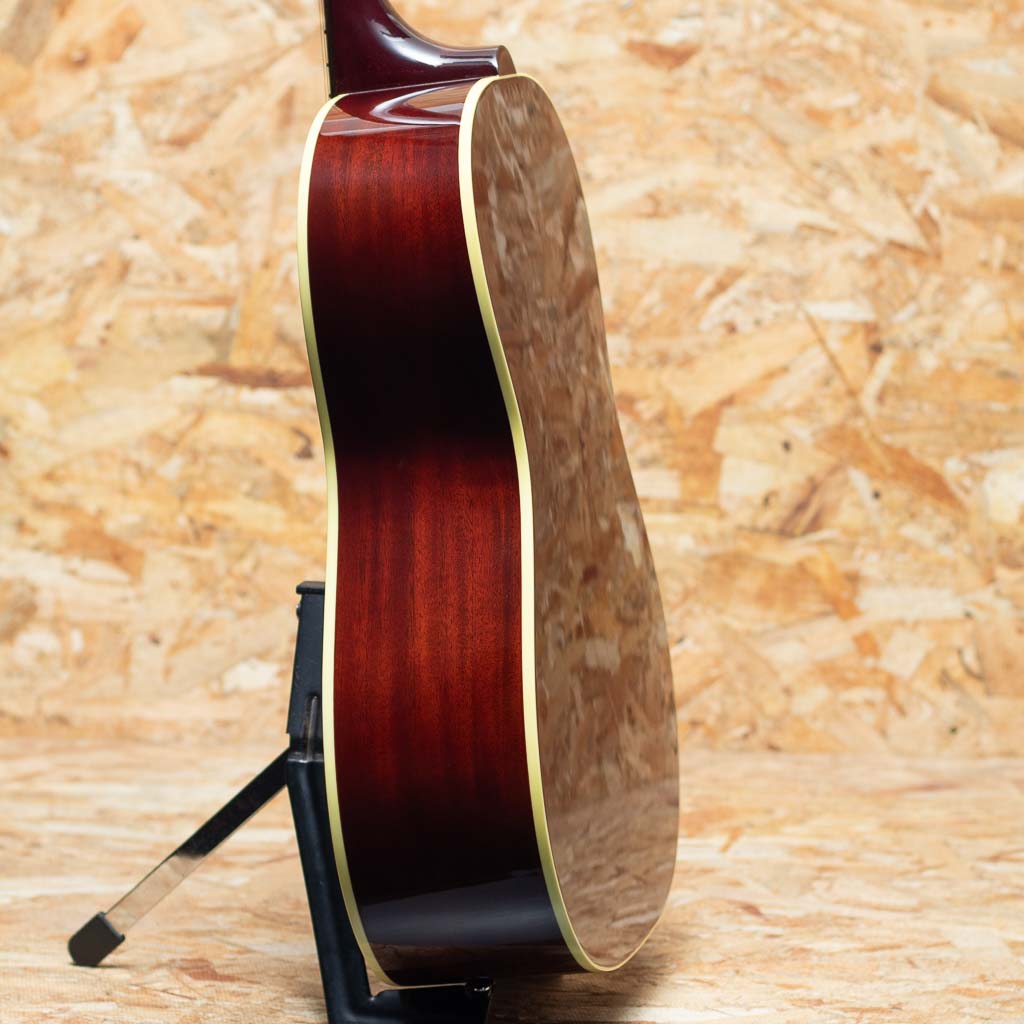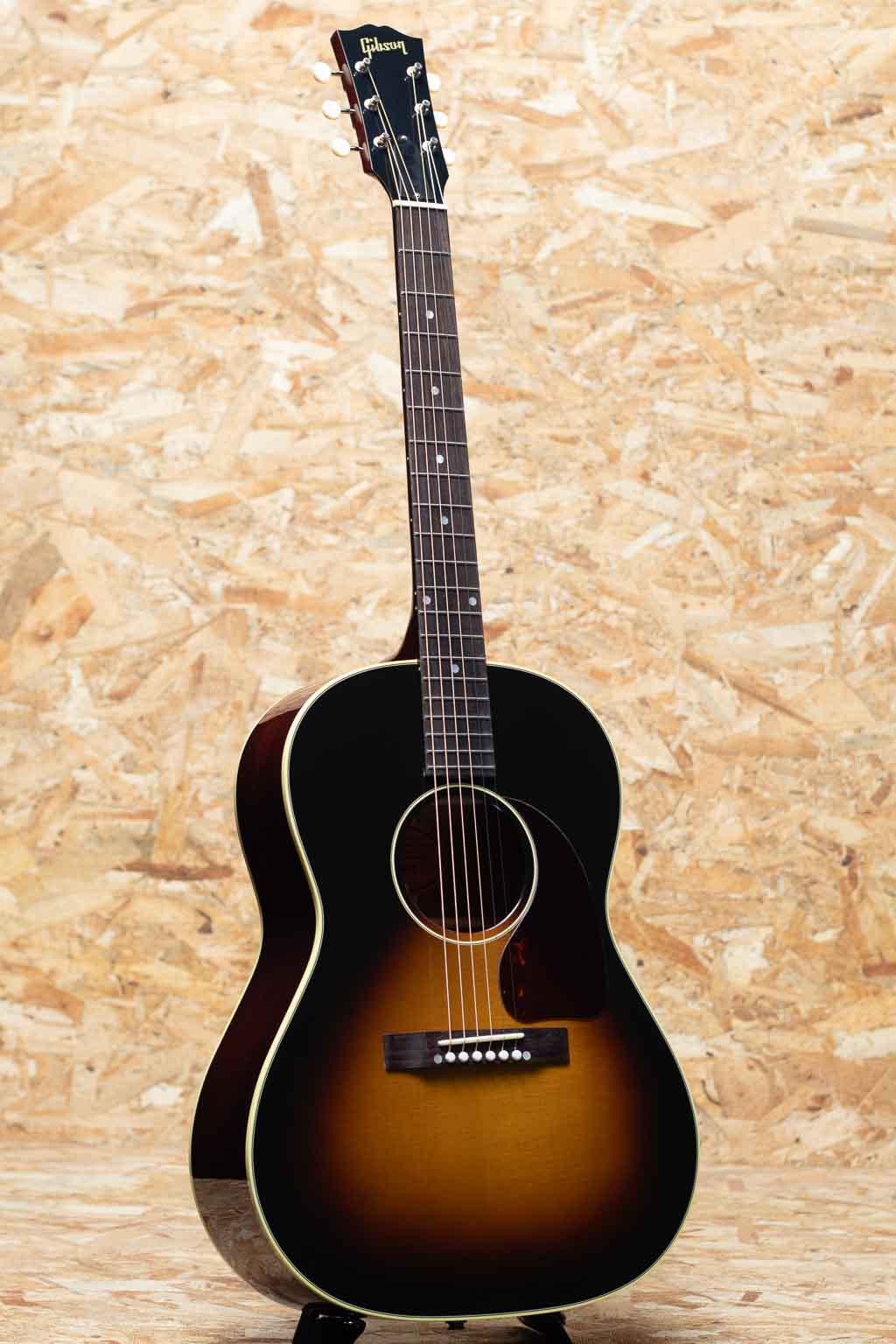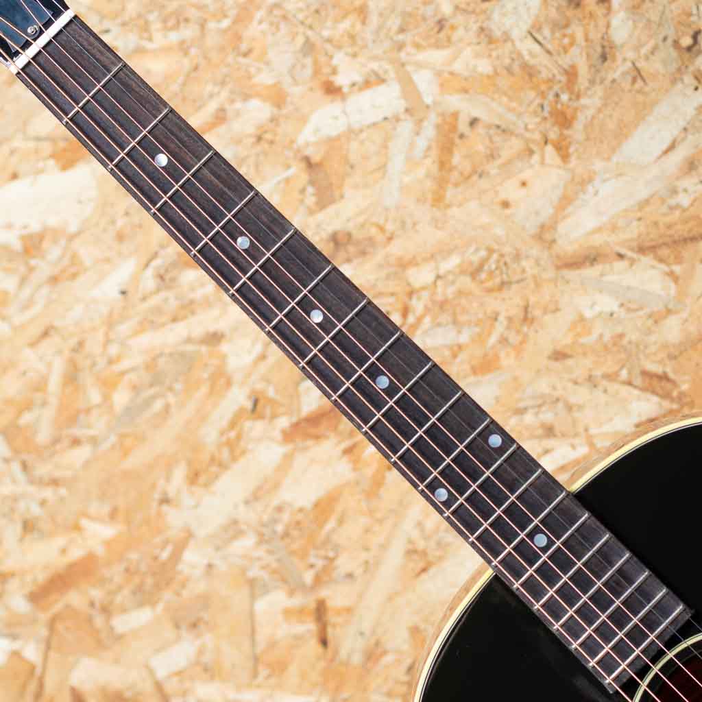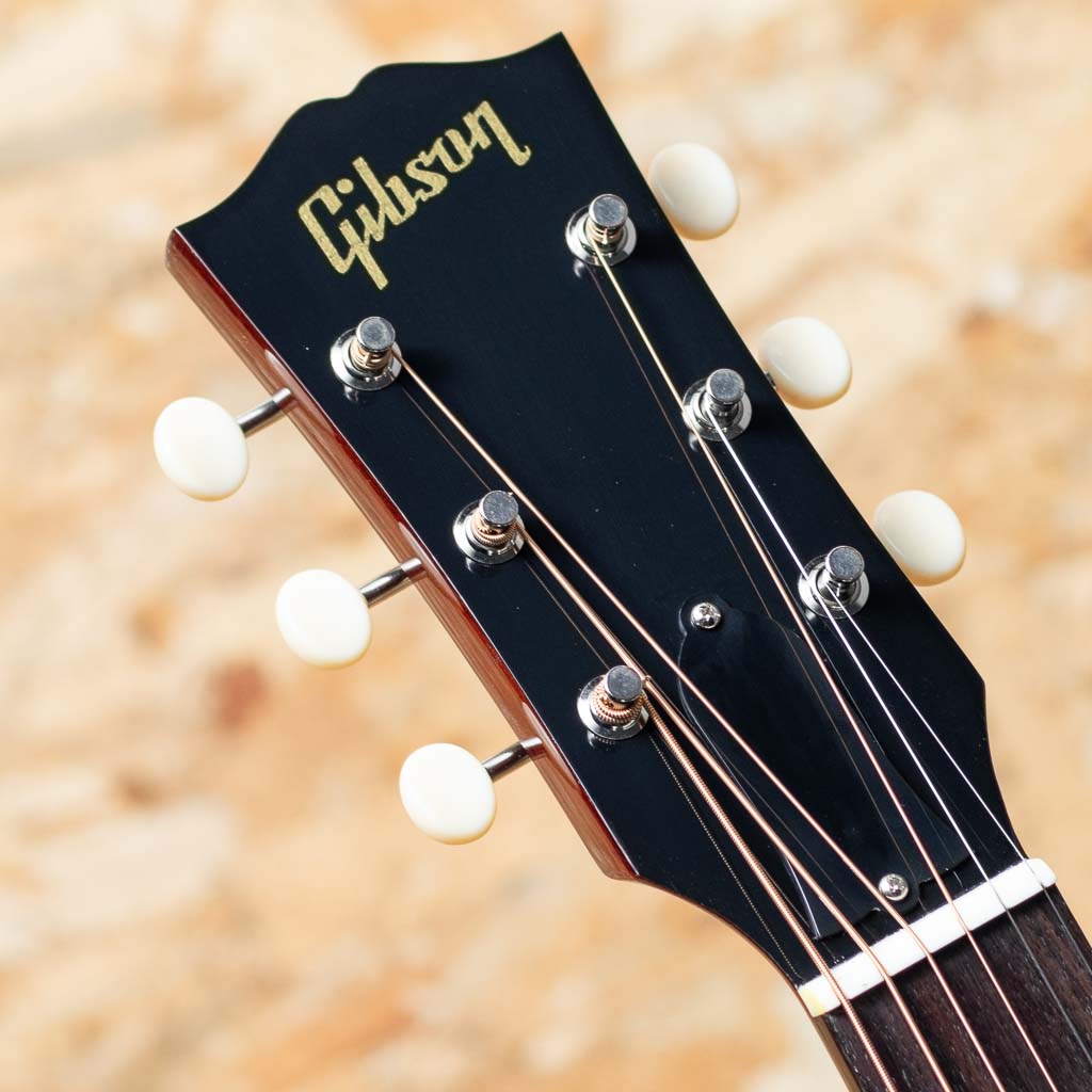 1942年よりJ-45と共に産声をあげ、J-45を14 1/8インチまでダウンサイジングした定番のモデル。ギブソンを代表する機種のひとつといえます。本機は1950年代よりインスパイアーされた50s LG-2 Original。シトカスプルーストップ、マホガニーサイド&バック、ローズウッド指板&レクタングルブリッジ、シングルリングロゼッタ、スモールべっこう柄ピックガード、三連ホワイトプラスティックノブのクルーソンタイプペグ、スロットインサドル、スキャロップドXブレイシング、ビンテージサンバーストカラー。L.R. Baggs製Element VTC ピックアップを搭載し、ステージなどのライブシーンでも即戦力としてご活用いただけます。明瞭で躍動感あふれるサウンドは幅広いジャンルや演奏スタイルに柔軟に対応。さらに、小ぶりで扱いやすいボディ設計により、取り回しも良く、小柄な方にもおすすめの一本です。オリジナルハードケース付属。