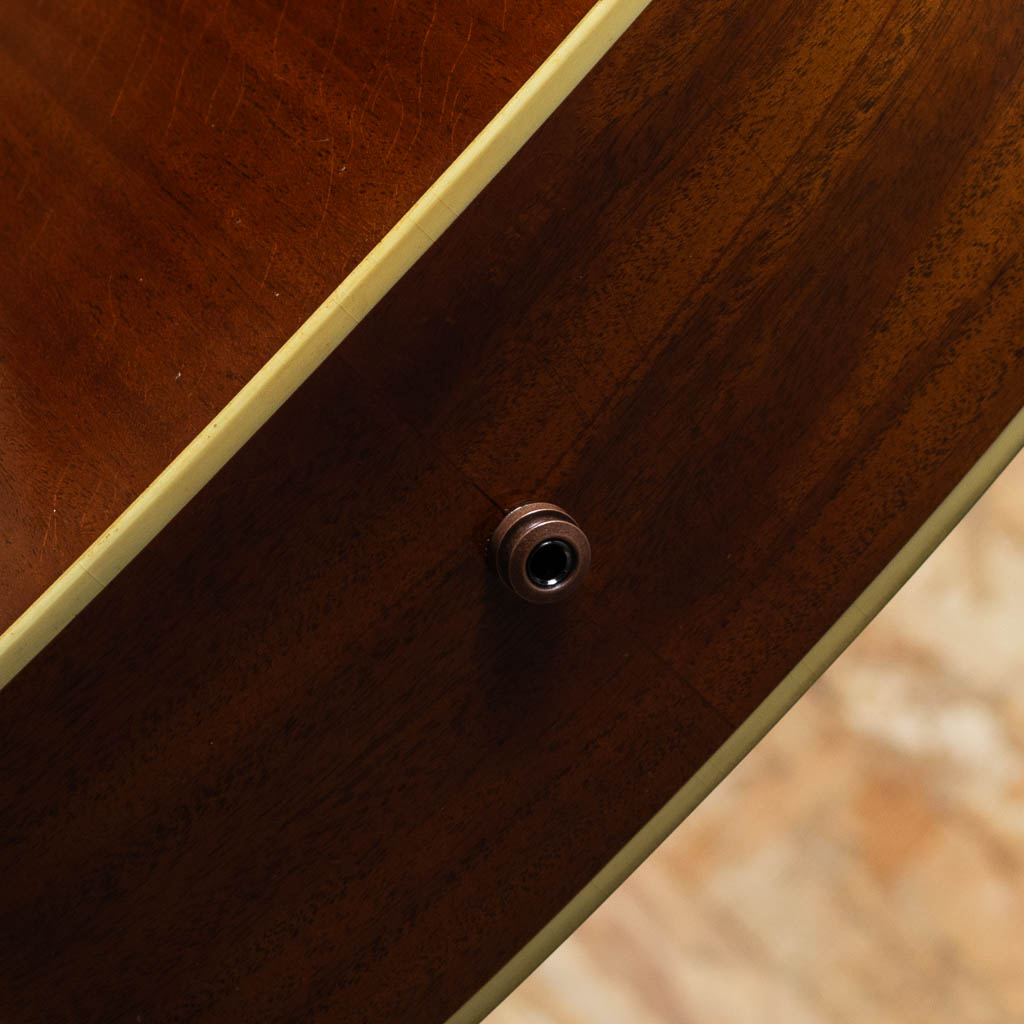 2006年にシングル「シンクロ」でデビューし、2026年にデビュー20周年となる秦基博氏。2014年のヒット曲「ひまわりの約束」で “ビルボードジャパン・ホット100” において150週にわたりチャート入りという記録を樹立しました。この度、秦基博氏はギブソン・カスタムと連携し、新たなシグネチャー・モデルとなる"Hata Motohiro J-45"がリリース。デビュー時より長年メイン機として使用されている秦氏のアイコンともいえる1966年製J-45をベースにマーフィー・ラボの技術で再現。数年前から綿密に製品化が行われ、今日、秦基博氏がこだわり抜いたメイン機と遜色ないルックス、サウンド、弾き心地を実現。サーマリーエイジド加工が施されたシトカスプルースのトップと、ジェニュインマホガニーのバック&サイドを採用。マホガニーネックは特徴的な1960年代後期仕様のカスタムカーブドネック形状と1.575インチ(約40mm)のナット幅を採用。ヘッド角は17度仕様。ローズウッド指板には20本のラージサイズのレジェンド・フレットが打たれ、マザーオブパールのドットインレイが施されています。ナットはボーン製、チューナーは信頼性の高いゴトー製ストラップチューナー(クリームボタン)を採用。ベリーアップ・ブリッジはローズウッド製、ボーン・サドルとクリーム色のブリッジピンを備えています。搭載ピックアップは本人所有機と同様の"L.R.Baggs Anthem"。クッキリとした音像を拾えるピエゾ、そこにボディの空気感を拾えるマイクをブレンド出力できる仕様。任意でマイクのミックス具合を調整でき、ソリッドなピエゾサウンドから空気感のある自然なサウンドまでその場に応じて可変出来る優秀なシステムです。通常マーフィラボモデルでは非搭載の為、特別な仕様の1つ。ヘリテージチェリーサンバースト仕上げは、マーフィー・ラボによるウルトラライト・エイジングが施されており、秦 基博氏が長年愛用してきたメインギターの感触と雰囲気を醸し出しています。アーティスト認定書が付属となり、ハードシェルケース内に収納。この特別な限定モデルは、モンタナ州ボーズマンにあるギブソン・カスタムショップとマーフィー・ラボの熟練のルシアーによって、僅か100本のみのハンドメイド限定生産品です。
