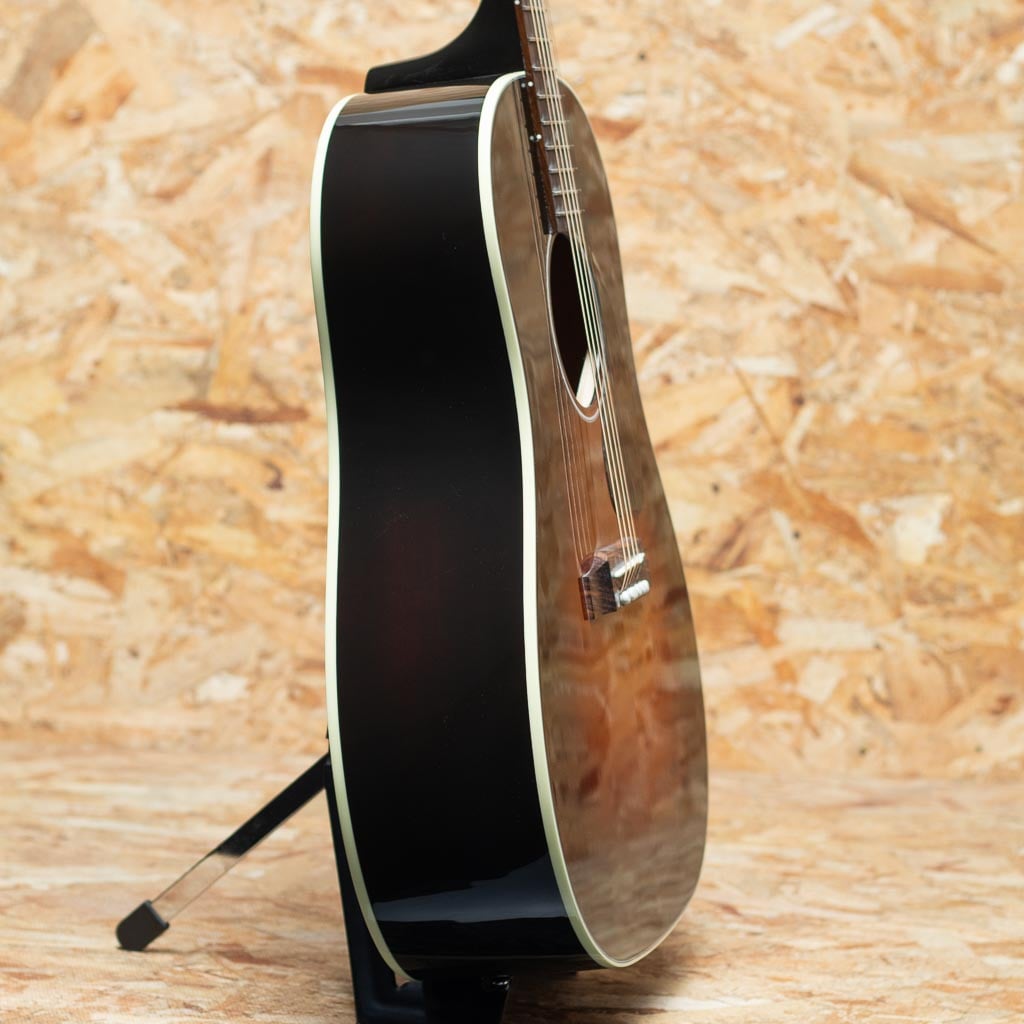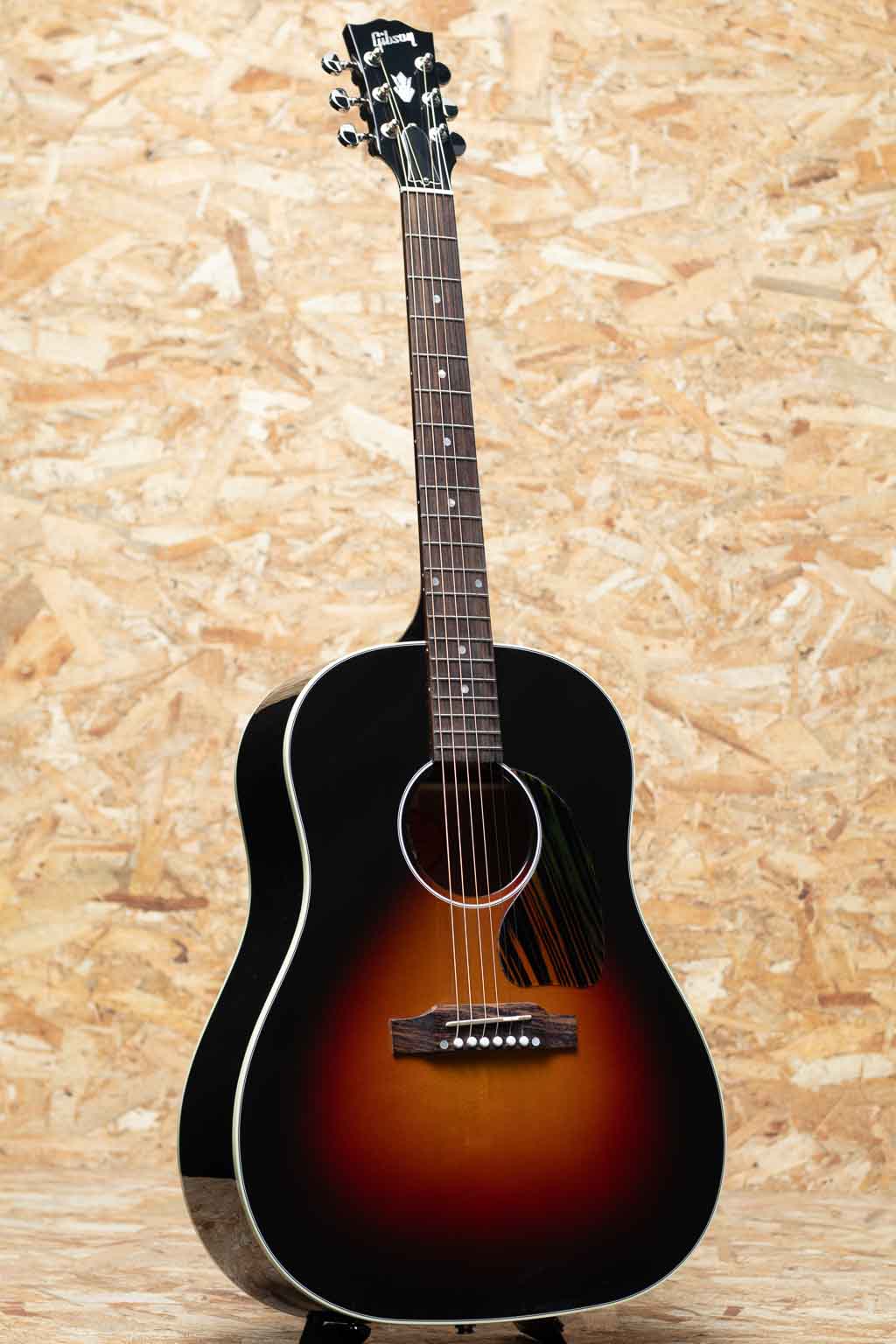 "The Workhorse(頼りになる馬車馬)" の愛称で信頼されるベストセラー・モデル。ウォームな低域とエッジの効いた中高域が織りなす優れた表現力でプレイヤーを支え、どんなときにも信頼できるパートナーとして1942年の登場以来、ギブソン・ラウンド・ショルダー・ラインナップの中心的役割を担い続ける”J-45”。基本的なスタイルは継承されつつもマイナーチェンジを繰り返し、年々進化し続けております。本器はロングスケール仕様の限定モデル"J-45 Long Scale"。シトカスプルーストップ、マホガニーサイド&バック、マホガニーネック、ローズウッド指板&ブリッジ、グローバーペグ、ファイアストライプピックガード、スキャロップド・Xブレイシング、L.R.Baggs Element VTCピックアップ標準装備。スタンダードと異なりヘッドにはクラウンインレイが採用され、ルックスも少し豪華になっています。ブライトで気っ風の良いレスポンス、ドライでどこか泥臭さを感じさせる倍音、外観と違わぬ荒削りなサウンド。ロングスケールにより、よりハリ・キレのある気持ちの良いサウンドです。発表以来、数々の名演を支えてきた"J-45"、移りゆく時代の中でも変わらぬ憧れが今なお此処にあります。ちょっとした仕様の差ですが、また違ったサウンドが楽しめる限定品です。