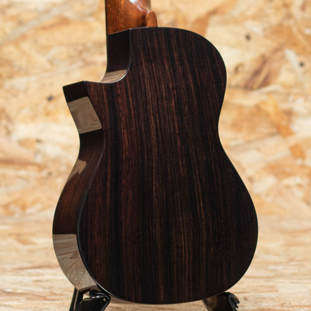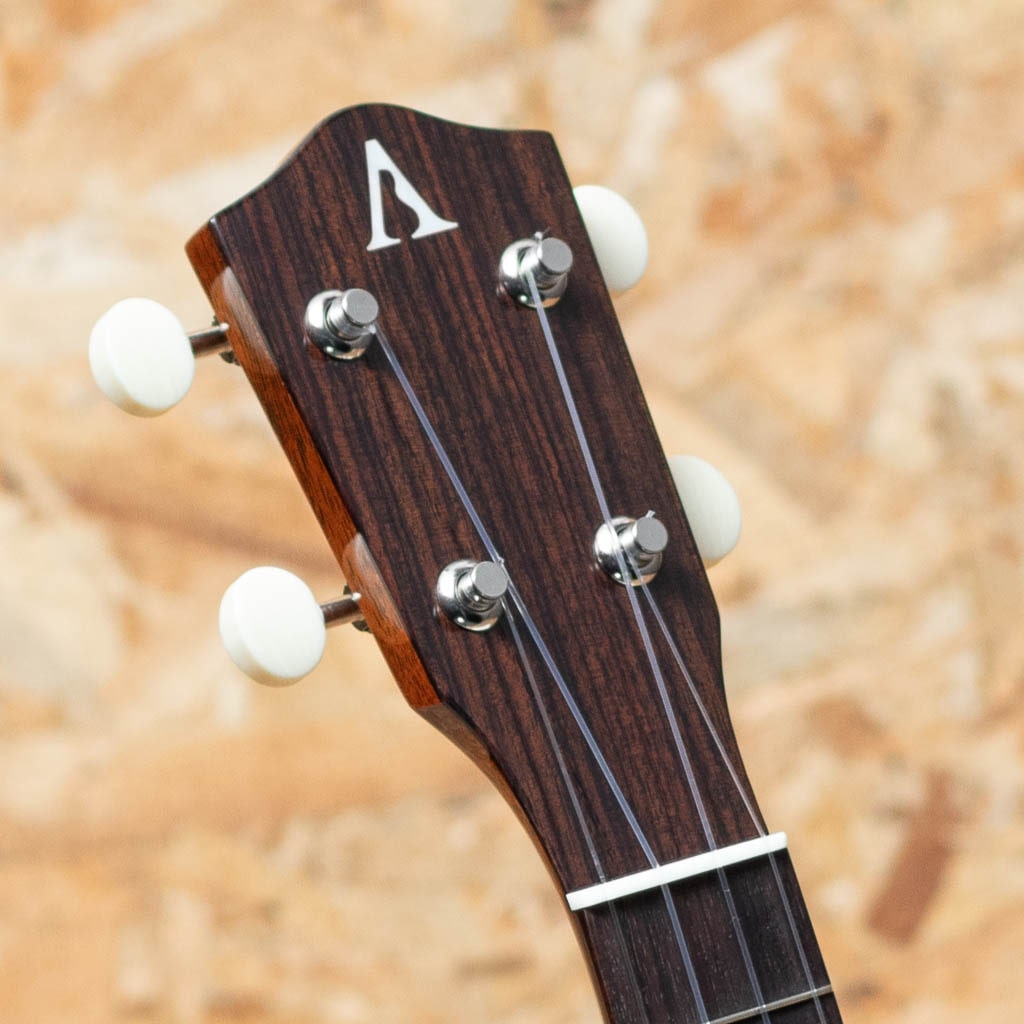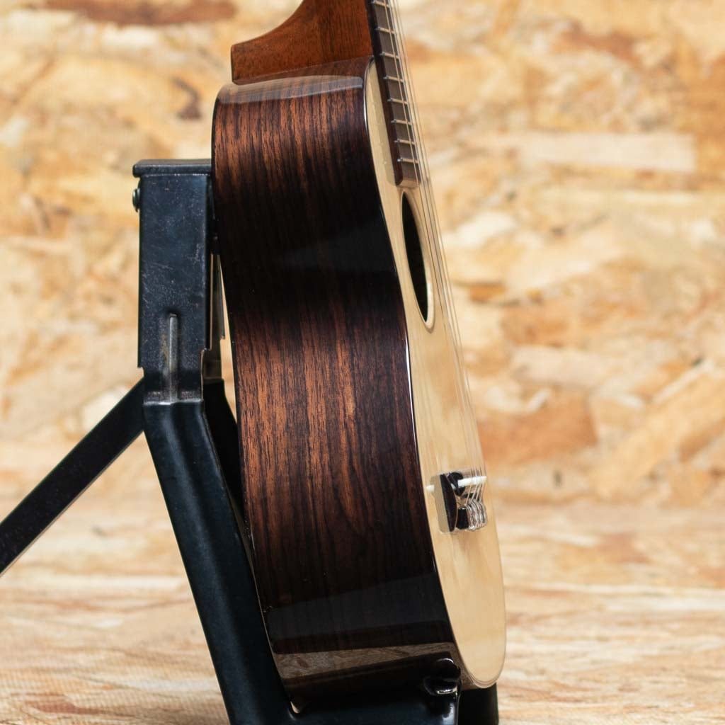 福岡県久留米に工房を構える『ASTURIAS』。1962年に創立され、クラシックギター製作を開始。50年におよぶその技術の結晶は現在15名のクラフトマンによって手掛けられており、現在はウクレレ、アコースティックギター、クラシックギターを制作する日本を代表する弦楽器メーカーの一つとなっています。本器はアストリアスの人気シリーズ”ソロウクレレ”シリーズのスプルーストップ、ローズウッドサイド&バックモデル。ソプラノロングネック、フローレンタインカッタウェイ仕様による演奏性の高さ等、ソロウクレレに最適な仕様です。アストリアスらしい明瞭で抜けの良いトーンを持ち、存在感のある音色が特徴。爽快なサウンドはジャカソロなどにも相性抜群です。テンション感や、ピッチ感も良く、まさにソロウクレレに最適なモデルです。