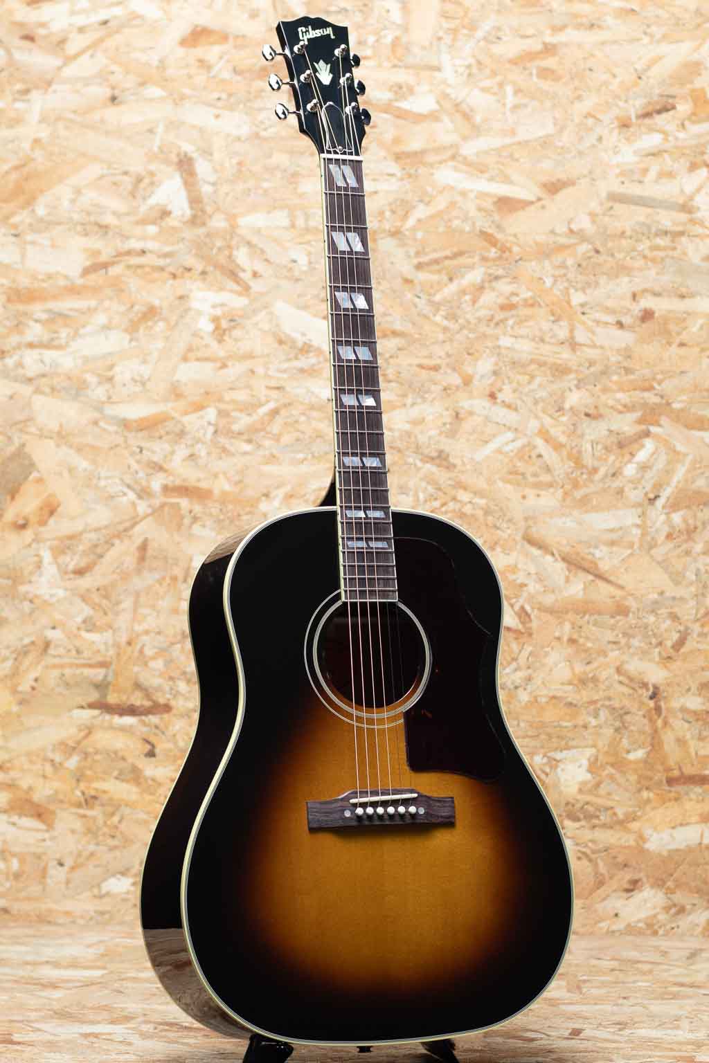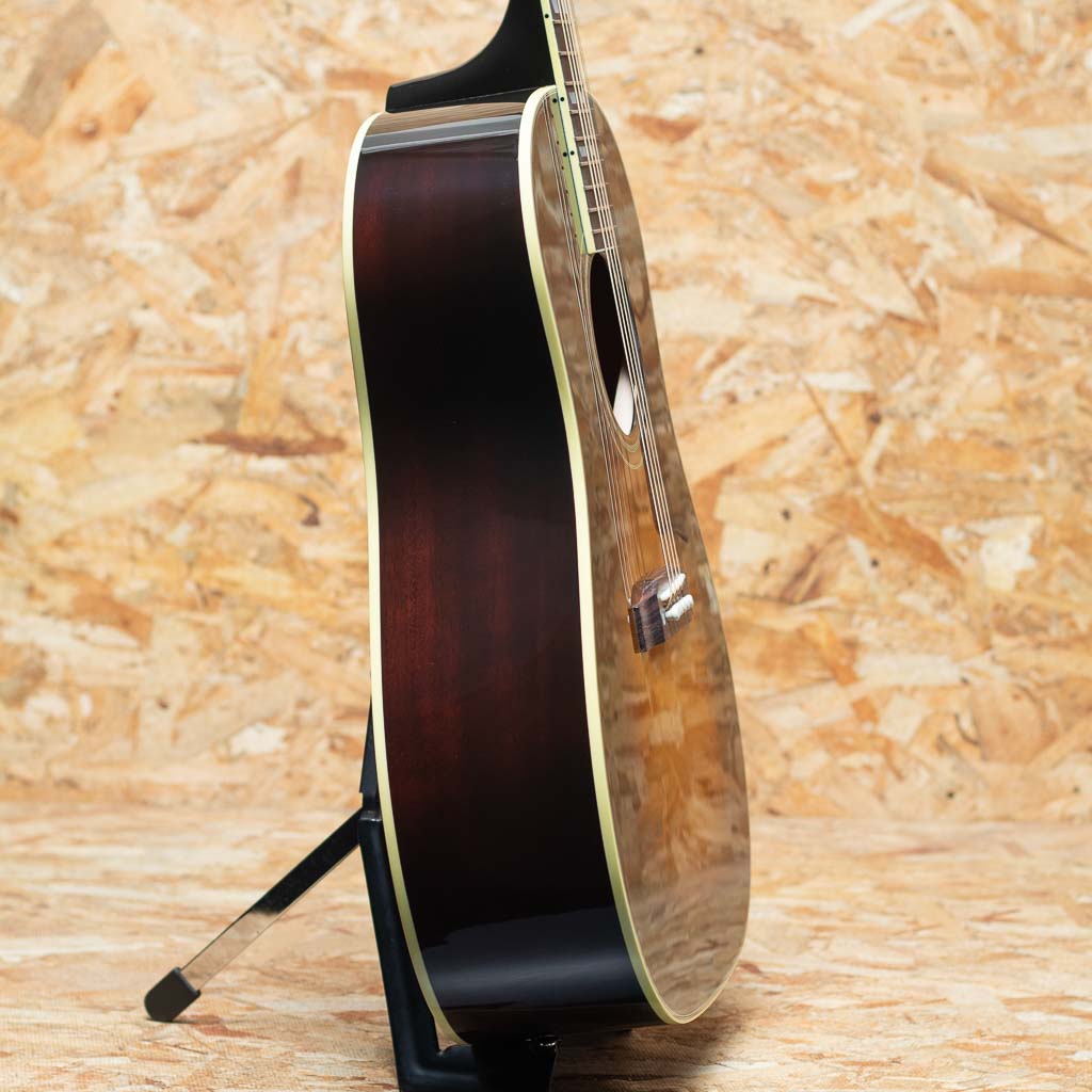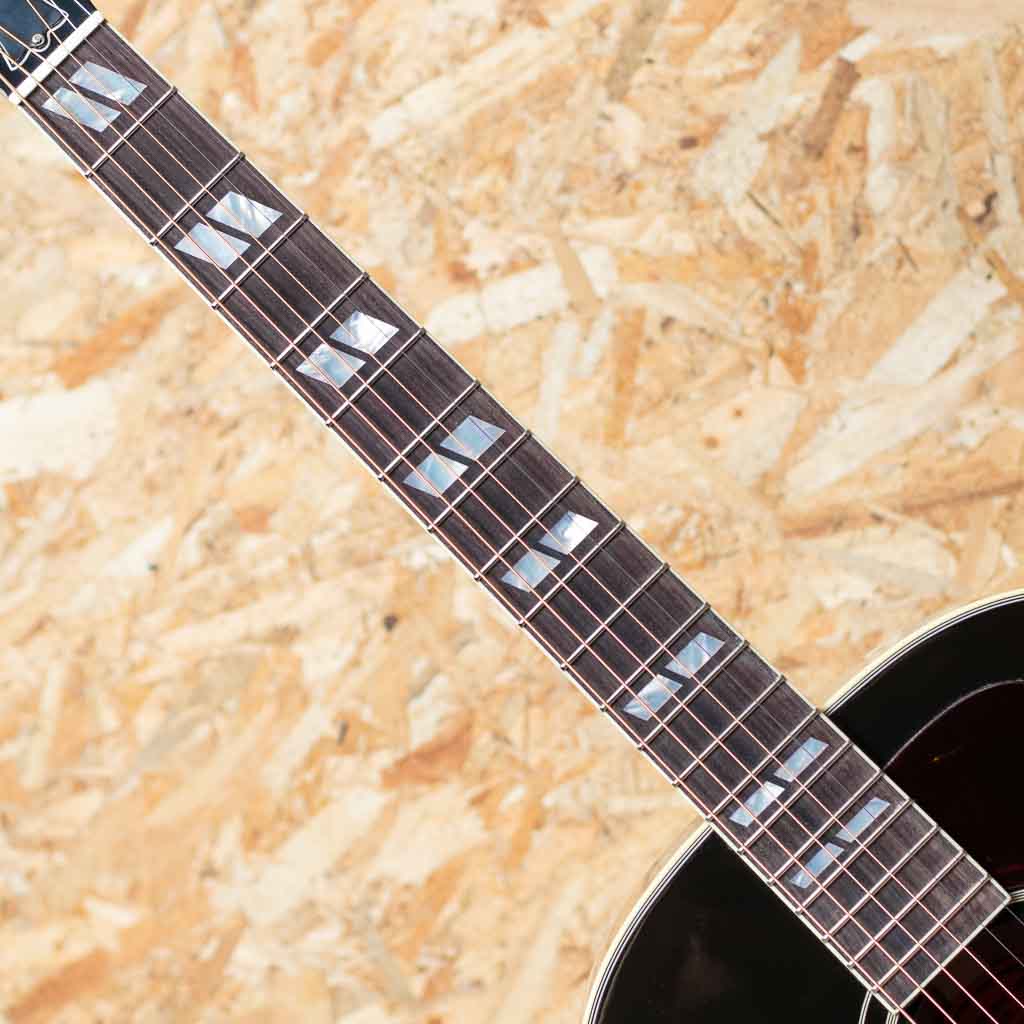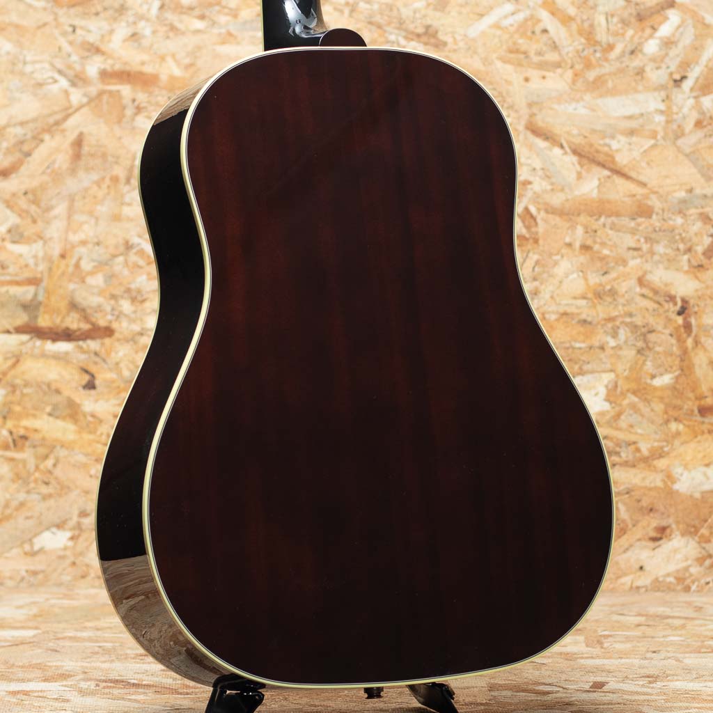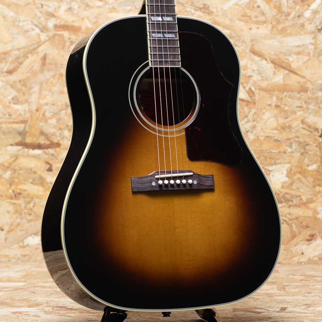 ギブソンの代表機種J-45の上位機種に当たるサザンジャンボ。本器はオリジナルアコースティックコレクションシリーズにラインアップされているモデル。カントリーのリズム・ギターやアコースティック・ブルーズのリード・プレイを奏でるのに恰好のモデルとして定評があり、アーティストの使用などでも非常人気の高いモデルです。ヘッドのクラウンインレイ、指板のダブルパラレログラムインレイ、ラージピックガード、オープンバックペグなど、J-45のスタンダードモデルと比較しても貫禄と個性のある風格。厚みのある中低域に加え、キレ、エッジのある高域が気持ちよく響きます。弾き語りなどでも相性はばっちりでしょう。L.R.Baggs社製Element VTCピックアップ内蔵でライン出力にも対応可能。レギュラー品として展開していない年もあり、年代により細かな仕様も異なります。パーツ類にもこだわりを感じる味わい深い1本となっております。オリジナルハードケース付属。
