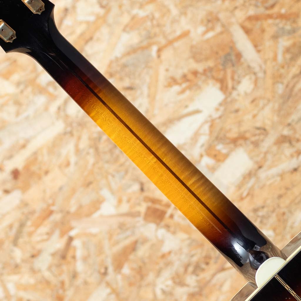 1937年の発表以来、ギブソン・アコースティック・ライン最大のボディサイズを持つSJ-200。アコースティックギターの究極の到達点として今なお不動の人気を誇り頂点に君臨し続けるキング・オブ・フラット・トップ・ギターです。本器はマーフィー・ラボの熟練ルシアー達によるライトエイジド仕上げが施されたキング・オブ・フラット・トップ”1957 SJ-200 Vintage Sunburst Light Aged”。サーマリーエイジドスプルーストップ、ハンドセレクテッドフレイムメイプルサイド&バック、2Pメイプルネック、スキャロップドエックスブレーシング、ローズウッド指板、ローズウッドオープンムスタッシュブリッジ、オリジナルキーストーンゴールドペグ、ライトエイジドフィニッシュ。サイド&バックには現在枯渇により安定供給が難しいなか、ハンドセレクトによる厳選されたメイプル材を採用。サーマリーエイジド処理がなされたモデルはヴィンテージギブソン特有の乾いたサウンドと抜群のレスポンスを感じさせますが、スーパージャンボサイズからなる本モデルは圧巻の音圧を誇ります。深みのある低音に加え、メイプル材の歯切れの良いサウンドも健在。新品とは思えない仕上がりです。ぜひご検討くださいませ。