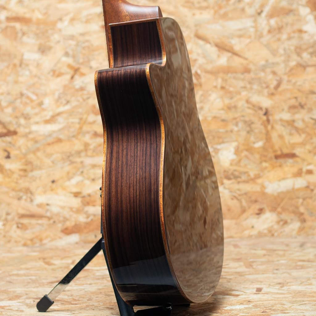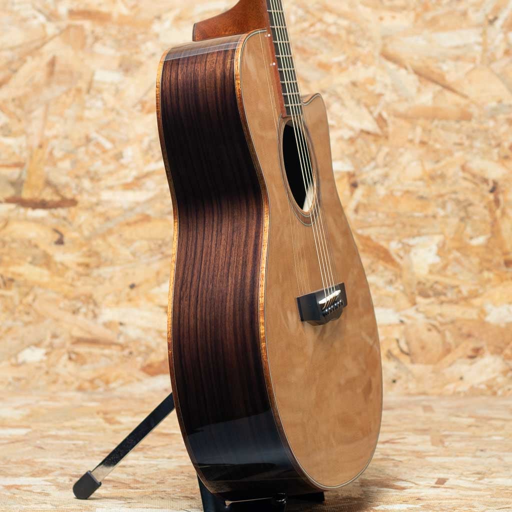 フィンガーピッカー向けに開発されたモーリスSシリーズを基に新たなSサウンドを探求し進化を遂げたSEシリーズ。半手工ラインにて製造される国産モーリスギターは各セクション毎に熟練したスタッフによって製造されています。本器はシダートップ、インディアンローズウッドサイド&バックの”SE-102”。マホガニーネック、エボニー指板、リッチライトブリッジ、ゴトーペグ。ボディシェイプはそのままでトップのXXブレイシングをフォワードシフテッドXに、バックのXブレイシングをラダーブレイシングに変更。バック形状はラウンドバック・スタイルからフラットバック・スタイルに変更しており豊かな鳴りとバランスの取れたサウンドを実現しています。ボリュート加工や新しいネックシェイプ、ハイポジションでの演奏性をさらに高めるためにネックヒールのエッジを丸くしたりとサウンド面でだけでなく演奏面等での拘りも感じられます。新たな進化を遂げたSEシリーズ。ぜひお試しください。オリジナルハードケース付属