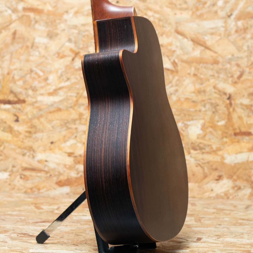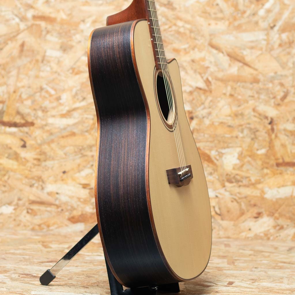 半手エラインにて製造される国産モーリスギターは大人数で製造される面影は現在はなく、各セクション毎に熟練したスタッフによって製造されています。当器はカントリー、ブルースを中心に国内外で活躍するソロギタリストの打田十紀夫氏のシグネチャーモデル。マスタールシアー・森中巧の制作による 「SC-145U」のサウンドを、より手軽に楽しんでいただけるギターとなっています。イングルマンスプルーストップ、インディアンローズウッドサイド&バック、 マホガニーネック、フォワードシフテッドXブレイシング、ローズウッド指板&ブリッジ、ナット幅44mmで薄めのネックは演奏性よく、フィンガースタイルでの使用にぴったりです。極薄のシルクフラット仕上げで軽量な仕上がりは鳴りのよさにも貢献しています。レスポンス感に優れフィンガースタイルの繊細なタッチに素直に追従する鳴らしやすさは絶妙です。オリジナルハードケース付属