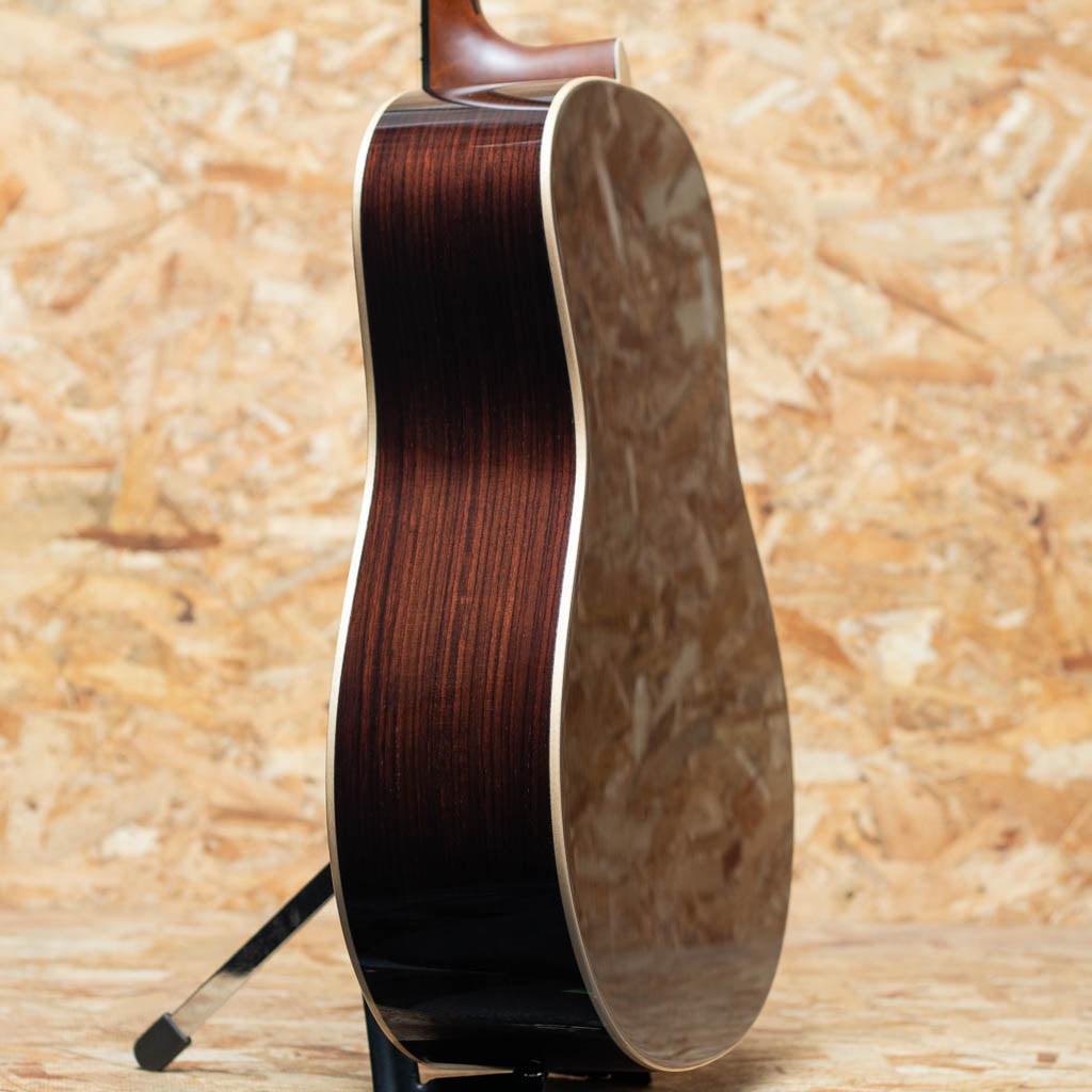 ヤマハを代表するギターとして、数多くの一流アーティストをはじめ、多くのギターファンに愛されてきたLシリーズ。“FG”シリーズの上位機種として1974年にL-31を発表して以来、時代のミュージックシーンを彩り、数多くのアーティ ストやギターファンに愛され、日本の音楽シーンを支えて参りました。"L=Luxury(豪華)"を冠にした本シリーズは、常にベストサウンドを追及してきたヤマハギターの歴史が生み出した結晶とも言えるシリーズです。本器はオリジナルジャンボボディモデルの"LL26 ARE"。製造継続が困難となり、惜しまれつつも生産完了が決定したモデルです。ARE処理を施したイングルマンスプルーストップ材に、裏側板はインドローズ単板を使用。ゴールドパーツペグ"SD-700XG"、ウッドバインディングを採用し、落ち着きのあるヴィンテージテイストの仕上りとなっています。また、ネック形状や指板のエッジ処理、弦高、弦間ピッチなど、細部にわたり拘り抜いた演奏性の高い5 層構造ネック。ヘッド裏にローズウッドの化粧板があしらわれ、ヘッド部を強化するボリュート加工が施されています。開放的で成熟したサウンドと深いサスティン、抜群のレスポンスを備えたモデルです。当店へはこの個体が最後の入荷。この機会に、ぜひご検討くださいませ。