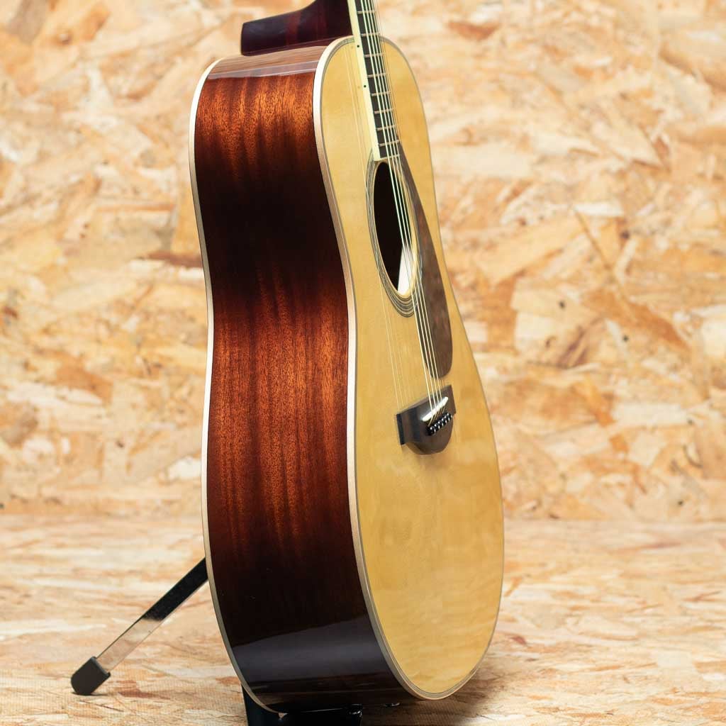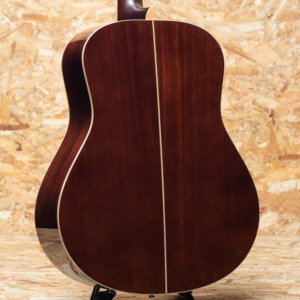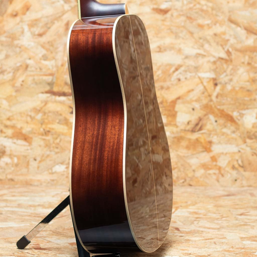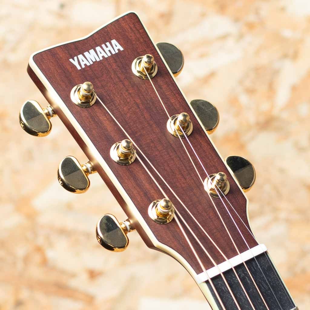 国内外問わず使用アーティストも多い、日本を代表するブランド”YAMAHA”。本器はLuxury(豪華な)を名前に冠する”L”シリーズの定番モデル”LL16 ARE”のサイド&バックにマホガニーを採用したモデル”LL16M ARE”。イングルマンスプルース単板(A.R.E)トップ、マホガニー単板サイド&バック、マホガニー&ローズウッド5プライネック、エボニー指板&ブリッジ、オリジナルペグ、パール指板ドット、オリジナルピックガード、アバロンロゼッタ、ノンスキャロップブレイシング、ナチュラルカラー、パッシブアンダーサドルピックアップ搭載。外観の豪華さに加えやや大きめのボディからは音の広がりや豊かな低音感を感じられます。ネックの厚みは薄めに成形されており演奏性良好。さらには演奏性を考慮しつつネックを5層構造にすることで安定度と強度が確保されております。イングルマンスプルース単板のトップ板はA.R.E処理(薬品類を一切使わず、温度、湿度、気圧を高精度に制御することにより、製材後長期間を経た木材の経年変化と同様の変化を短期間で生みだすことによって音の伝達と振動効率を上げ、中低音成分の伸びの促進と高音成分の立ち上がりの増大や減衰の高速化を実現したヤマハ独自の技術)が施されています。サイド&バックに使用されているマホガニー材のもつクリアで温かみのあるサウンドも合わさり、ピック弾きや指弾きのスタイルを選ばず演奏が楽しめます。ピックアップには電池の不要な(パッシブ)アンダーサドルピックアップが搭載。電池の残量を気にすることなく演奏できるのもメリットの一つ。ボリュームやトーンなどのコントローラーは付いておらず、繋ぐ際には特に操作をする必要はありません。シールドを繋げば直感的にサウンドを出力できます。家弾きはもちろん、ライブや配信に宅録と幅広く活躍できるギター。初めての方はもちろん、2本目のギターをお探しの方にもオススメの1本です。オリジナルライトケース付属。