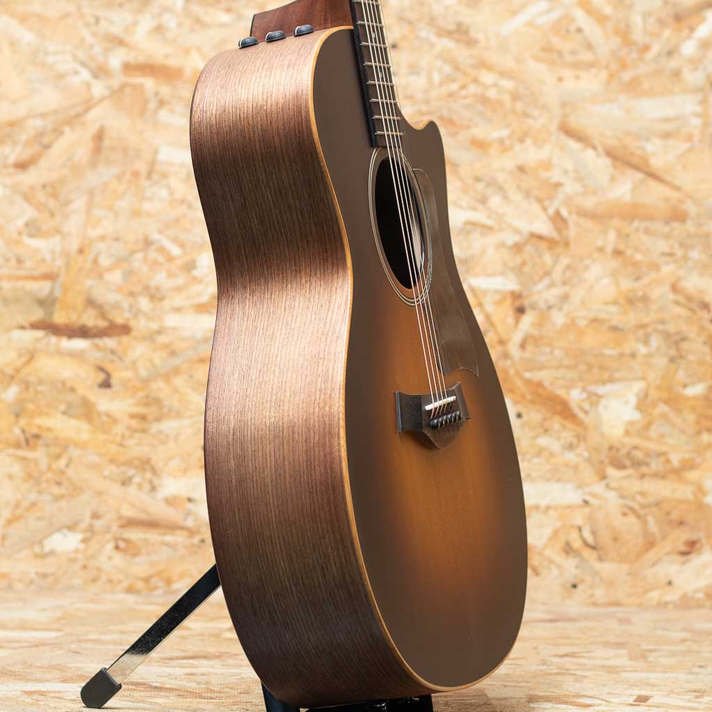 2000年代より急速に成長し画期的なギター構造を採用した事によって世界のトップアコースティックブランドに成長したテイラー社。国内をはじめ特に米国ではプロミュージシャン使用のシェアが高く、圧倒的な人気を誇るメーカです。中でもカリフォルニア州サンディエゴ郡のエルカホン工場にて製作されるAmerican Dream Seriesは「こういう困難な時こそ世の中には音楽が必要だ」という思いから生まれたシンプルで、より手ごろな価格のアメリカ製ギターとしてデザインされており、高い品質を誇り世界中のトッププロから圧倒的な支持を集めています。本器はテイラー・ギターズ創設50周年を記念したモデル”50th Anniversary AD14ce SB LTD。スプルーストップ、ウォルナットサイド&バック、マホガニーネック、ユーカリプタス指板&ブリッジ、グランドオーディトリアムサイズボディー。TOP材のシトカスプルースにはトリファイド処理がなされており、レンジの広いパワフルなパンチ力と音抜けの良さ、軽やかなレスポンスなど、本来経年にて得ることが出来ない旨味を最初からお楽しみいただけます。ES2 P.Uシステム搭載しアンプ接続時もナチュラルアコースティックサウンドを提供。ゴールドのアクリルドット入りブリッジピン、ボディー内部には50周年記念ラベルなど50周年を飾るにふさわしいゴージャスなルックスとなっています。オリジナルエアロケース付属。