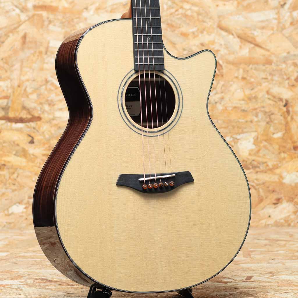 1981年、チェコスロバキア社会主義共和国時代、ブルーグラスプレイヤーであったFrantisek Furch(フランティセク フォルヒ)氏が自らとその仲間の為にギターを製作を開始。その後の試行錯誤により徐々に品質を高め、プロ・アマ問わず地元プレイヤーの高い評価を得るまでになり、93年時点で20名ほどのスタッフを抱えるギターメーカーに成長。今や多くの日本のプロギタリストにも愛用される程のブランドとなっております。本器はモデルそれぞれの個性を色で表現されたカラーシリーズの中のイエローシリーズ、Gc-SR。低音から高音までのバランスに優れたグランドオーディトリアムサイズボディにシトカスプルーストップ、インディアンローズウッドサイド&バックという組み合わせ。マホガニーネック、エボニーフィンガーボード&ブリッジ、ゴトー製510ペグ、ダブルリングロゼッタ、べっ甲柄バインディング、クリアピックガード、ベネチアンカッタウェイ、スキャロップド・エックスブレイシング。 シンプルながらも大変上品なルックス。どのポジションでも決してもたつかず安定したトーンで発音されるクールなサウンド。レスポンス、サスティーンの良さ、プレイアビリティの高さからソロギタリスト向けとも言われています。音量もあり、レンジの幅も充分。チェコ製ハイコストパフォーマンスブランド”フォルヒ”。まだ触れたことのない方は是非一度お試しください。オリジナルハードケース付属。