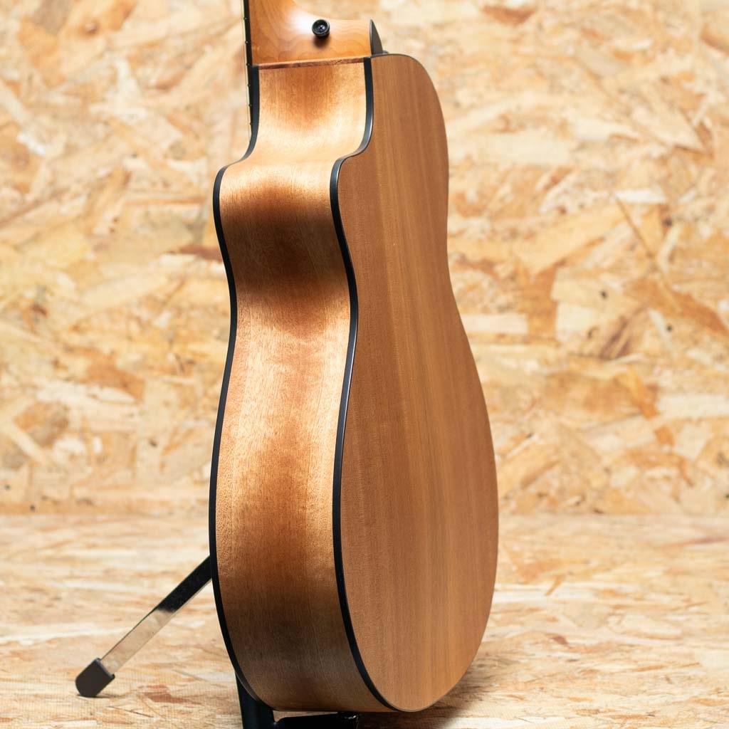 1974年にボブ・テイラーとカート・リスタグの2人によって創立されたテイラー・ギター。革新的なアイデアと高い技術力、ハイセンスなマーケティングで2000年代より急速に成長し、今や世界のトップアコースティックブランドとして、一般ユーザーからプロミュージシャンまで、幅広い層から確固たる支持を得ています。本器はトップにトリファイドスプルース単板、サイド&バックにレイヤードサペリを用いたエレアコモデル。やや小ぶりで取り回しの良いグランドコンサートサイズ。サペリ材を使用したこちらのモデルは暖かみのあるウッディなサウンドが耳に心地よく、コードストローク、フラットピッキング、フィンガーピッキングを問わずオールラウンドに使用できます。またカッタウェイ仕様の為、ハイポジションもスムーズに演奏可能。ES-2搭載でライン出力時にもリアルなアコースティックサウンドを奏でます。オリジナルギグケース付属