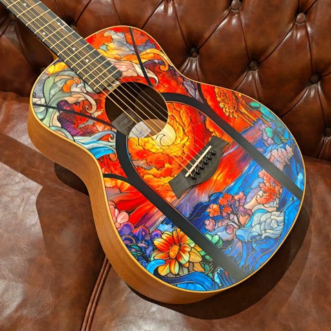 洗練されたデザインと他ブランドを凌ぐ演奏性、そして抜群に安定したクオリティで今やアコースティックギターの定番の1つとなっている"Taylor"。プレイアビリティに対する拘りとピックアップを含めた革新的な技術は、常に業界に影響を及ぼし続けています。本器はグラミー賞受賞の世界的DJ・音楽プロデューサー"Zedd"のアルバム「Telos」を記念して製作された"Zedd GS Mini Telos Special Edition"。Telosのアルバムアートをそのまま取り入れたカスタムトップデザインを採用した、インパクトのあるルックスとなっています。トリファイドシトカスプルーストップ、サペリサイド&バック、トロピカルマホガニーネック、エボニー指板&ブリッジ、パール指板インレイ。そのサイズ感から体格を選ばず抱えやすく、気軽に構えることが可能。持ち運ぶ際にも大きさを感じにくいため気軽に持ち出すことができます。生音はこのサイズながらしっかりとしたボリューム感。ピック弾きや指弾き問わず様々なスタイルやジャンルで心地よい演奏を楽しむことができます。クラシックな要素とエレクトロニックサウンドを融合させるZeddの情熱を反映したステンドグラススタイルの美しいデザインが映える1本です。
