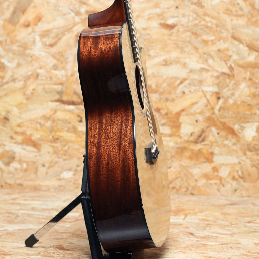 1974年にボブ・テイラーとカート・リスタグの2人によって創立されたテイラー・ギター。革新的なアイデアと高い技術力、ハイセンスなマーケティングで2000年代より急速に成長し、今や世界のトップアコースティックブランドに成長したテイラー社。国内をはじめ特に米国ではプロミュージシャン使用のシェアが高く、圧倒的な人気を誇るブランド。本器は新しく仕様変更が行われた"Next Generation"の最もスタンダードな人気機種"314ce"。グランドオーディトリアムサイズボディ、シトカスプルーストップ、サペリサイド&バック、トロピカルマホガニーネック、エボニー指板&ブリッジ。サペリ材の持つ軽やかでブライトなトーン、クセの無い爽やかなサウンドであらゆるジャンルの音楽、多様な演奏スタイルに対応可能なオールラウンドなモデルです。"Next Generation"では新たに、ブレーシングはV-Classブレーシングが進化した"スキャロップドV-Classブレーシング"に。従来のピッチ、バランスの良さはそのまま、よりパワフルで豊かな力強い響きに向上しています。また、ネックの調整が容易な"Action Control Neck"を採用。従来よりもより強固でより簡単に正確なネックアングルの微調整を可能にしたロングテノンネックジョイントはボディ全体の共振が改善され、必要に応じていつでも超精密な調整が可能となりました。ピックアップは新しい"Clariaピックアップシステム"を搭載。アンダーサドル・ピエゾ・ピックアップと新開発のプリアンプを組み合わせることで、あらゆるセッティングで使いやすく信頼性の高い増幅トーンを実現。Mid、Toneコントロールでより幅広いサウンドコントロールが可能になりました。新たに進化を遂げたNEW314ce。ぜひお試しください。 Condition:NEW Top:Solid Sitka Spruce Side:Solid Sapele Back:Solid Sapele Neck:Tropical Mahogany Fingerboard:West African Crelicam Ebony Bridge:West African Crelicam Ebony Machine Head:Taylor Nickel Fingerboard Inlay:Gemstone, Italian Acrylic Rosette:B&W Binding:B&W Pick Guard:Firestripe Pick up:Claria System Nut width:44.5mm Scale:647.7mm Case:Original Hard Case