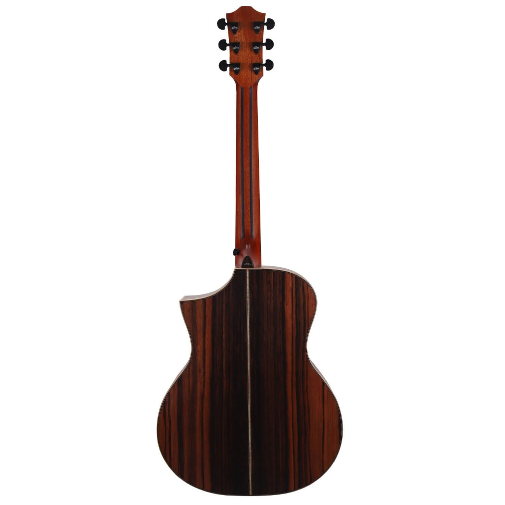 BAR5CEは、ソリッドシトカスプルーストップとソリッドアマラエボニーバック&サイドを採用したオールソリッドボディのアコースティックギターです。伝統的なアコースティックギターサウンドを奏でるとともに、単板ならではの時間とともに育てる楽しみを味わえるモデルとなっています。オリジナルデザインのブリッジやアバロンを使用したMt. Bromoポジションインレイ、アマラエボニーを丁寧に組み合わせたロープデザインのロゼッタなど、細部に至るまで上質なデザインを追求しています。さらに、Hillsideと名付けられたオリジナルカッタウェイがハイフレットでの演奏を快適にし、見た目にも優美な印象を与えます。ライブやレコーディングに最適なFishman Sonitoneピックアップシステムを搭載し、多彩な現場で活躍できる一本です。
