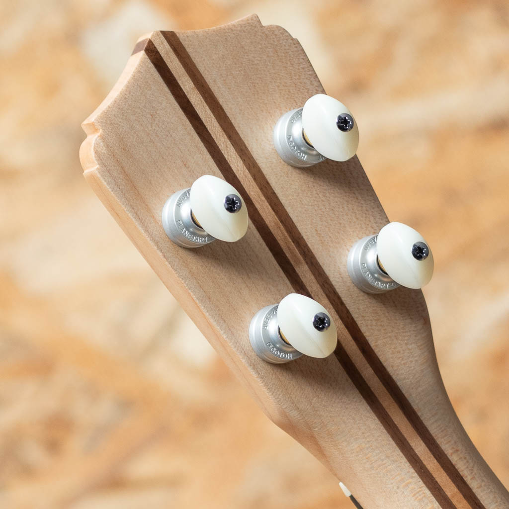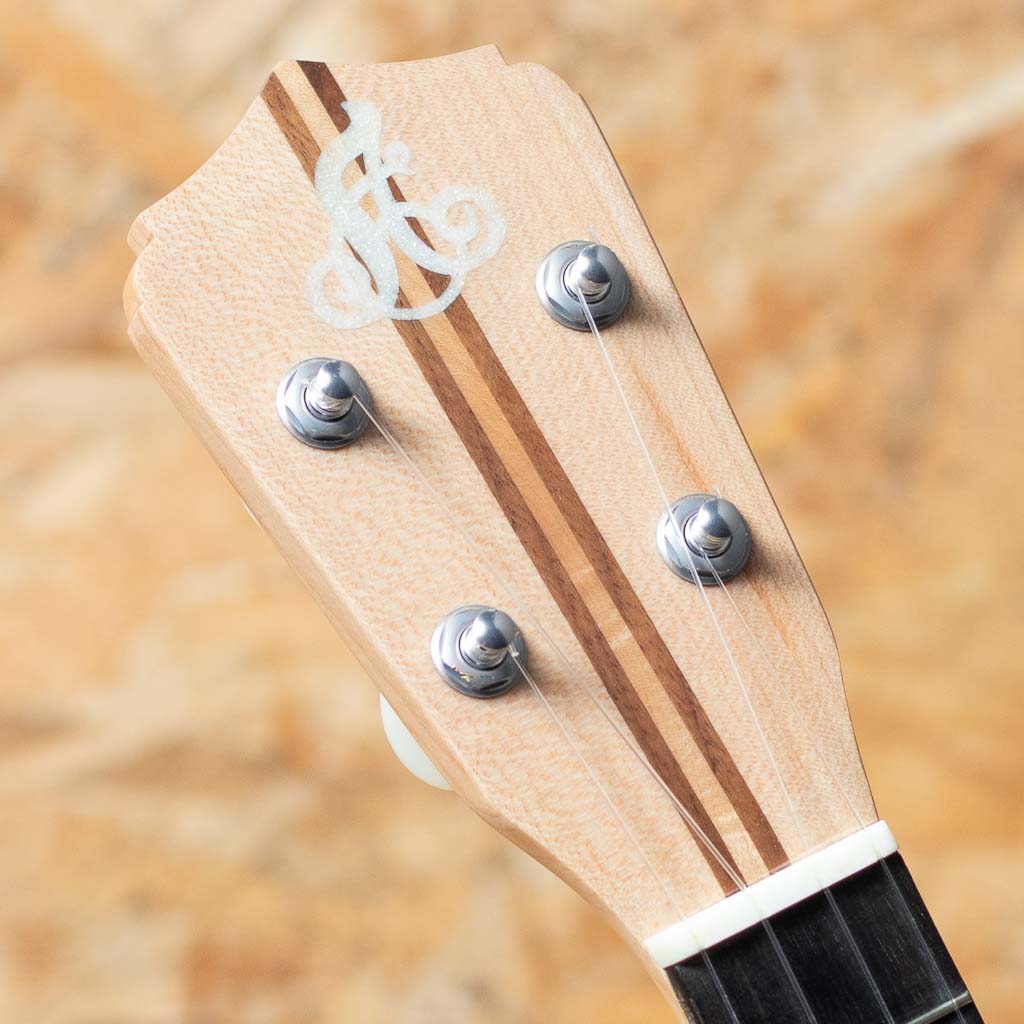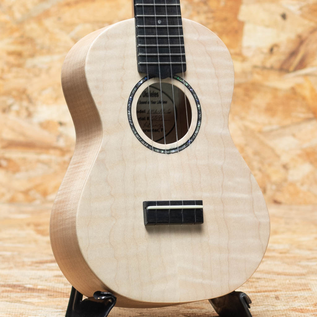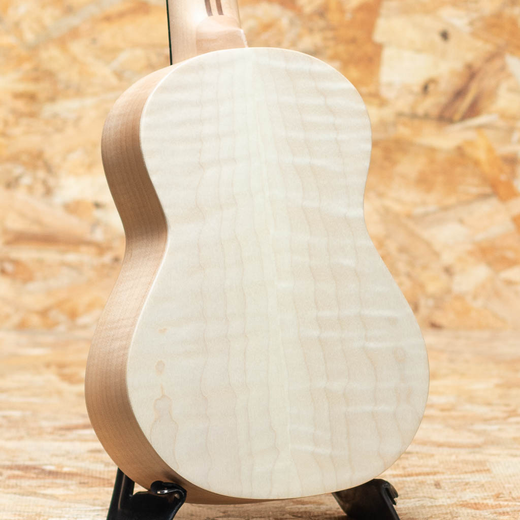 ロプリンジはアメリカ・フロリダ州にて、弦楽器職人”アーガスティノ・ロプリンジ”氏により生み出されるウクレレ。ロプリンジ氏は、マーティンやフェンダー等の弦楽器のデザインやコンサルティングを努め、多くの弦楽器職人を輩出。現在も材のこだわりと緻密な設計で名器を生み出しております。ハーブオオタサンなど、著名アーティスト達の愛器の内の1本としても知名度があります。現在は娘のドナ・ロプリンジと共に製作をされております。本器はメイプルボディのコンサートモデル。メイプルネック、エボニー指板&ブリッジ、アバロンロゼッタ、ゴトーUPTペグ。メイプルの杢にアバロンのロゼッタが映えるルックスです。キレのある明るく気持ちの良いサウンド。つや消し仕上げで質感、肌触りも良い1本です。