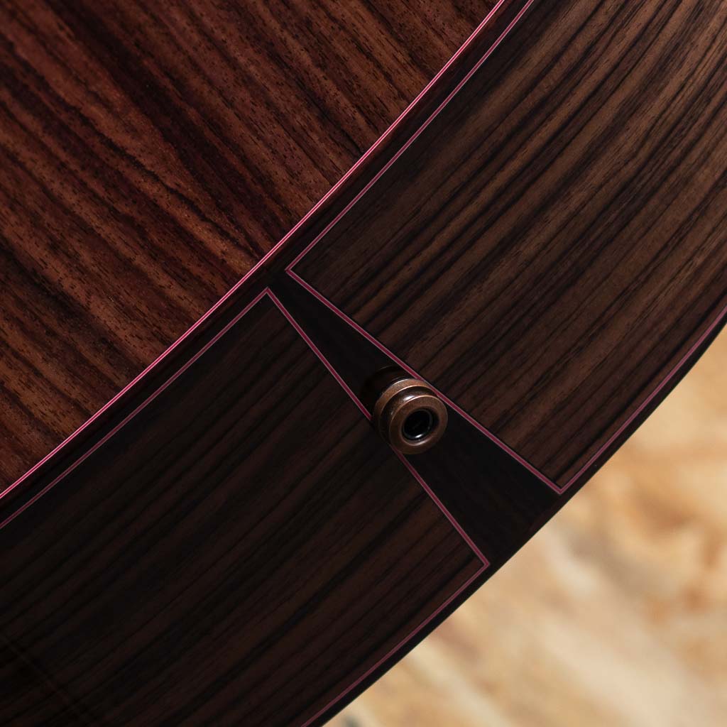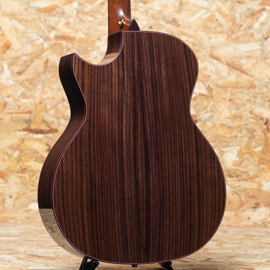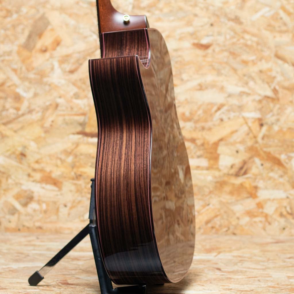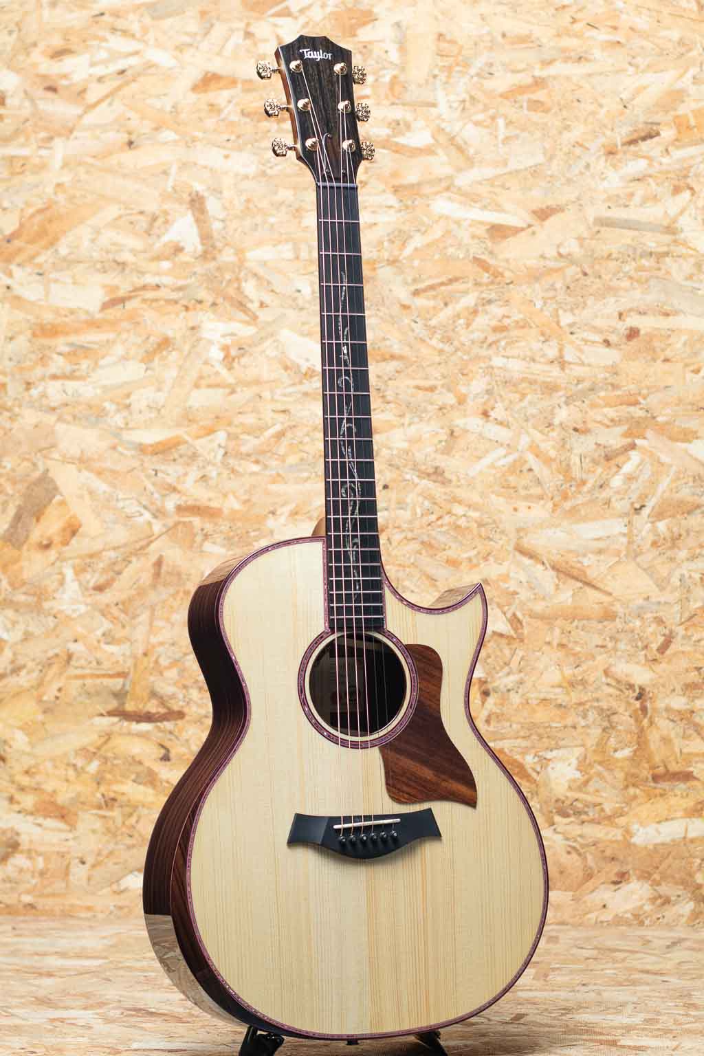 2000年代より急速に成長し画期的なギター構造を採用した事によって世界のトップアコースティックブランドに成長したテイラー社。国内をはじめ特に米国ではプロミュージシャン使用のシェアが高く、圧倒的な人気を誇っています。本器は2025年カスタムギター選定会”Taylor Catch Event”にて発表されたカスタムモデル。グランドオーディトリアムボディ、アディロンダックスプルーストップ、ローズウッドサイド&バック、マホガニーネック、エボニー指板&ブリッジ、ベベルコンター、V-Classブレーシング、LR Baggs Element VTCピックアップ搭載。パウア貝を使用した指板のSpring Vineインレイ、トリム、ロゼッタにアバロン入りのブリッジピンやマザーオブパールTaylorロゴに対し、バインディングとピックガード、V字型の大型ローズウッド製テールストリップ、ベベル加工されたアームレストにはローズウッドを合わせており、煌びやかなながらも落ち着きのある高級感を演出しています。特別な1本をお求めの方に是非とも手にしていただきたい1本。世界10本のみの限定生産モデルです。