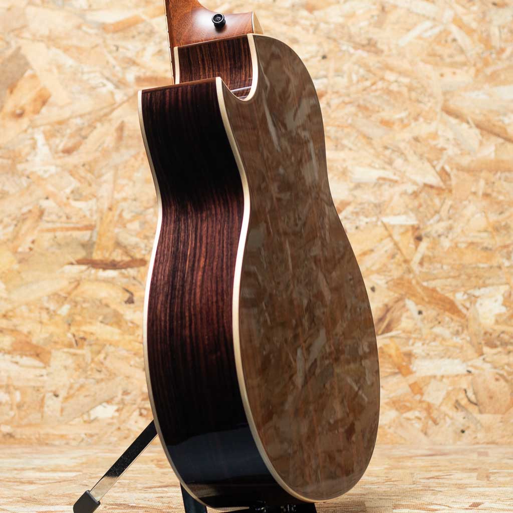 2000年代より急速に成長し画期的なギター構造を採用した事によって世界のトップアコースティックブランドに成長したテイラー社。国内をはじめ特に米国ではプロミュージシャン使用のシェアが高く、圧倒的な人気を誇っています。本器は2026年カスタムギター選定会”Taylor Catch Event”にて発表されたカスタムモデル。スーパーグランドオーディトリアムボディ、イングルマンスプルーストップ、インディアンローズウッドサイド&バック、マホガニーネック、ホンジュラスローズウッド指板&ブリッジ、ハードロックメイプルバインディング、パウアクレスト指板インレイ、フローレンタインカッタウェイ。Gold Label シリーズに登場し、人気急上昇中のSuper Auditoriumボディシェイプに現状のラインナップには存在しないカッタウェイを搭載したこちらのモデル。Fanned V-Classブレーシングによる1930~40年代のアコースティックギターからインスパイアされたウォームでウッディなサウンドと甘くレンジが広いサウンドと高い演奏性を両立。Next Generationシリーズから登場した新しい"Clariaピックアップシステムも搭載されており、Taylorギターの新時代をふんだんに取り込んでいるスペシャルな一本です。簡単に正確なネックアングルの微調整を可能にしたロングテノンネックジョイントももちろん搭載。日本国内への入荷はこの一本のみの特別な1本です。ぜひご検討くださいませ。