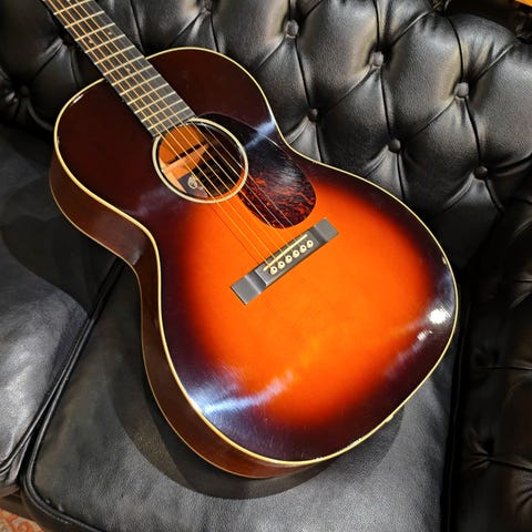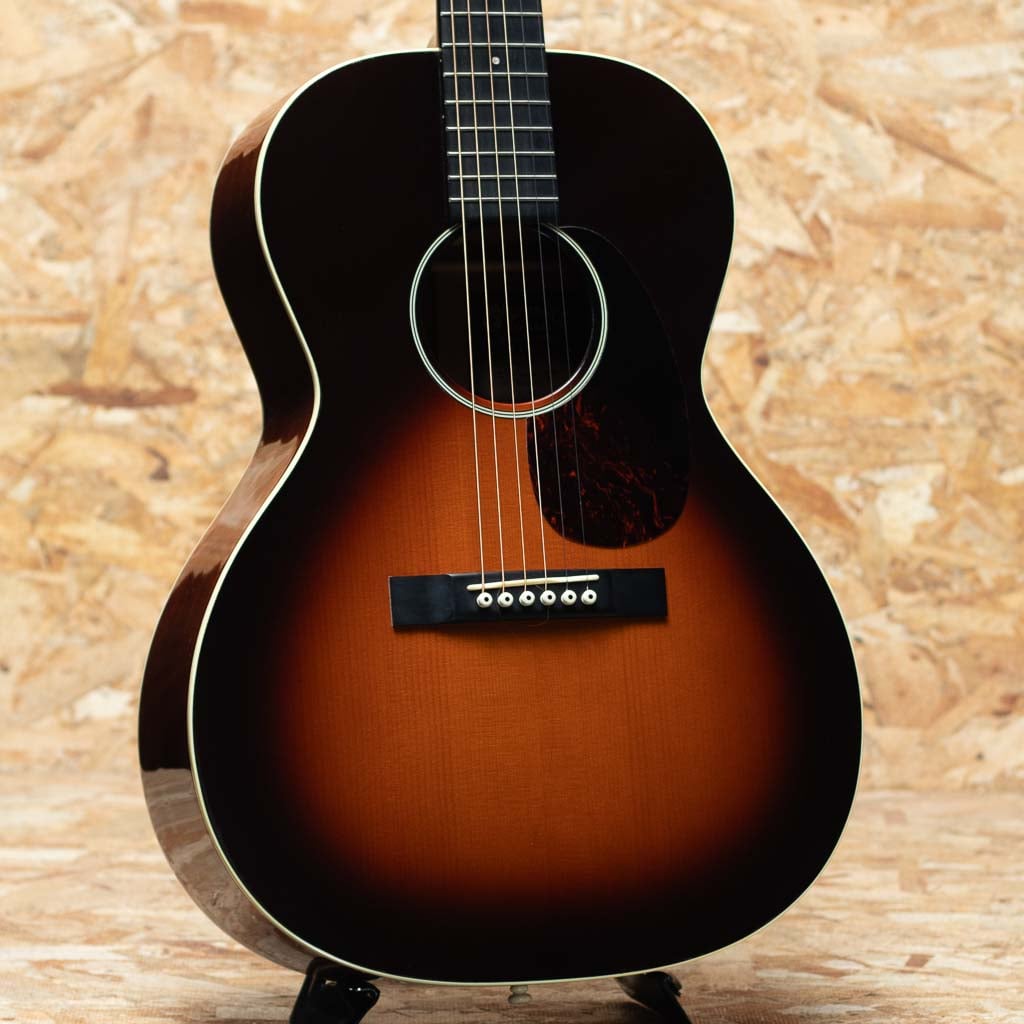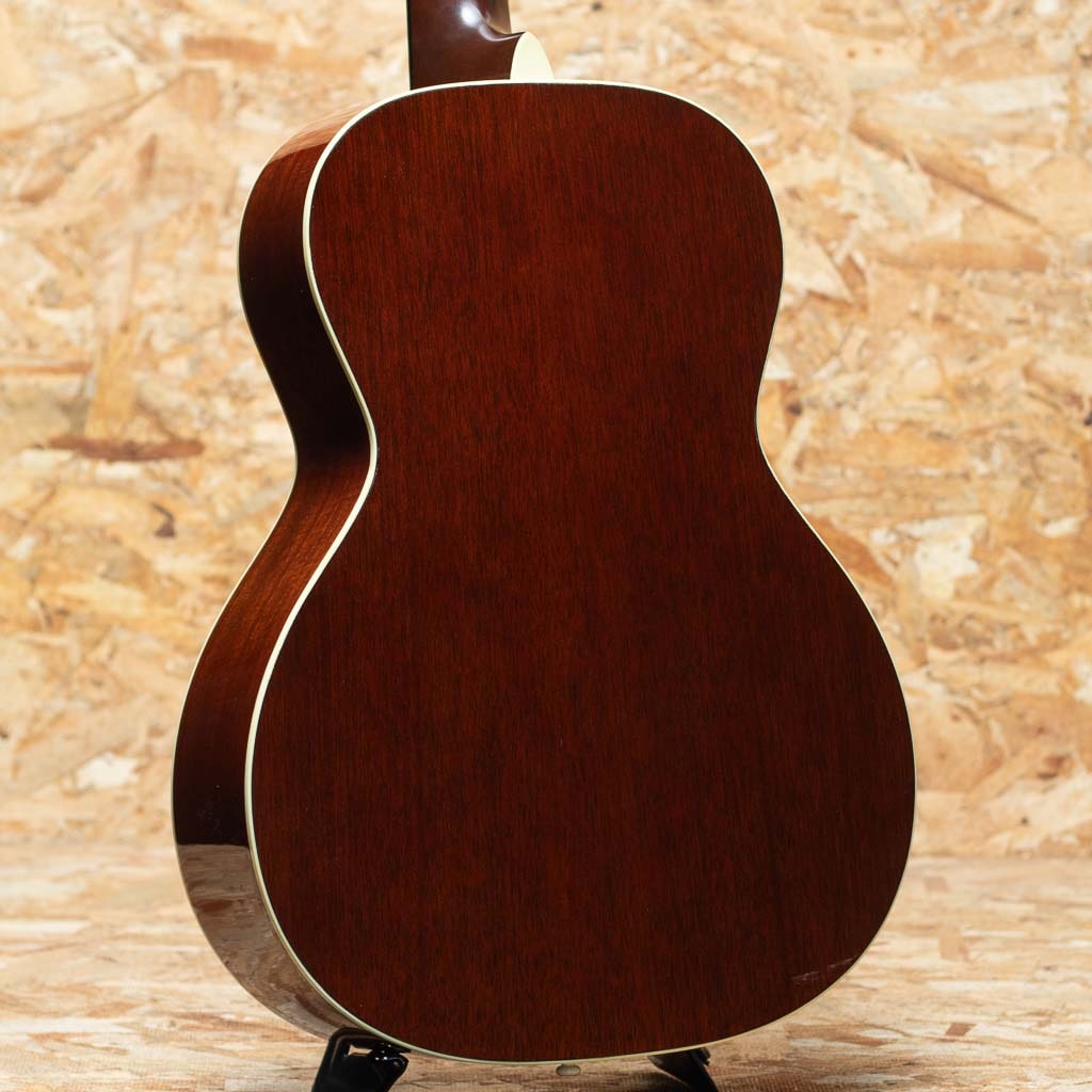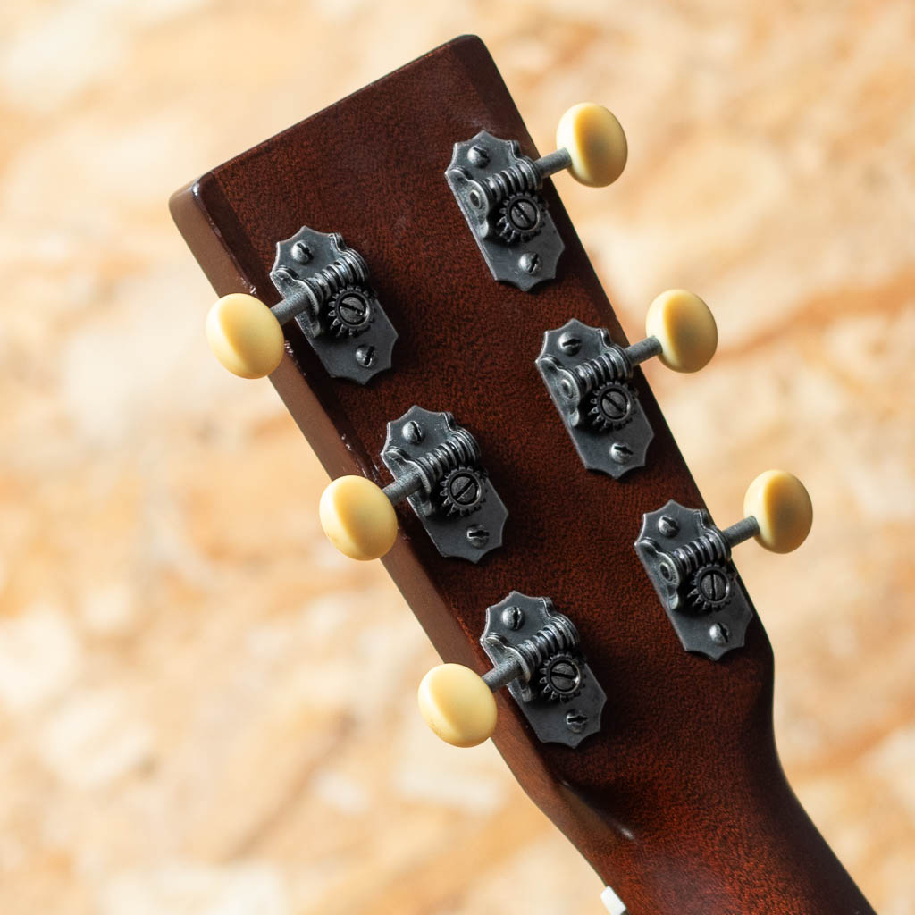 ワールドスタンダードモデル"D-28"や永遠の憧れ"D-45"など長い歴史の中で幾多の傑作を作り上げてきたマーチン。伝統を守りながら新たな流れを取り入れ今でも進化を続けています。本器はマーチンCEOのクリス・マーティン4世のアイディアを基に製造される"CEOシリーズ"の"CEO-7"の2013年製UAED品。アディロンダックスプルーストップ、マホガニーサイド&バック、エボニー指板&ブリッジ、ゴールデンエイジレリックオープンバックペグ、ドット指板インレイ、べっ甲柄ピックガード、44.5mmナット幅、モディファイドVシェイプネック、スキャロップドXブレイシング。OOスロープショルダーシェイプの小ぶりなボディ、オープンバックのプラスチックボタンペグ、レクタンギュラーブリッジ、サンバーストカラーというマーチンでは珍しいルックスが特徴的な1本。ノンスキャとは異なり、温かく広がるような響きと太く芯のあるブライトなサウンド。ふんわりと空気感があり繊細なタッチへの反応も良く、ピックではアルペジオからストロークまで、そして表現豊かなフィンガースタイルでも偏りなく使えます。ネック形状はヴィンテージを意識したややV気味のシェイプ。しっかりとした握りごたえのネックからはスタンダードでは得られない、太く芯のあるサウンドが得られます。ヘッド部のやや目立つ打痕や部分的な塗装のくもり、バインディング剥がれの修正痕と修正に伴い一部塗装剥がれの修正痕が見られます。その他使用感は見られますがプレイコンディションは良好です。ピックでの演奏ももちろんフィンガーピッキングでも気持ちよく反応してくれる、CEOの遊び心溢れる1本。オリジナルハードケース付属です。
