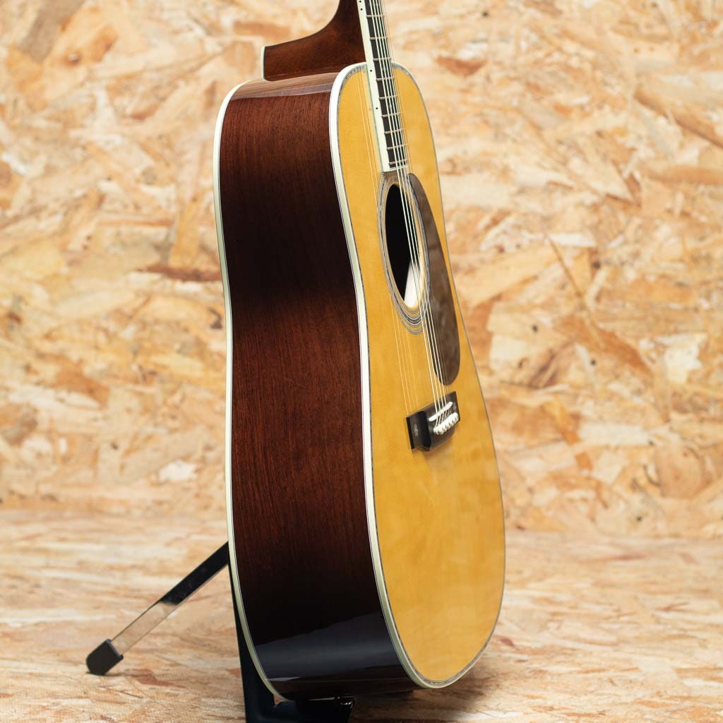 世界に一つだけのカスタムモデル!マーティンカスタムショップ製ギターとはマーティンファクトリー内のほんの一郭にて少数精鋭の熟練職人により手掛けられる超一級ギターのこと。オーセンティックシリーズや、特注品、一点モノのギターなどの生産がそれに当たります。本器は41よりも一層ファンシーなデザインで、マーチン40番台の中でも人気の高いD-42をベースとしたカスタムモデルの2022年製USED品。トップにプレミアムグレードのイタリアンアルパインスプルース、サイド&バックにはプレミアムグレードのマダガスカルローズウッドを採用。ヘッドプレートもマダガスカルローズウッドへ変更。スタイルはそのままシンプルに材を贅沢にアップグレードしたカスタム品となっています。マホガニーネック、エボニー指板&ブリッジ、グローバーオープンバックペグ、バーチカルヘッドロゴ、スノーフレークス指板インレイ、ベッコウ柄ピックガード、アバロンロゼッタ&トリム、モザイクバックストリップ、フォワードシフテッド・スキャロップドXブレイシング。上品できらびやかな倍音感が良く、しっかりとしたボリュームでふくよかさもあるバランスの取れた上質なサウンド。繊細かつドレッドノートに求めたい音量や低音の深みもしっかりと味わえます。使用感もほどんど感じられずとても綺麗な状態が保たれております。カスタムモデルでも貴重となったマダガスカルローズウッドモデル。是非、お手元でご堪能ください。オリジナルハードケース付属です。