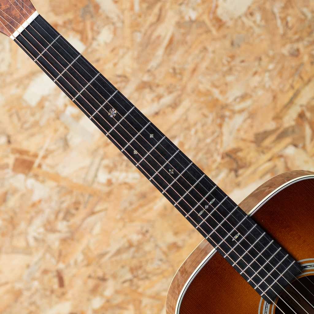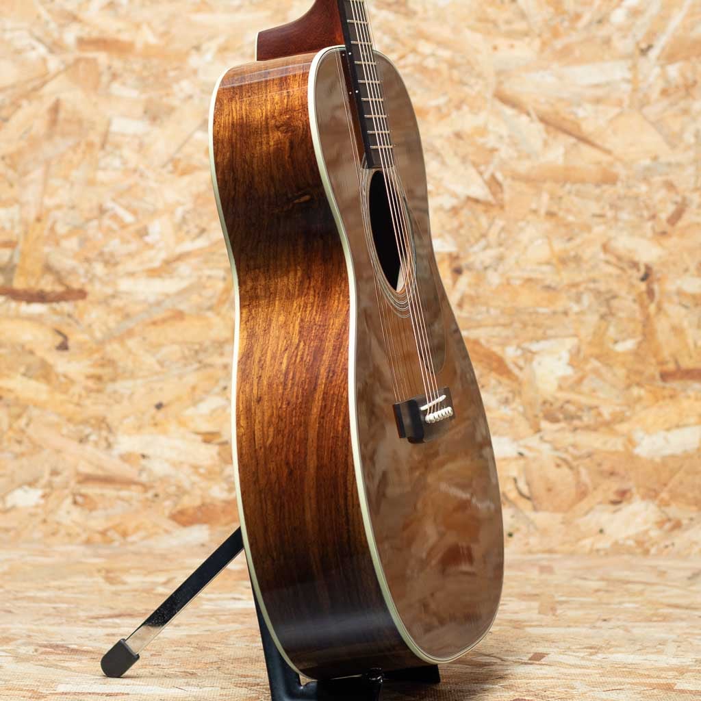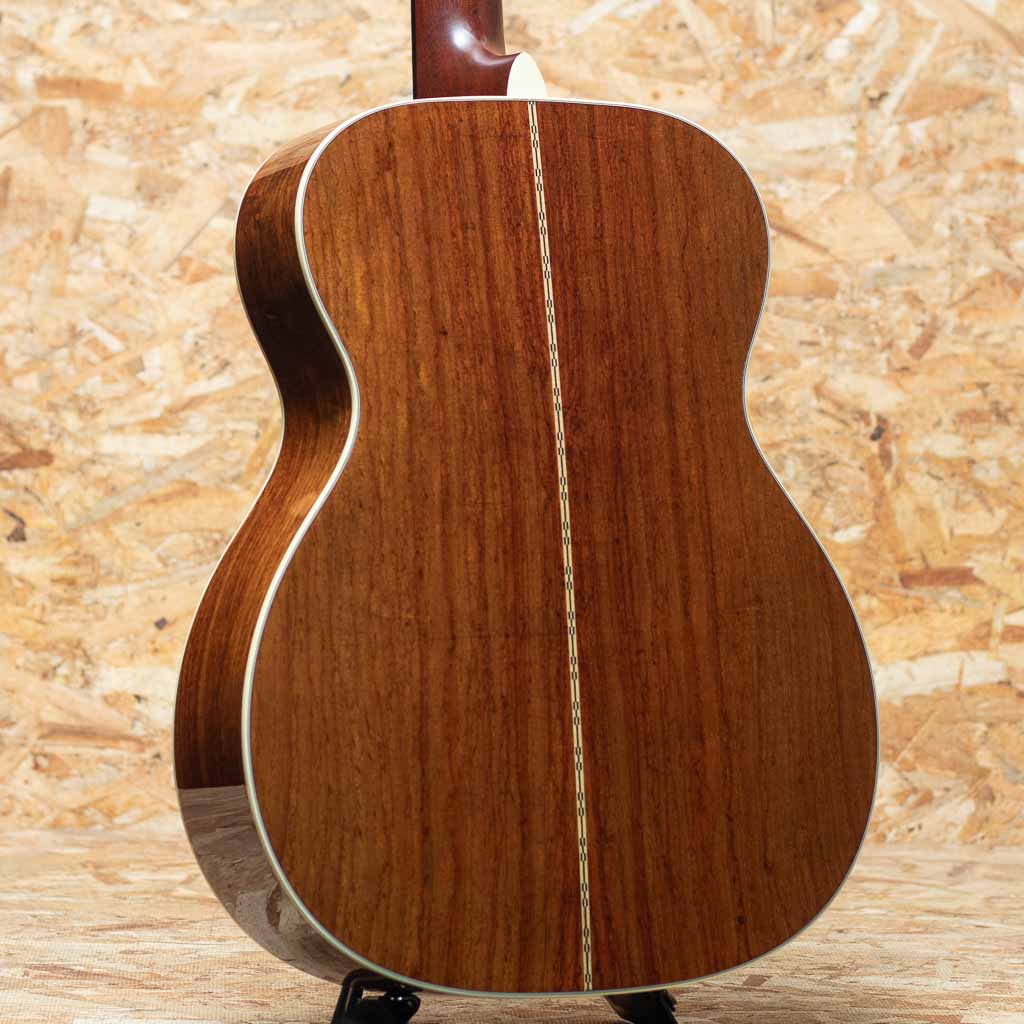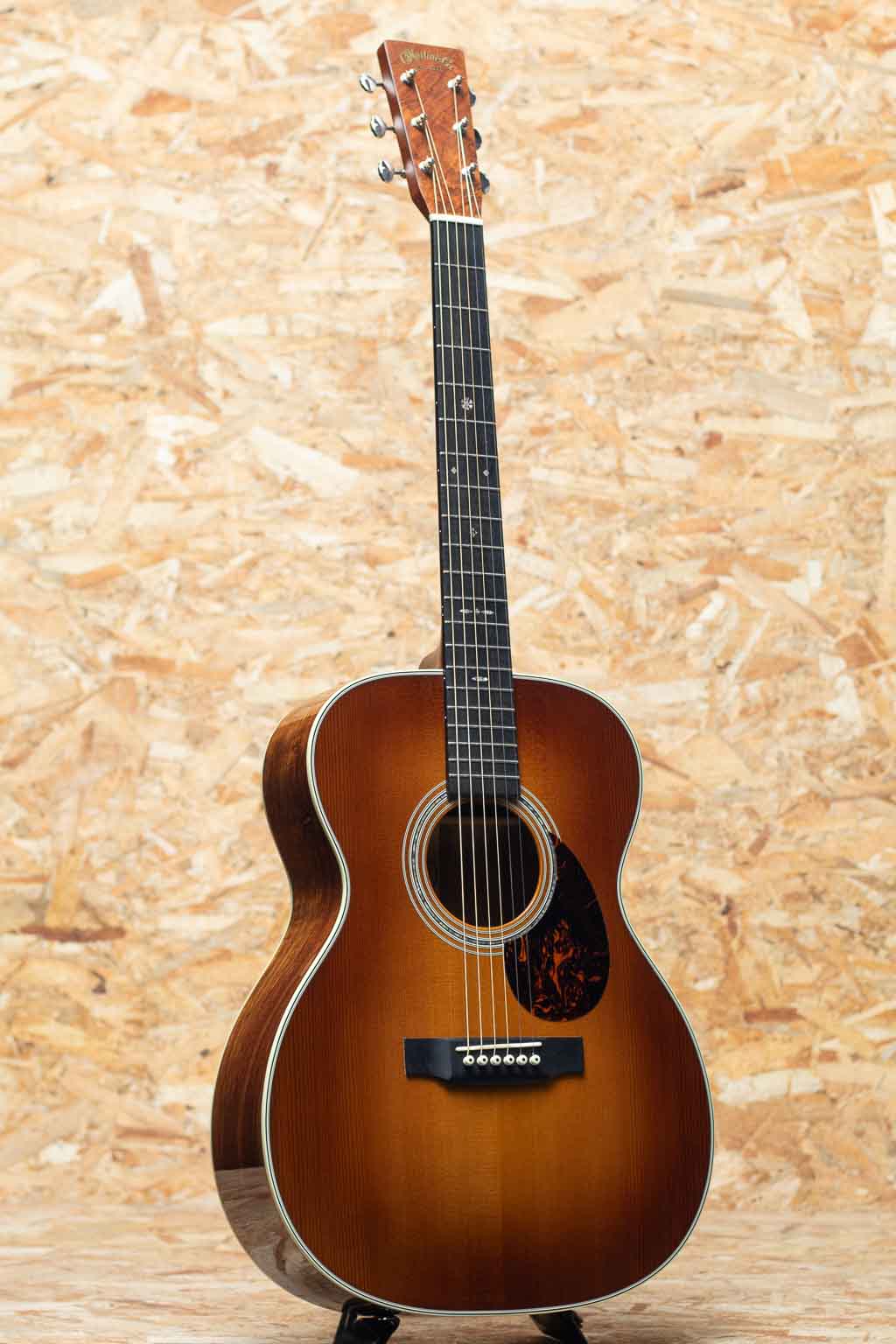 現マーチン工場の中でも、卓越した技術と豊富な経験から至極のギターを造り出す"Martin Custom Shop"。ここ数年一際話題を集めるオーセンティックシリーズの製作をはじめ、高い完成度を誇るこだわりのカスタムモデルを製造するトップクラスの部門。本器はOMボディをベースにカスタマイズされた2014年製 USED品。カルパチアンスプルーストップ、フィギャードココボロサイド&バック、マホガニーネック、エボニー指板&ブリッジ、ウェバリー製オープンバックペグ 、アバロンロゼッタ、べっ甲柄ピックガード、スノーフレイク指板インレイ、アディロンダックスプルースのスキャロップドXブレイシング、アンバーバーストカラー。ロウプロファイルのネックで握りやすく、OMスケールで快適な演奏性。レギュラーモデルでは味わえない上質なサウンドです。全体的に極々薄い小キズが見られる程度で、たいへん美しい外観を維持しております。ネックの状態含めプレイコンディションも大変良好。オリジナルハードケース付属。