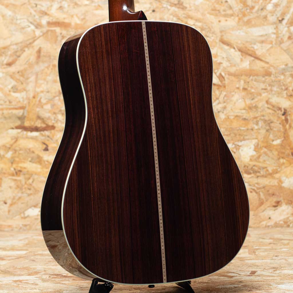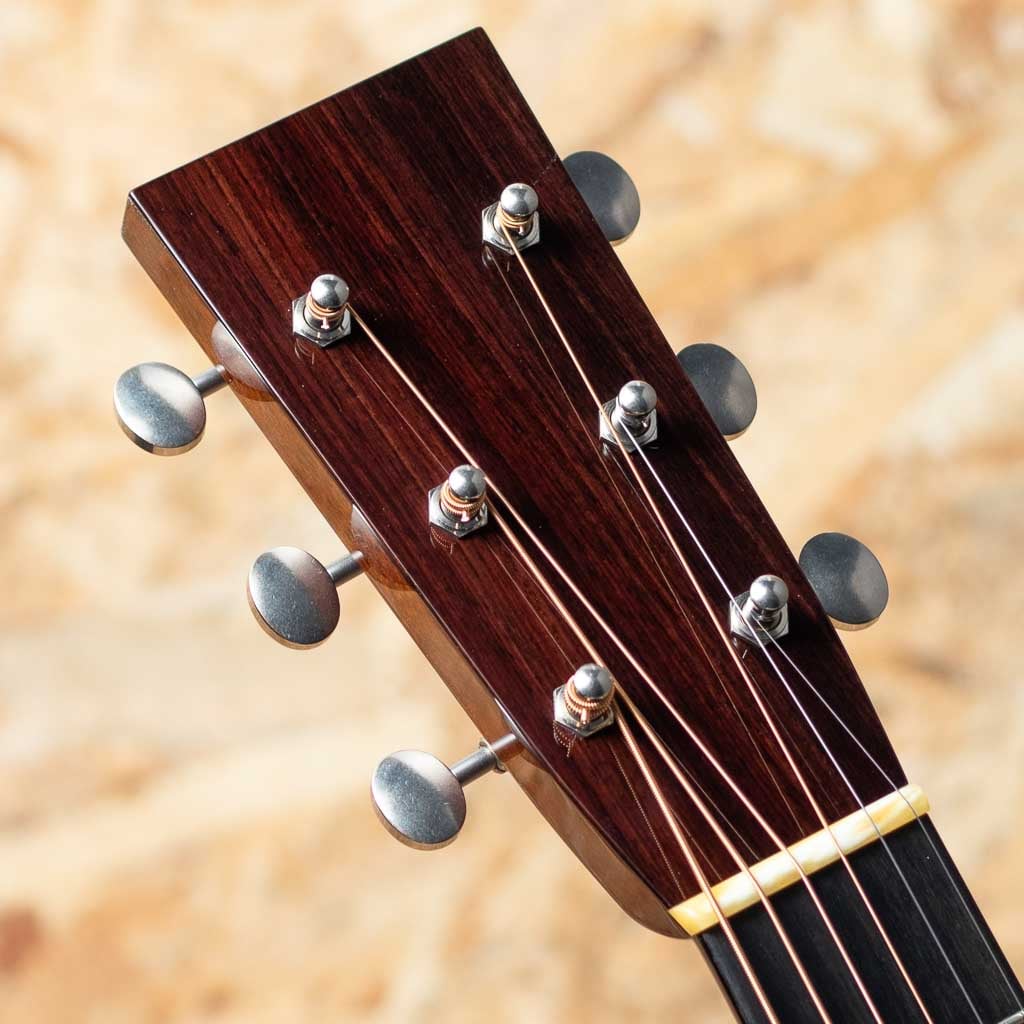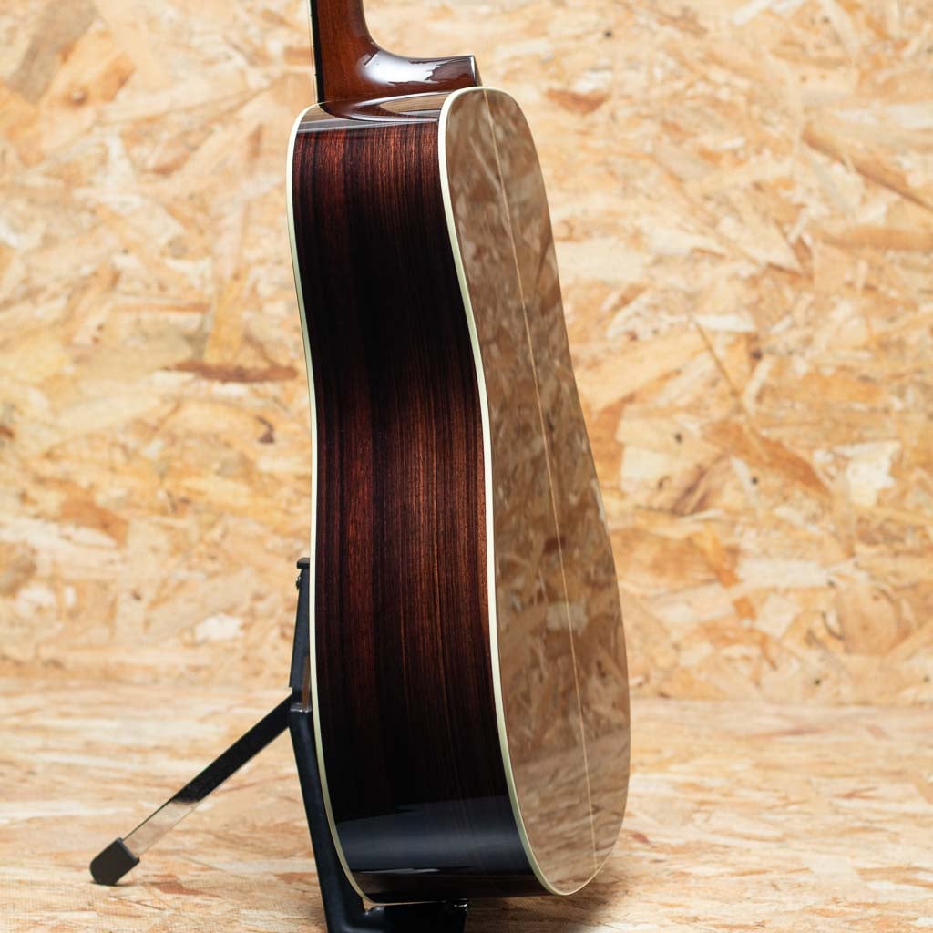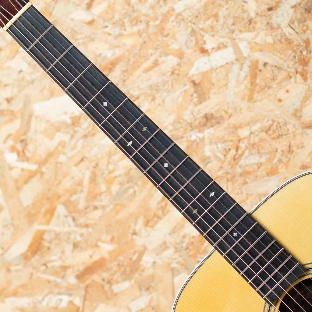 世界でもっとも高い評価を得ているブランドの一つ”コリングス”。高く保たれたその完成度は、プレイヤーがその楽器を手に持つだけで見惚れてしまう美しさを持ち、音を出せば納得する響きを放ちます。本器はプリウォービンテージの魅力にスポットを当てて開発した”ヒルカントリー”シリーズの一本、”D2A HC”。アディロンダックスプルーストップ、イーストインディアンローズウッドサイド&バック、ホンジュラスマホガニー1Pネック、エボニー指板&ブリッジ、スロッテッドダイアモンド&スクエア指板インレイ、レリックウェバリーオープンバックペグ、べっ甲柄セルロイドピックガード、アイボロイドバインディング、ジグザグバックストリップ、ヒルカントリースキャロップドXブレーシング。厳選された材をただ組み上げるのではなく、トップ・サイド・バックが一体となって響くよう、“組み合わせの妙”に着目してセレクト。従来の倍音豊かでピアノ的な解像度を誇るハイファイ・サウンドとは方向性が異なるパワフルで温かみのあるベース音とドライなキャラクターを持つこのモデルは、ブルーグラス奏者に馴染みやすい豊かな低音域のトーンと明確なアーティキュレーションを実現。余計なオーバートーンを伴わない力強い基音を重視したサウンドメイクはフラットピッキングはもちろん、繊細なフィンガースタイルや歌の伴奏でも心地よくマッチします。フラットトップアコースティックギターに求められる多くの要素をかなり高い次元で体現する完璧な実力派モデルに仕上げられています。UVの下地を使用しない極薄の高光沢ニトロセルロース・ラッカー仕上げにCollings Guitars創立者であるビルが生前に製作した唯一無二のスタンプを使用したヘッド裏のCollingsロゴ。シンプルでトラディショナルな佇まいの中に、上質かつ緻密な美しさを感じさせるデザイン。”これまでの歩みと新しい時代を橋渡しする”NEWシリーズの一本。是非お手元でお確かめください。
