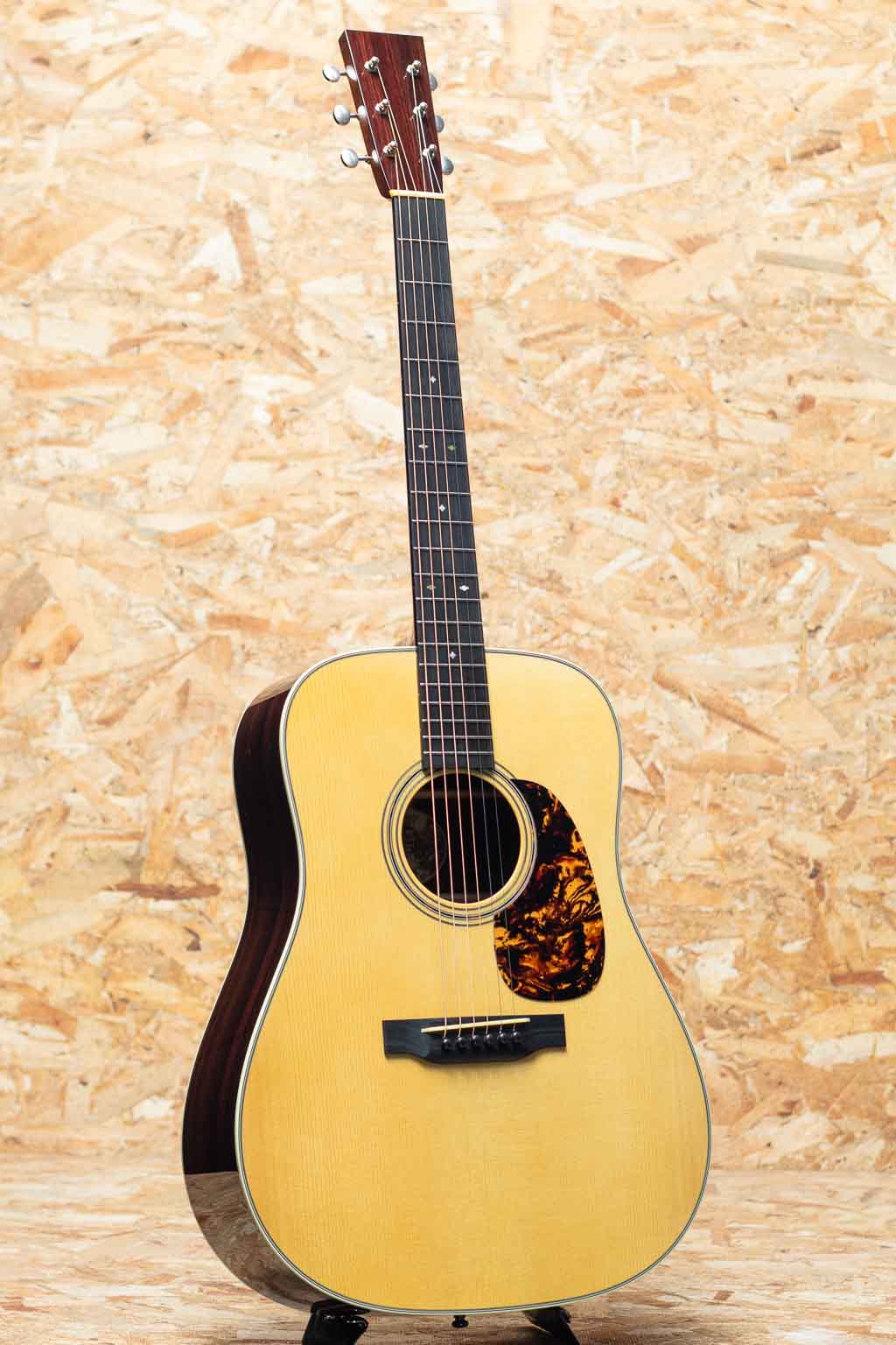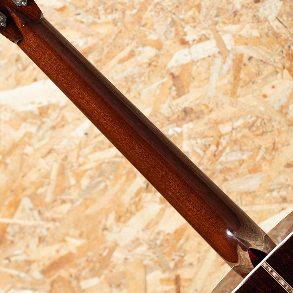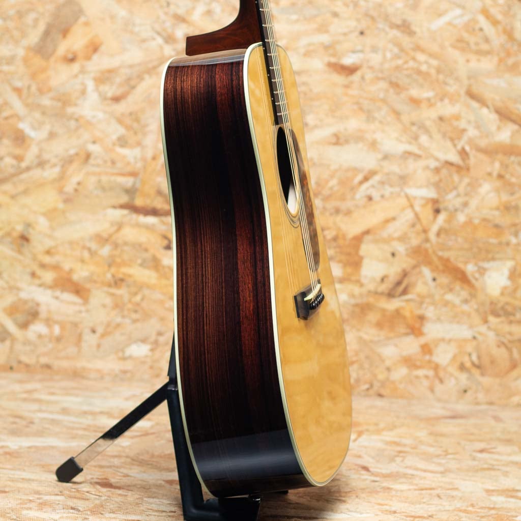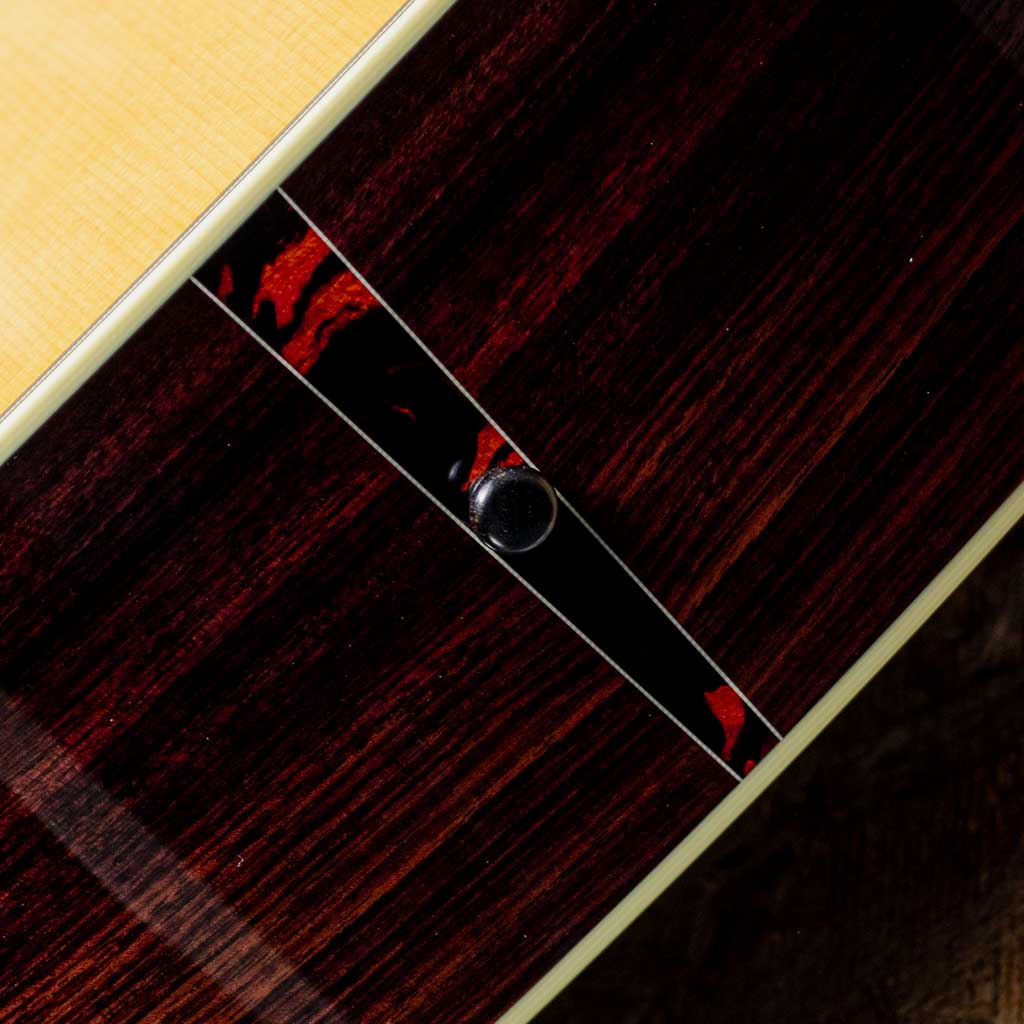 世界でもっとも高い評価を得ているブランドの一つ”コリングス”。高く保たれたその完成度は、プレイヤーがその楽器を手に持つだけで見惚れてしまう美しさを持ち、音を出せば納得する響きを放ちます。本器はプリウォービンテージの魅力にスポットを当てて開発した”ヒルカントリー”シリーズの一本、”D2A HC”。アディロンダックスプルーストップ、イーストインディアンローズウッドサイド&バック、ホンジュラスマホガニー1Pネック、エボニー指板&ブリッジ、スロッテッドダイアモンド&スクエア指板インレイ、レリックウェバリーオープンバックペグ、べっ甲柄セルロイドピックガード、アイボロイドバインディング、ジグザグバックストリップ、ヒルカントリースキャロップドXブレーシング。厳選された材をただ組み上げるのではなく、トップ・サイド・バックが一体となって響くよう、“組み合わせの妙”に着目してセレクト。従来の倍音豊かでピアノ的な解像度を誇るハイファイ・サウンドとは方向性が異なるパワフルで温かみのあるベース音とドライなキャラクターを持つこのモデルは、ブルーグラス奏者に馴染みやすい豊かな低音域のトーンと明確なアーティキュレーションを実現。余計なオーバートーンを伴わない力強い基音を重視したサウンドメイクはフラットピッキングはもちろん、繊細なフィンガースタイルや歌の伴奏でも心地よくマッチします。フラットトップアコースティックギターに求められる多くの要素をかなり高い次元で体現する完璧な実力派モデルに仕上げられています。UVの下地を使用しない極薄の高光沢ニトロセルロース・ラッカー仕上げにCollings Guitars創立者であるビルが生前に製作した唯一無二のスタンプを使用したヘッド裏のCollingsロゴ。シンプルでトラディショナルな佇まいの中に、上質かつ緻密な美しさを感じさせるデザイン。”これまでの歩みと新しい時代を橋渡しする”NEWシリーズの一本。是非お手元でお確かめください。