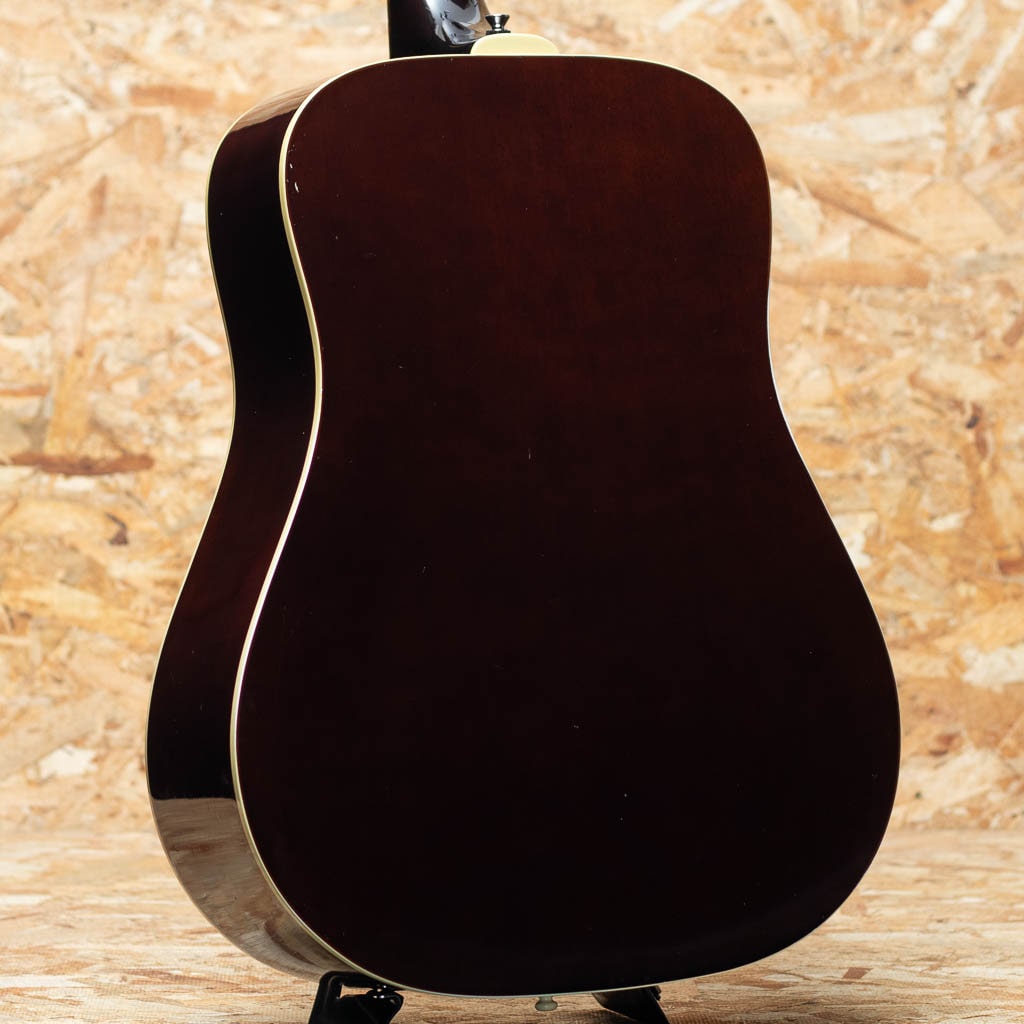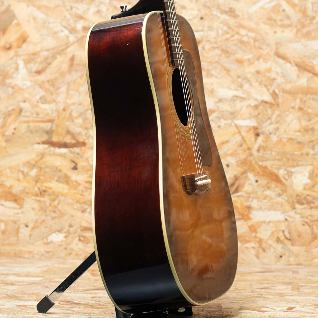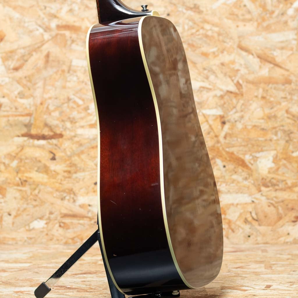 Paul Simon (ポール・サイモン)やJohn Denver (ジョン・デンバー)、Nick Drake (ニック・ドレイク)等、数多のフォークシンガー達が愛したGuild (ギルド)。現在もコアなファンからの支持が手厚い事で知られ、愛好家の間で密かに人気のある玄人好みなギターブランドです。本器は1963年より製作が開始され、ギルドのマホガニーサイドバックモデルのフラッグシップとして1992年に製造中止となるまで多くのミュージシャンに愛されてきたモデル”D40”1978年製USED品。作りはギルドの下位モデルとは異なり、ボディーバックはラウンド処理などはされず単板構造でしっかりと作り込まれた印象です。オリジナルドレッドノートシェイプにスプルーストップ、マホガニーサイドバック、マホガニーネック、ローズウッド指板&ブリッジ。ネックヒールにはストラップピンが取り付けされています。ノンスキャロップブレイシングでヒールブロックも大きくしっかりと組み上げられたギルドヴィンテージらしい硬派な仕様です。全体的に打痕や擦り傷が散見される他、経年によるピックガードの縮みなどが見られるなど年代相応の使用感がございます。ネックコンディションは良好で、クリアで抜けの良いサウンドです。程度の良いギルドでお探しの方にオススメです。汎用ハードケースが付属いたします。