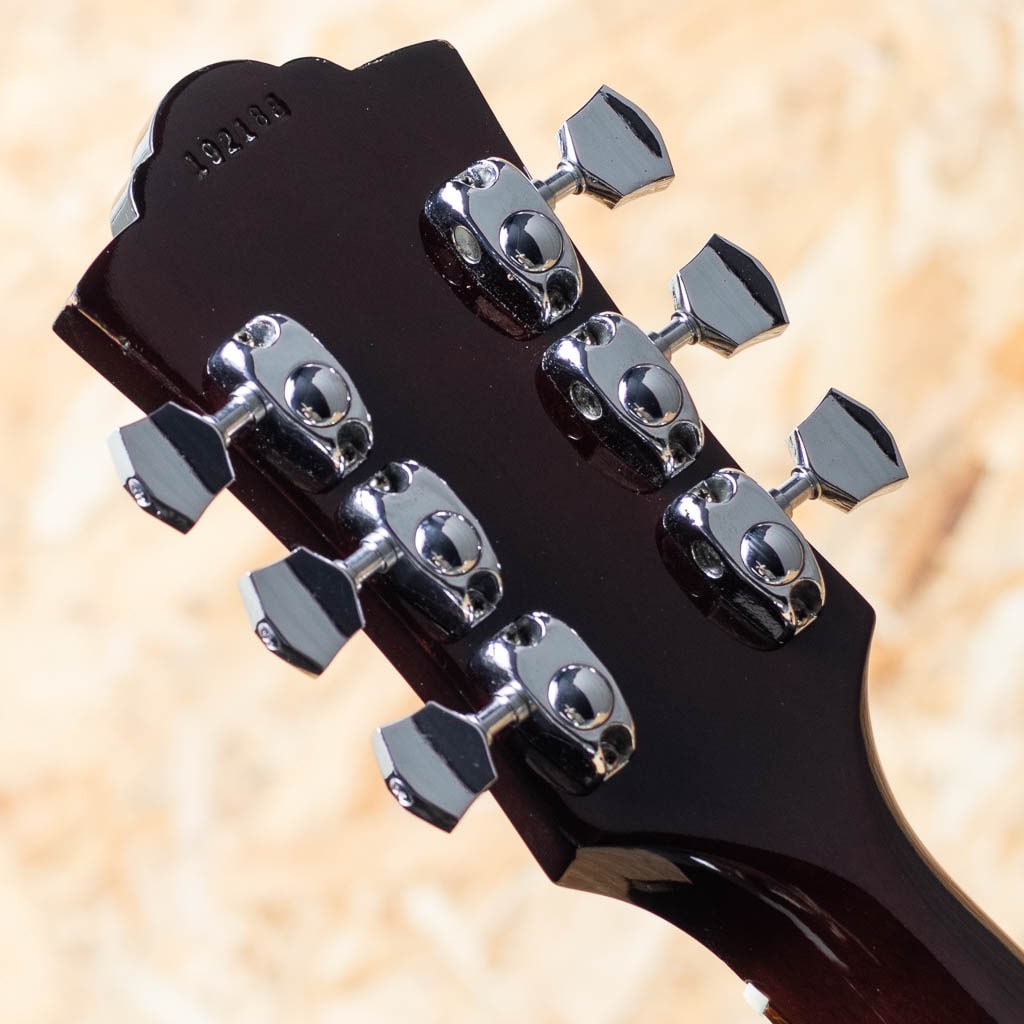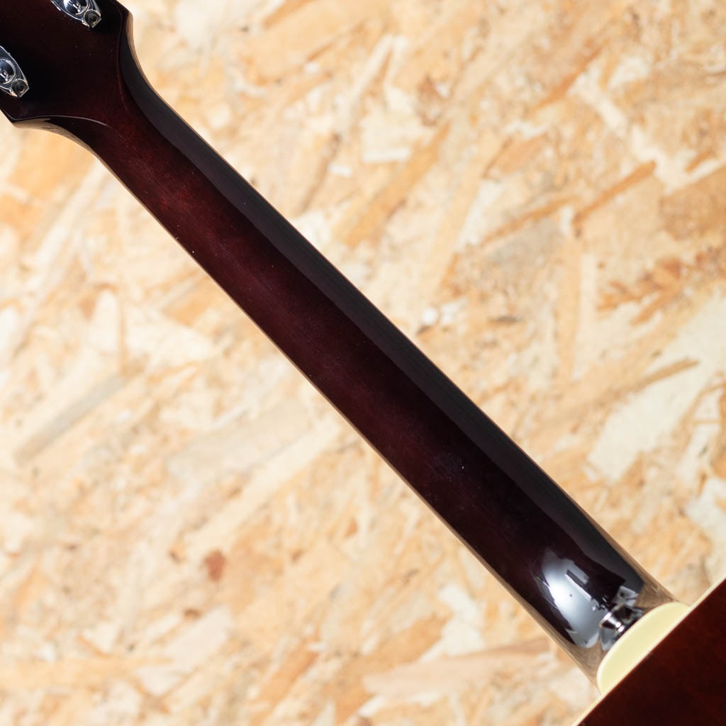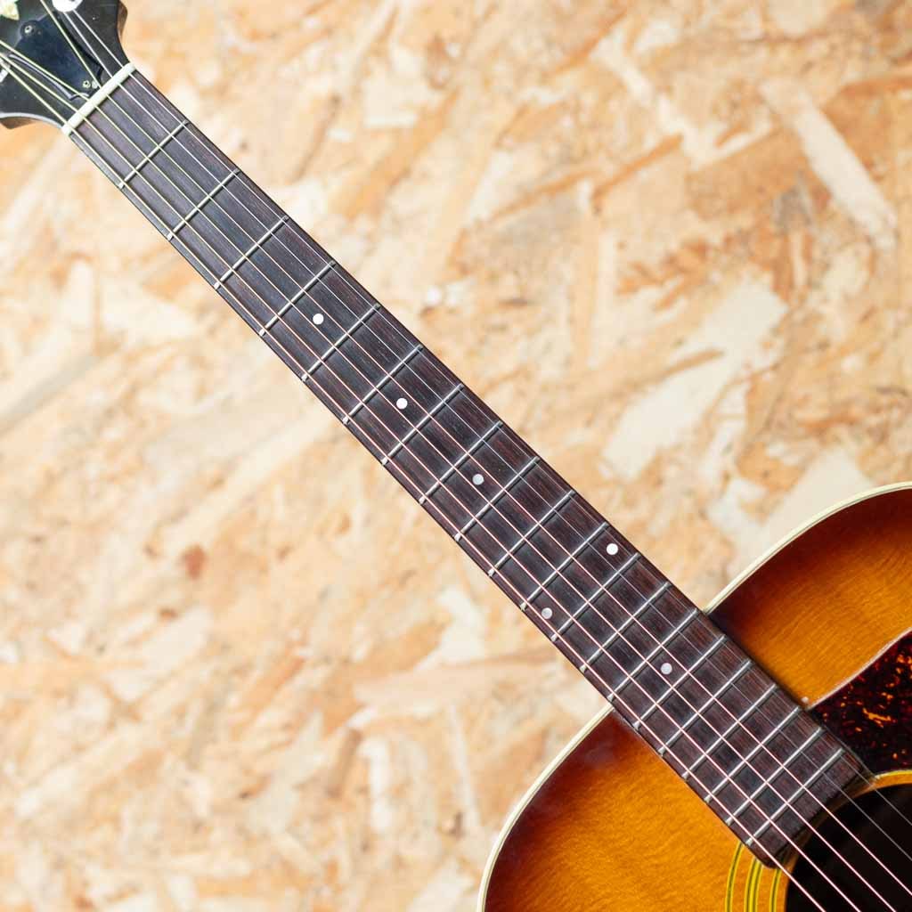 Paul Simon (ポール・サイモン)やJohn Denver (ジョン・デンバー)、Nick Drake (ニック・ドレイク)等、数多のフォークシンガー達が愛したGuild (ギルド)。現在もコアなファンからの支持が手厚い事で知られ、愛好家の間で密かに人気のある玄人好みなギターブランドです。本器は1963年より製作が開始され、ギルドのマホガニーサイドバックモデルのフラッグシップとして1992年に製造中止となるまで多くのミュージシャンに愛されてきたモデル”D40”1978年製USED品。作りはギルドの下位モデルとは異なり、ボディーバックはラウンド処理などはされず単板構造でしっかりと作り込まれた印象です。オリジナルドレッドノートシェイプにスプルーストップ、マホガニーサイドバック、マホガニーネック、ローズウッド指板&ブリッジ。ネックヒールにはストラップピンが取り付けされています。ノンスキャロップブレイシングでヒールブロックも大きくしっかりと組み上げられたギルドヴィンテージらしい硬派な仕様です。全体的に打痕や擦り傷が散見される他、経年によるピックガードの縮みなどが見られるなど年代相応の使用感がございます。ネックコンディションは良好で、クリアで抜けの良いサウンドです。程度の良いギルドでお探しの方にオススメです。汎用ハードケースが付属いたします。