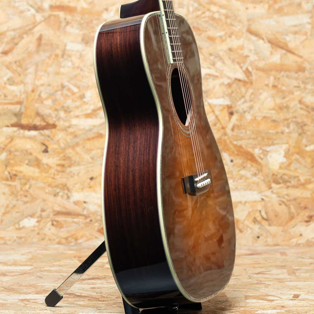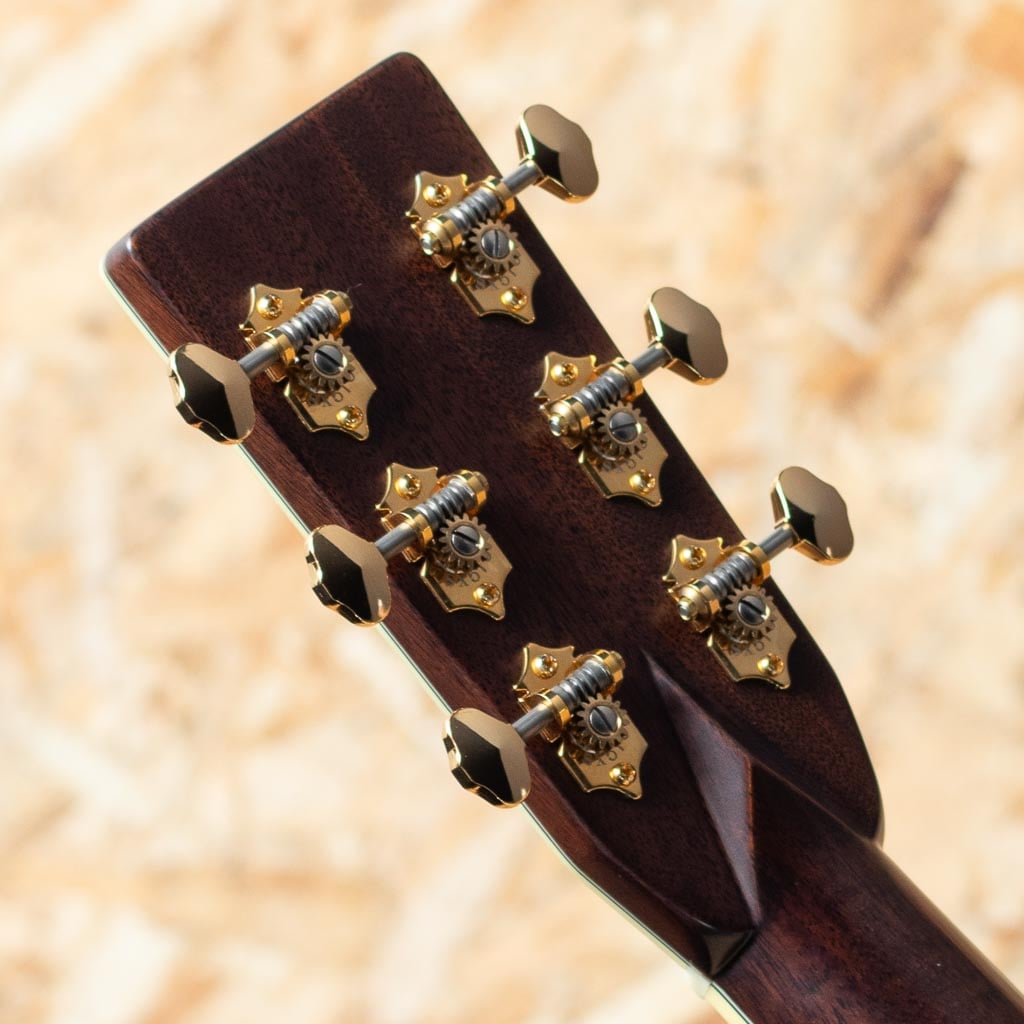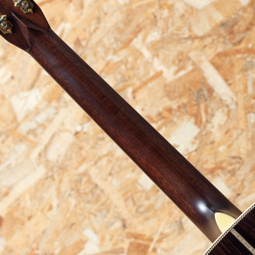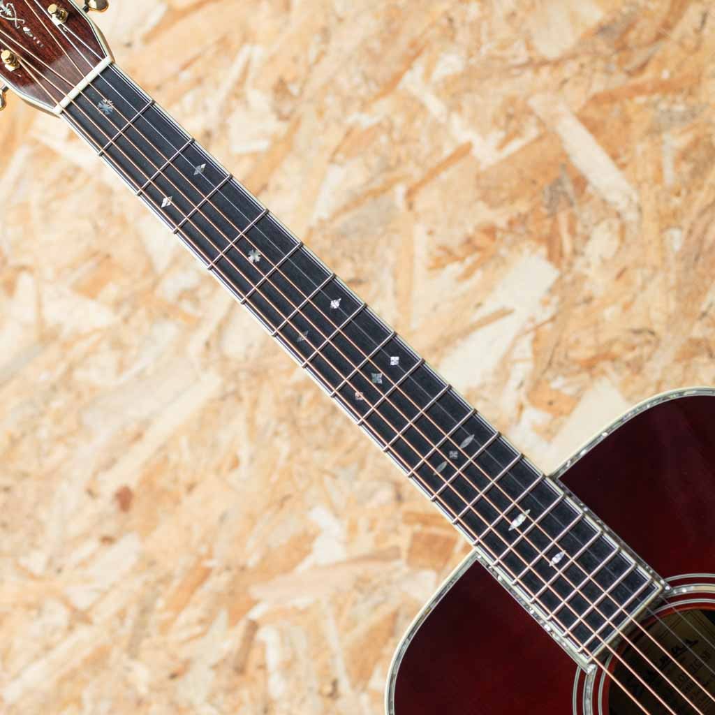 単板削り出しのアーチトップギターに定評のあるEastman。本器は”42”スタイルの美しい装飾に希少材を採用したEastman最上位モデルの”E40-OM-TC-SB”。モデル名には”OM”の表記がありますが、こちらのモデルは弦長632.5ミリのショートスケールです。AAAグレードアディロンダックスプルーストップ、ローズウッドサイド&バック、エボニー指板&ブリッジ、ゴトーゴールドペグ、アバロンスノーフレーク指板インレイ、スキャロップドXブレイシング、サンバーストフィニッシュ。トップの希少材アディロンダックスプルースには”サーモキュア”と名付けられた特殊な熱処理が施してあり、長年弾き込んだような豊かな音を出力。ダナ・ボジョアとの業務提携により更に深化した高品質な設計により優れた分離感と驚くほどの表現力・アーティキュレーションを持ち合わせています。目立つような傷や使用感はなく、大変美しい状態をキープしており、新品のギターを探されている方にもおすすめです。国内流通の少ないこちらのモデル、ぜひご検討くださいませ。オリジナルハードケース付属。