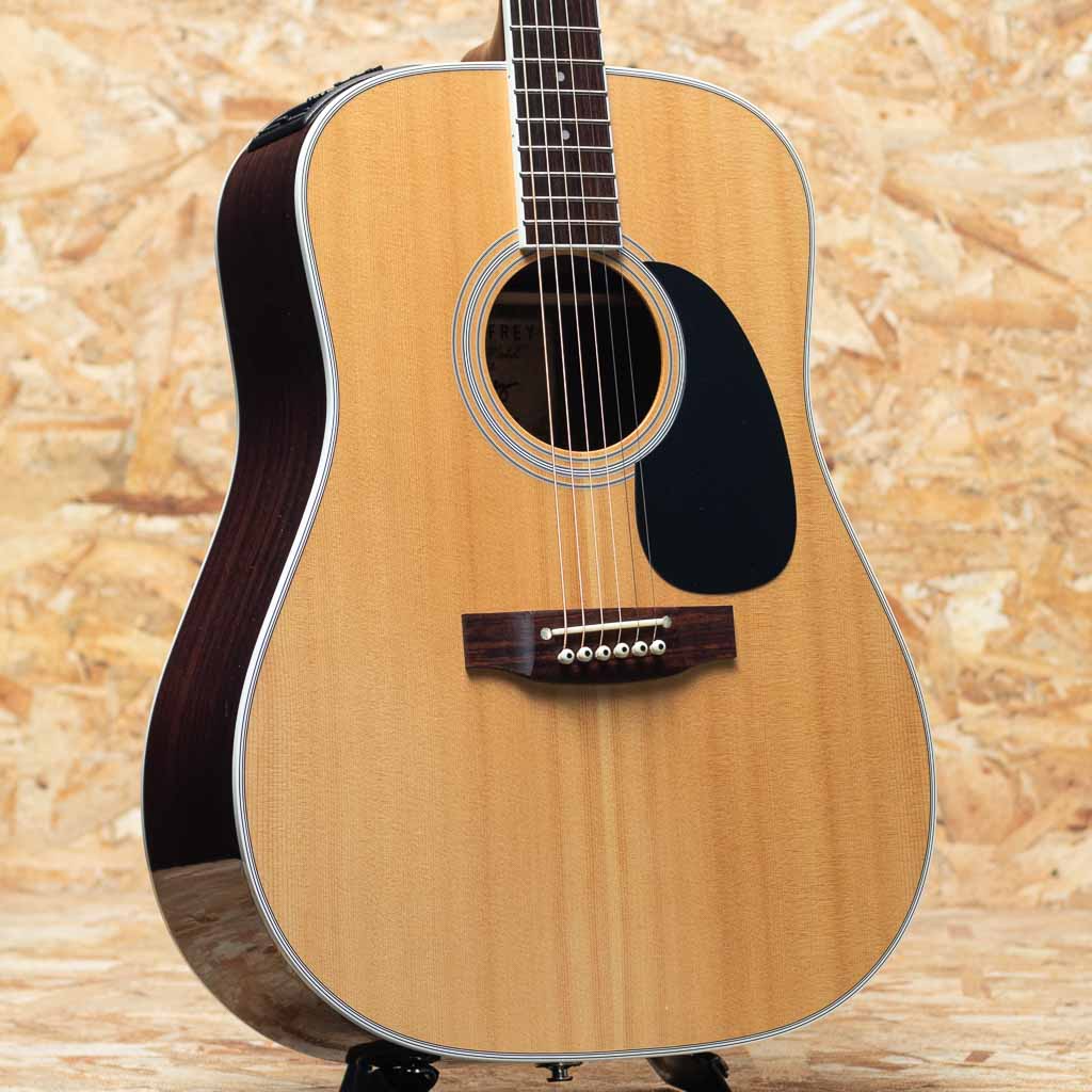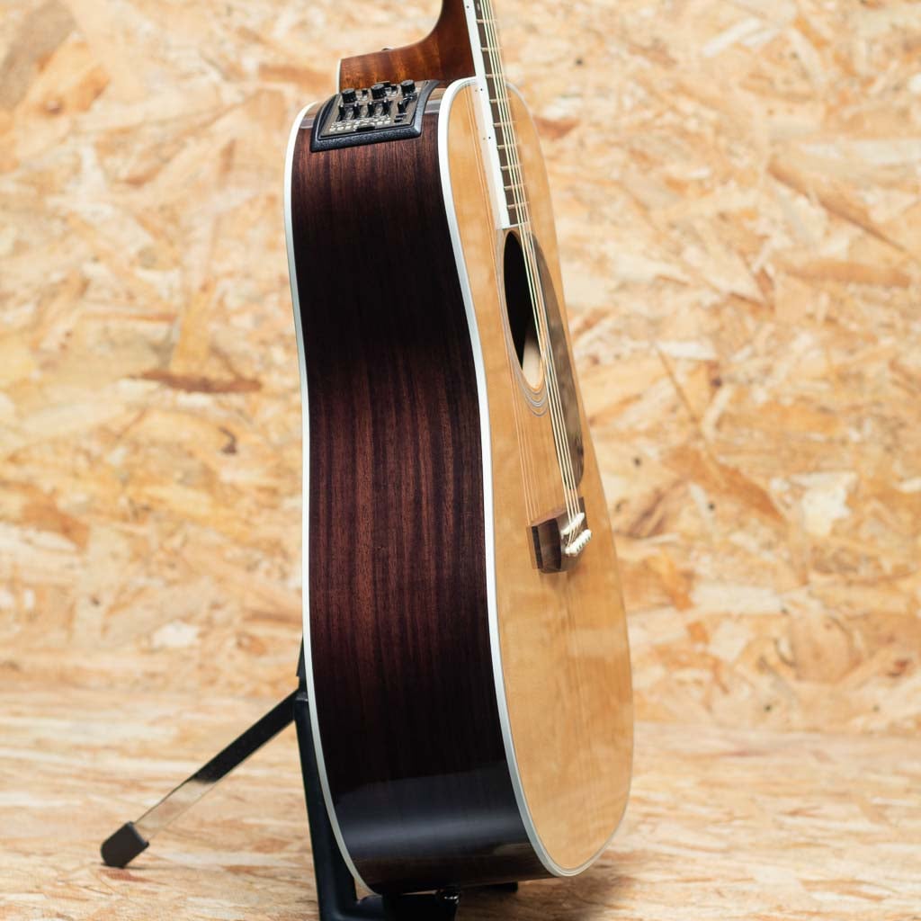 岐阜県中津川市にて製造される純国産ブランドのタカミネギター。特にエレアコとしての地位は高く、世界でもあらゆるビッグアーティストから高い評価を得ています。本器はワールドスタンダードシリーズ、伝説のロックバンド''イーグルス''の 創設メンバー、リーダーとして著名な"Glenn Frey(グレン・フライ)"シグネチャーモデル"EF360GF"2015年製USED品。スプルーストップ、ローズウッドサイド&バック、マホガニーネック、ローズウッドフィンガーボード&ブリッジ。ボディ内のラベルにはグレン・フライ氏の署名も入っております。プリアンプはDMPプリアンプ&コンタクトピックアップが搭載されております。もっともスタンダードで人気のあるウッドマテリアルを採用。トラディショナルなドレッドボディースタイルにタカミネラージヘッド、ブランドロゴ部付近にはワンポイントでグレンフライのシグネーチャーが入れられています。サウンドは流石できらびやかなタカミネサウンドがまさにあの名曲にマッチします。DMPピックアップによるパワフルなサウンドはもちろん、コンタクトピエゾマイクによりボディヒット、胴鳴りも忠実に再現可能。僅かに打痕が見られますが、使用感はほとんど感じられずきれいな状態が保たれています。ファンの方にもオススメの1本。オリジナルハードケース付属です。