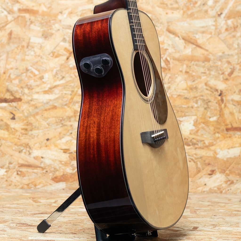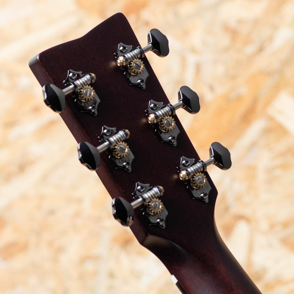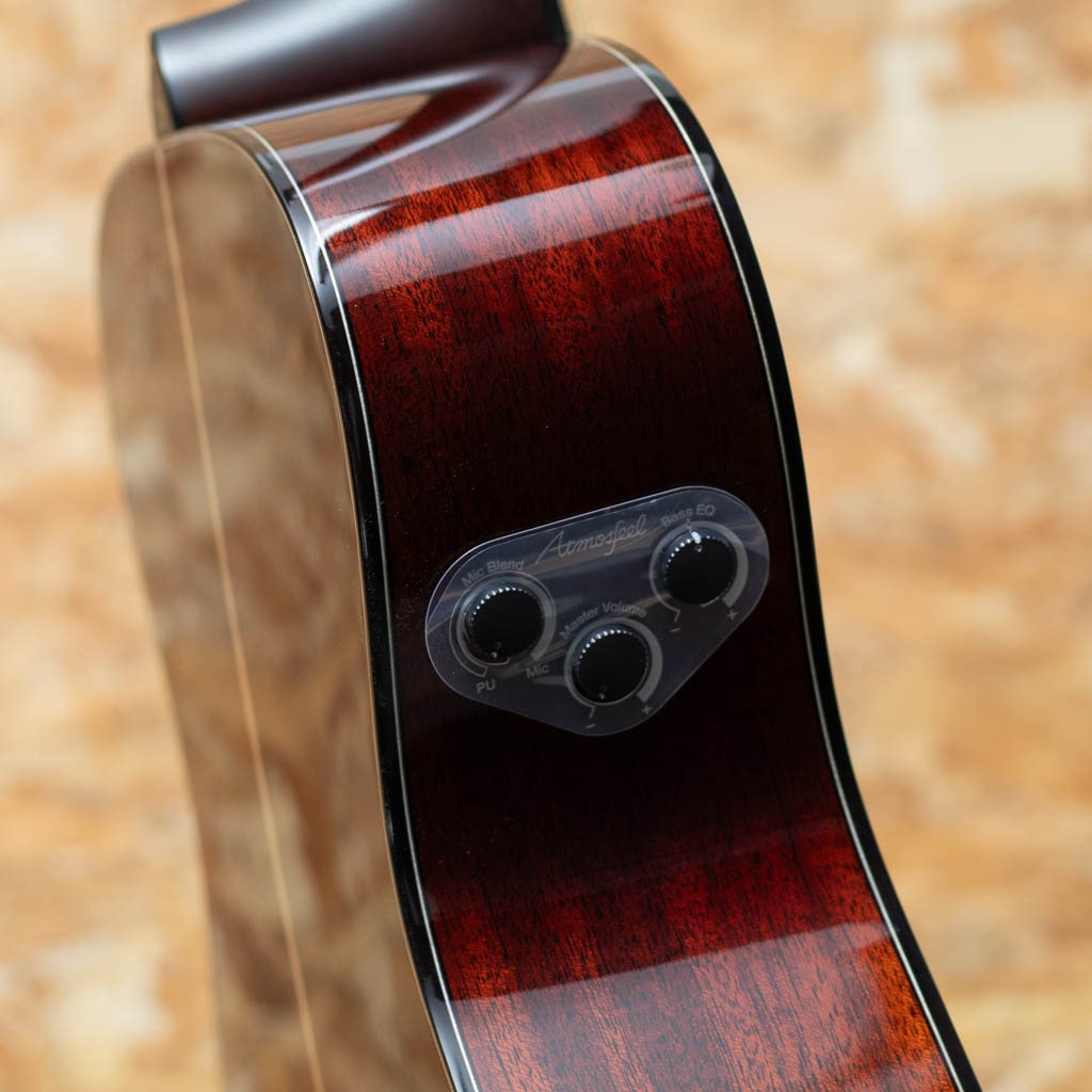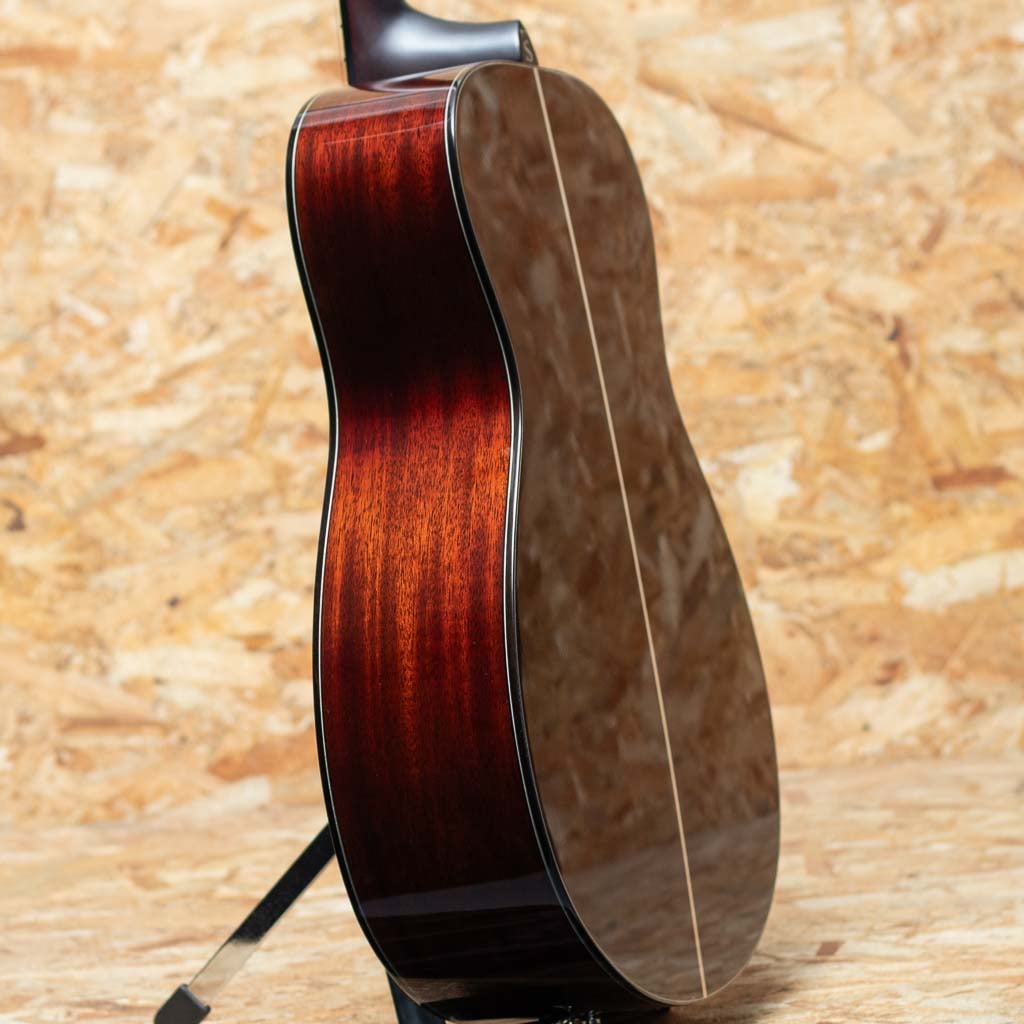 FGシリーズの最高峰国産モデルとして発売された”FG9”シリーズに新たにFSシェイプが登場しました。奏者の弾き方に応える表現力の広さを持ったフラッグシップモデルシリーズ。表板はテーパーエッジ加工を施したアディロンダックスプルースを採用し、構造上の強度を増すと共にボディを効率よく振動させ、力強さと感度の良さの両方に貢献しています。ネックはボルトオン部分と接着部分を組み合わせた新しい構造デザインにより、ボディの振動を高めると共にメンテナンス性を向上。指板上の特徴的なポジションマークは日本の組木細工と同様で、サウンドホール周辺ロープ状のインレイとパーフリングのデザインは日本の文化に基づいています。設計にあたっては、最先端の音響測定と3次元構造測定プロセスを採用し、物理的構造が音響特性にどの様に影響するかを可能な限り解析し、熟練したカスタムショップのビルダーによって繰り返しプロトタイプを製作。こうしてこれまでのモデルとは一線を画す、ハイクオリティギターが完成しました。本器はマホガニーサイド&バックのエレアコモデル”FS9 MX”。レスポンスよく、気持ちの良いミッドレンジにパワフルなサウンドで弾き手に心地よい振動を与えてくれます。ストロークはもちろんですが、フィンガーピッキングや繊細なアルペジオ、指弾きでの弾き語りに最適です。搭載されているAtmosfeelピックアップシステムによりそのサウンドをステージ上でありのままにラインアウトし、収録やライブ、様々な音楽シーンにて即戦力の一本です。小振りなボディとショートスケールで抱えやすさ、演奏性も抜群。まさにフラッグシップモデルにふさわしいハイスペック、ハイクオリティなモデル。ぜひご検討ください。