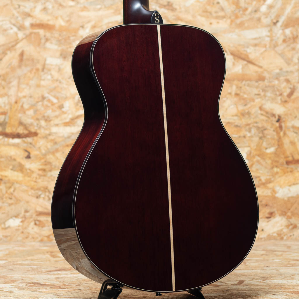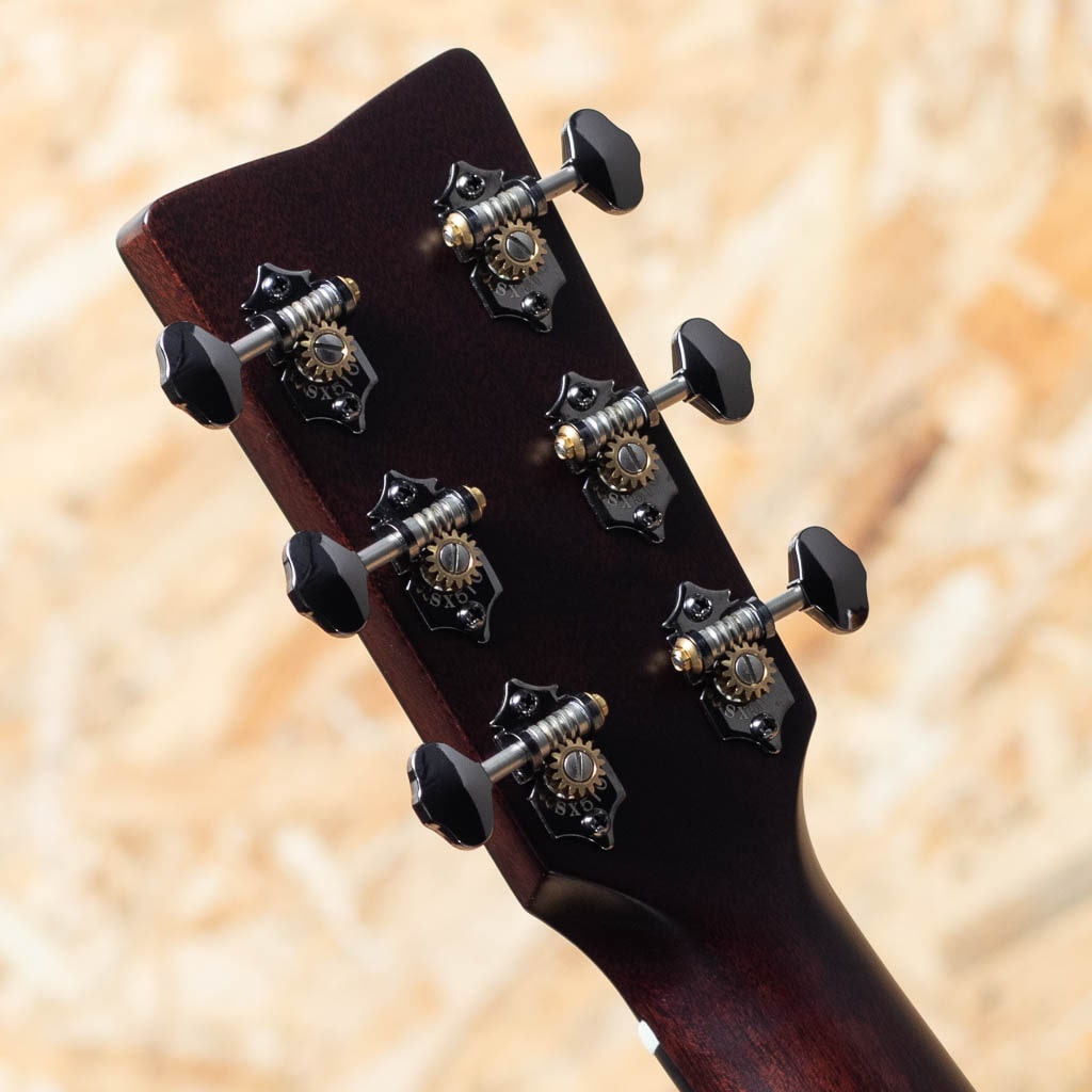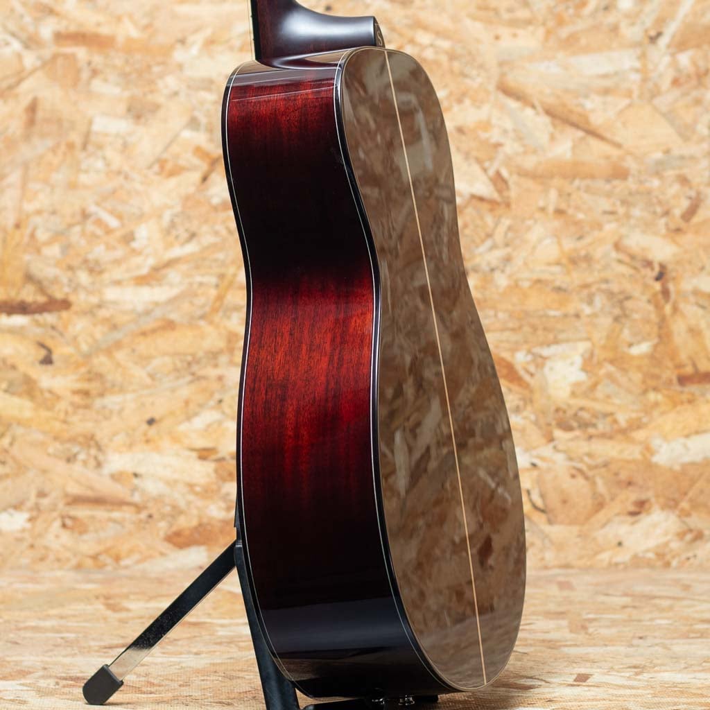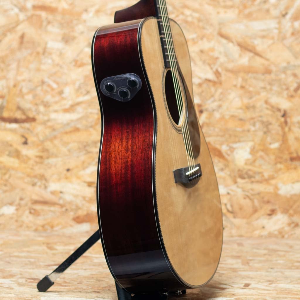 FGシリーズの最高峰国産モデルとして発売された”FG9”シリーズに新たにFSシェイプが登場しました。奏者の弾き方に応える表現力の広さを持ったフラッグシップモデルシリーズ。表板はテーパーエッジ加工を施したアディロンダックスプルースを採用し、構造上の強度を増すと共にボディを効率よく振動させ、力強さと感度の良さの両方に貢献しています。ネックはボルトオン部分と接着部分を組み合わせた新しい構造デザインにより、ボディの振動を高めると共にメンテナンス性を向上。指板上の特徴的なポジションマークは日本の組木細工と同様で、サウンドホール周辺ロープ状のインレイとパーフリングのデザインは日本の文化に基づいています。設計にあたっては、最先端の音響測定と3次元構造測定プロセスを採用し、物理的構造が音響特性にどの様に影響するかを可能な限り解析し、熟練したカスタムショップのビルダーによって繰り返しプロトタイプを製作。こうしてこれまでのモデルとは一線を画す、ハイクオリティギターが完成しました。本器はマホガニーサイド&バックのエレアコモデル”FS9 MX”。レスポンスよく、気持ちの良いミッドレンジにパワフルなサウンドで弾き手に心地よい振動を与えてくれます。ストロークはもちろんですが、フィンガーピッキングや繊細なアルペジオ、指弾きでの弾き語りに最適です。搭載されているAtmosfeelピックアップシステムによりそのサウンドをステージ上でありのままにラインアウトし、収録やライブ、様々な音楽シーンにて即戦力の一本です。小振りなボディとショートスケールで抱えやすさ、演奏性も抜群。まさにフラッグシップモデルにふさわしいハイスペック、ハイクオリティなモデル。ぜひご検討ください。