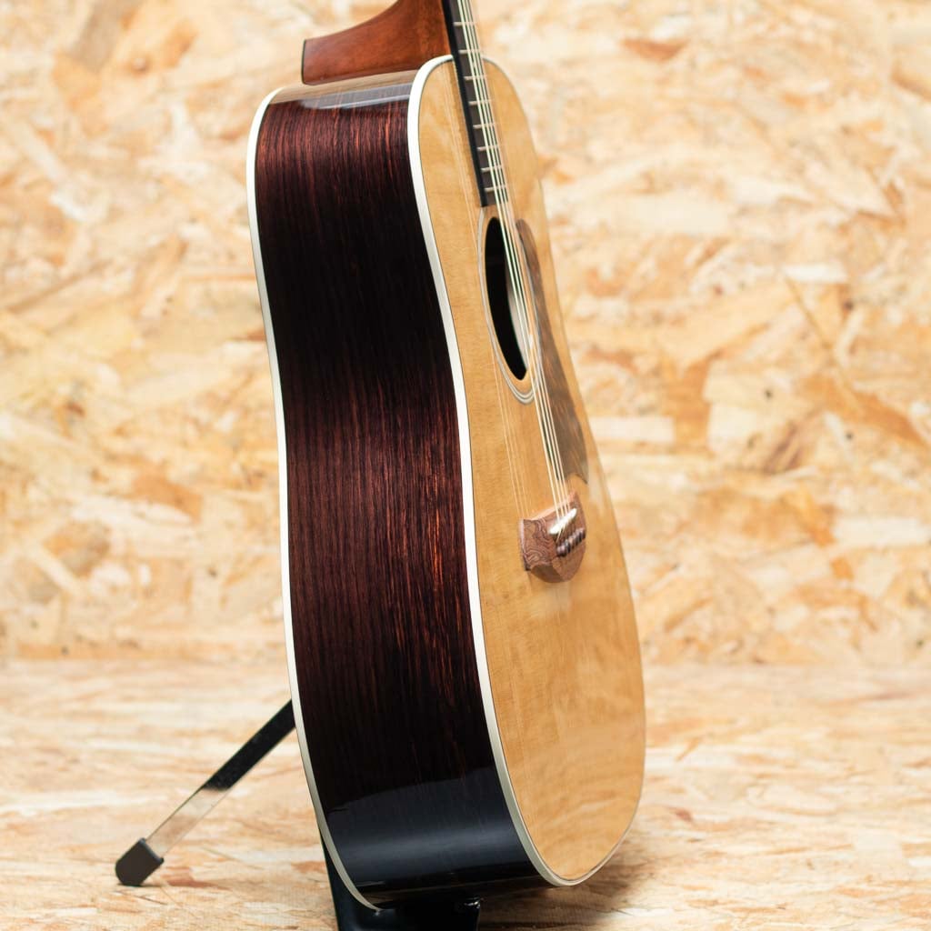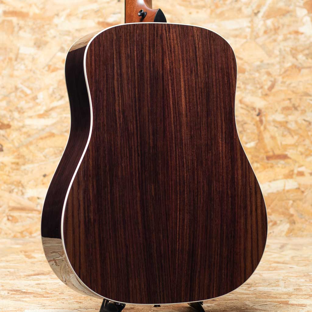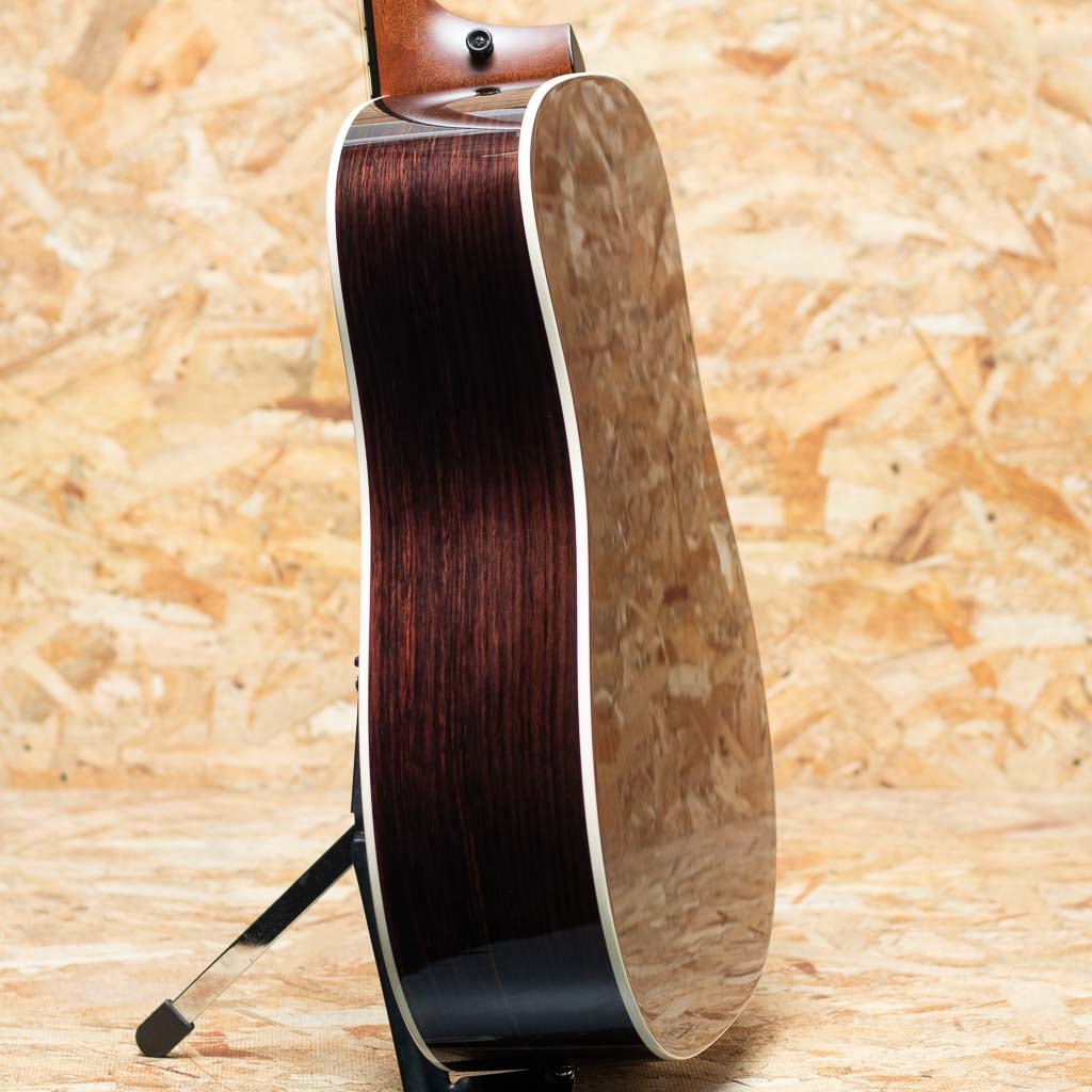 1974年にボブ・テイラーとカート・リスタグの2人によって創立されたテイラー・ギター。革新的なアイデアと高い技術力、ハイセンスなマーケティングで2000年代より急速に成長し、今や世界のトップアコースティックブランドに成長したテイラー社。国内をはじめ特にアメリカではプロミュージシャン使用のシェア率が大変高く、圧倒的な人気を誇っています。本器は”新しいタイプのテイラーサウンドを世界に解き放つ”ニューコレクション”Gold Label 710e”。トリファイドスプルーストップ、インディアンローズウッドサイド&バック、ネオトロピカルマホガニーネック、アフリカンクレリカムエボニー指板、ホンジュラスローズウッドブリッジ、クリーム指板インレイ、クリームバインディング、ニッケルオリジナルペグ、L.R. Baggs Element VTC搭載。クラシックなスクエアショルダーのドレッドノート形状に厚みが加わったボディを採用し豊かで力強いレスポンスを実現。また、V-Classブレーシングにも改良が加えられ、1930~40年代のアコースティックギターからインスパイアされたウォームでウッディなサウンドと甘くレンジが広い音色を得られる新構造のFanned V-Classブレーシングが取り入れられており、その工程には伝統的かつ音響性に優れるホットハイドグルーが使用されています。従来よりもより強固でより簡単に正確なネックアングルの微調整を可能にしたロングテノンネックジョイントはボディ全体の共振が改善され、必要に応じていつでも超精密な調整が可能となりました。音量とサスティンを高い次元で両立させるテイラーギターの新しい選択肢。ぜひお手元で弾き心地をお確かめください。