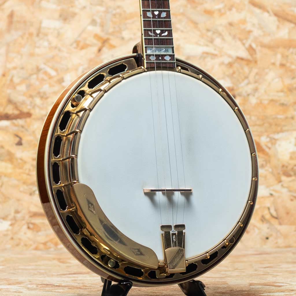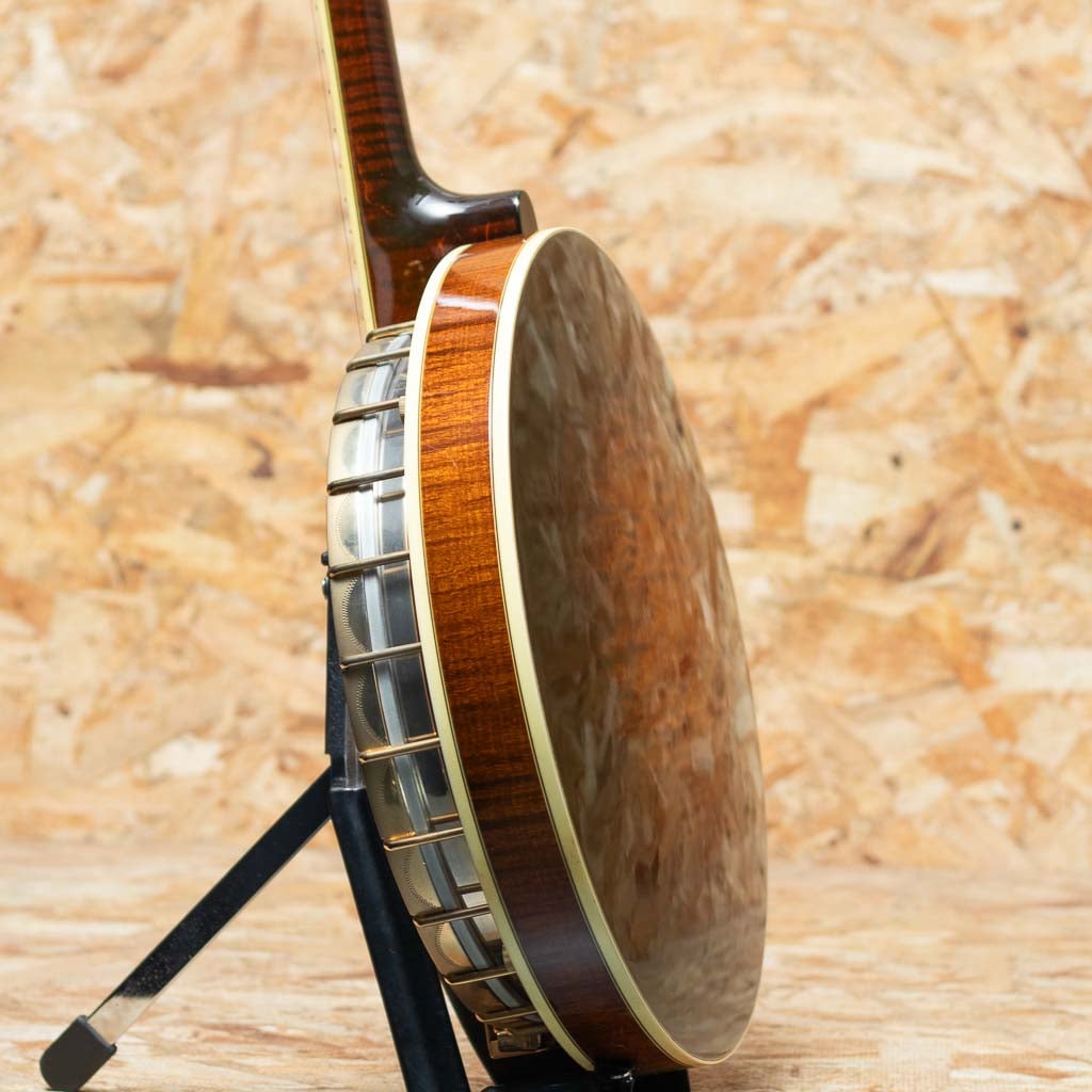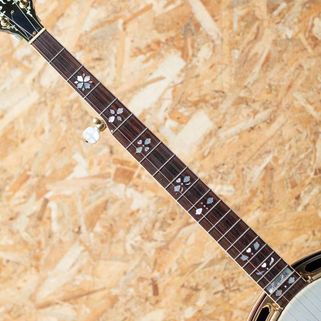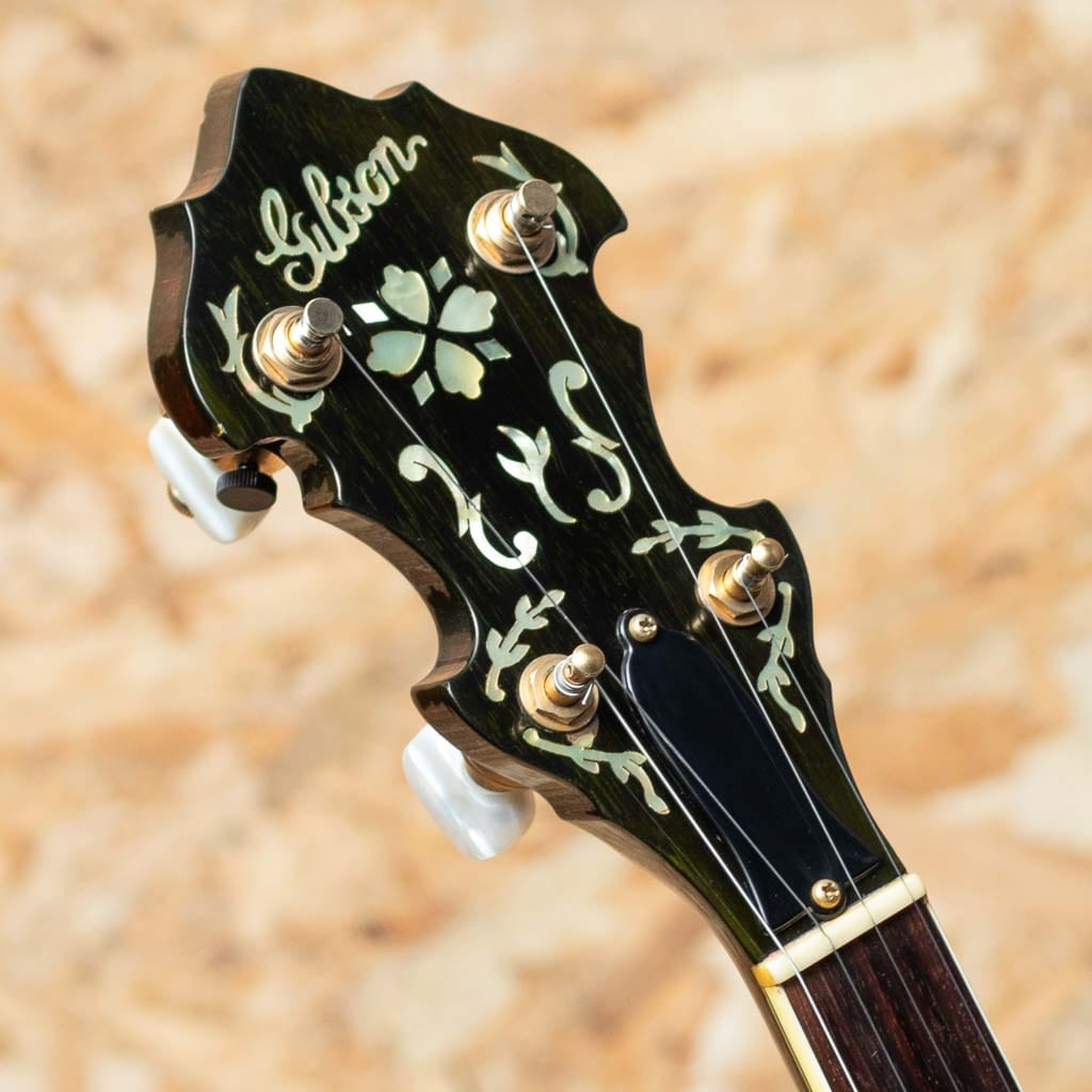 Gibson Granada,。Gibson バンジョーの中でも最も人気の高いハイエンドモデル。当器は1998年製のGranada Hearts&Flower USED品。 カーリーメイプルネック&リゾネーター、3plyメイプルリム、Gibson刻印入り20ホールオリジナルゴールドフラットヘッドトーンリング、ローズウッド指板にハーツアンドフラワーインレイ、1ピースフランジ、デュアルコーディネーターロッド、オリジナルGranada刻印入りゴールドテールピース、ゴールドハードウェアーには若干の曇りくすみが見られます。他リゾネーターのキズなど細かな使用キズなどは見られますが大きなダメージはなく30年以上を経過した楽器とすればよい状態です。7.9.10Fにスパイク打ち、2.3弦ペグはゴールドキースチューナーを装着したフルコンプリート仕様。オリジナルペグも付属致します。太くもキレよくコロコロと転がるような軽快さ、ローズウッド指板のグラナダならではの甘くも華やかなトーンも充分に感じる事ができます。現在ではGibson Banjoの生産もなくUSED品もなかなかありません。Gibsonハイエンドモデルグラナダ。お探しの方は是非お早めにご検討下さい。オリジナルハードケース付属。