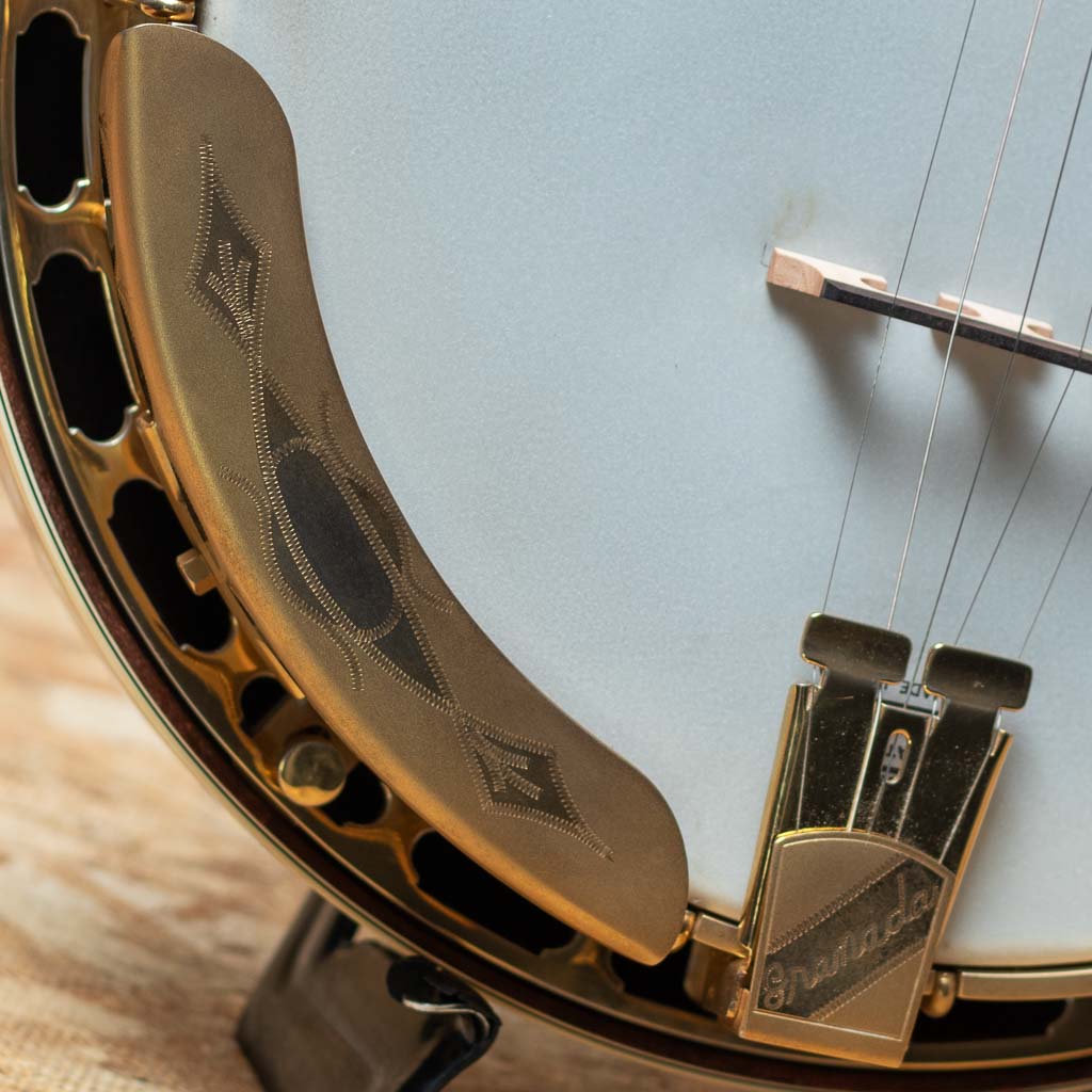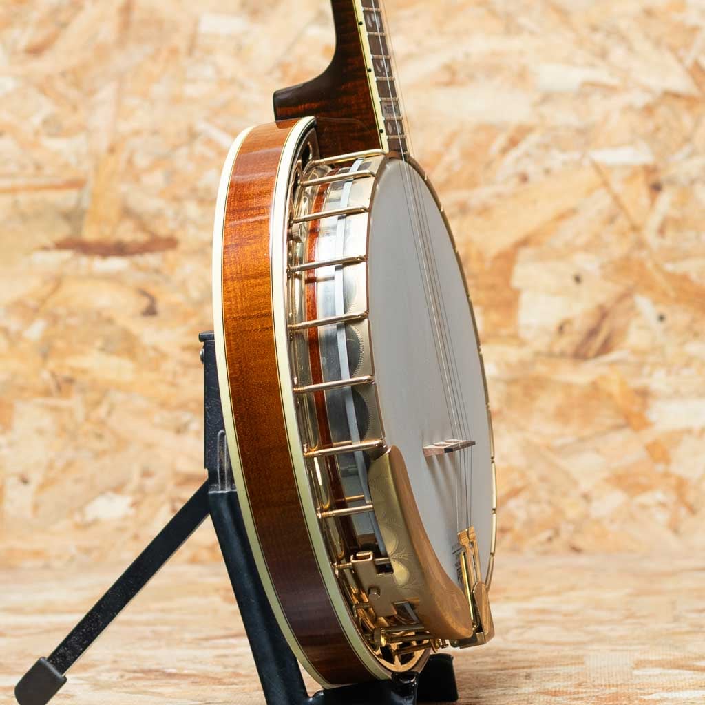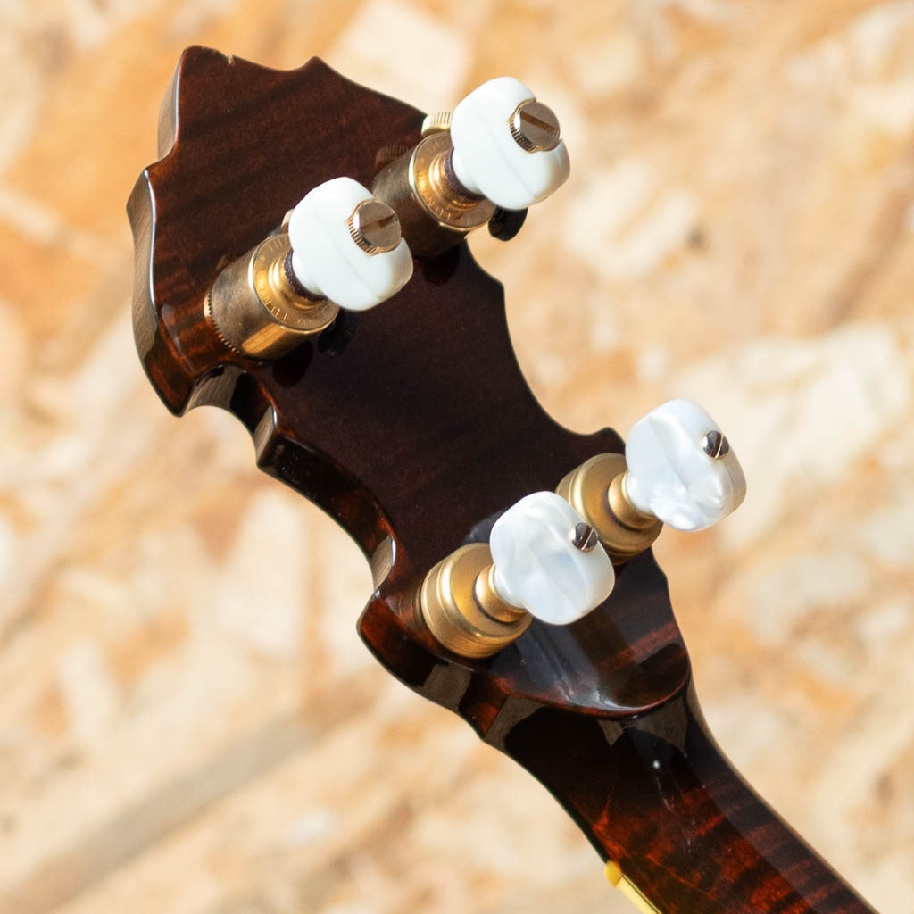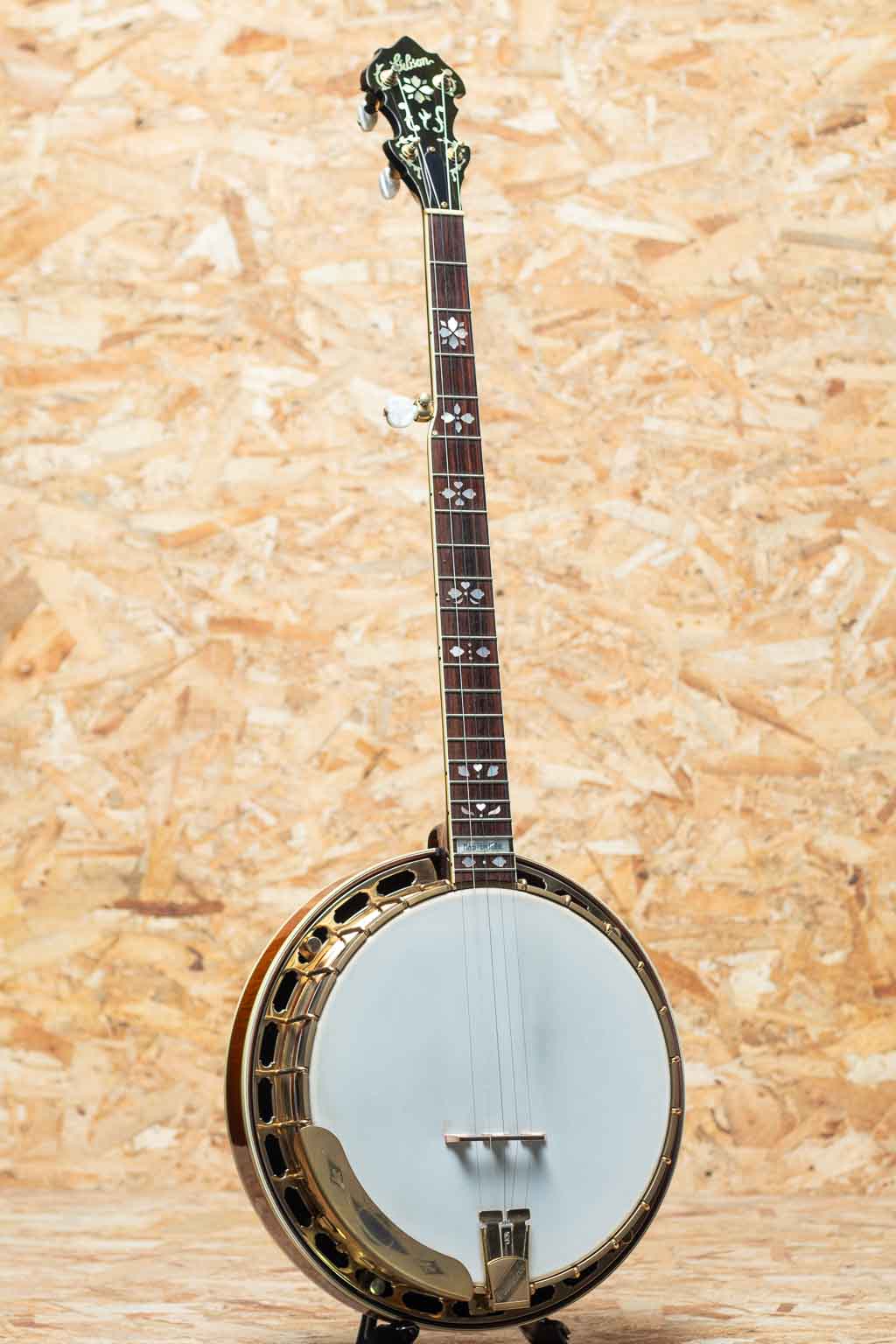 Gibson Granada,。Gibson バンジョーの中でも最も人気の高いハイエンドモデル。当器は1998年製のGranada Hearts&Flower USED品。 カーリーメイプルネック&リゾネーター、3plyメイプルリム、Gibson刻印入り20ホールオリジナルゴールドフラットヘッドトーンリング、ローズウッド指板にハーツアンドフラワーインレイ、1ピースフランジ、デュアルコーディネーターロッド、オリジナルGranada刻印入りゴールドテールピース、ゴールドハードウェアーには若干の曇りくすみが見られます。他リゾネーターのキズなど細かな使用キズなどは見られますが大きなダメージはなく30年以上を経過した楽器とすればよい状態です。7.9.10Fにスパイク打ち、2.3弦ペグはゴールドキースチューナーを装着したフルコンプリート仕様。オリジナルペグも付属致します。太くもキレよくコロコロと転がるような軽快さ、ローズウッド指板のグラナダならではの甘くも華やかなトーンも充分に感じる事ができます。現在ではGibson Banjoの生産もなくUSED品もなかなかありません。Gibsonハイエンドモデルグラナダ。お探しの方は是非お早めにご検討下さい。オリジナルハードケース付属。
