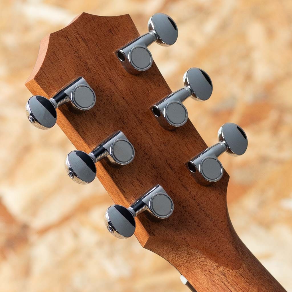 洗練されたデザインと他ブランドを凌ぐ演奏性、そして抜群に安定したクオリティで今やアコースティックギターの定番の1つとなっている"Taylor"。プレイアビリティに対する拘りとピックアップを含めた革新的な技術は、常に業界に影響を及ぼし続けています。本器は”GS Mini-e Special Edition Trans White”。世代を問わず愛用されるGS-miniシリーズ、50本限定カラーモデルです。トリファイドシトカスプルーストップ、サペリサイド&バック、トロピカルマホガニーネック、エボニー指板&ブリッジ、パール指板インレイ、ファイアストライプ柄ピックガード。そのサイズ感から体格を選ばず抱えやすく、気軽に構えることが可能。持ち運ぶ際にも大きさを感じにくいため気軽に持ち出すことができます。生音はこのサイズながらしっかりとしたボリューム感。ローズウッドの仕様から重厚さを感じられる低音感や上品な高音成分を感じることが出来、煌ピック弾きや指弾き問わず様々なスタイルやジャンルで心地よい演奏を楽しむことができます。ピックアップにはTaylor社独自のES-Bを搭載しており、本格的な演奏活動にもしっかりと対応出来る1本です。