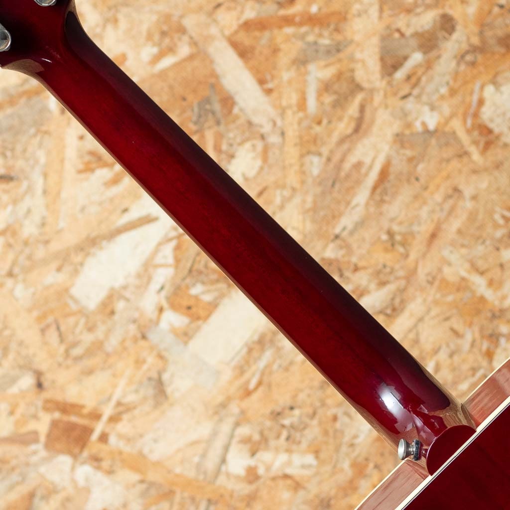 1960年の発売以来、ギブソンスクウェアショルダーボディの定番モデルとして人気を博しているハミングバード。その個性溢れるボディカラー、ピックガード装飾などの外観では想像出来ない、サウンドキャラクターを兼ね備えています。本器は2018年仕様と謳われたモデル。従来のヘリテイジチェリーフィニッシュからビンテージチェリーサンバーストフィニッシュへカラー変更し60年代仕様を意識した様な仕上げになっています。ネックヒールにストラップピン装着、ヘッド裏に”2018”刻印が施されています。ピックガードはほぼ同型のレプリカ品に交換済み。部分的に薄っすらとオリジナルピックガードの痕が見られますが、外観の雰囲気は損なわず違和感のない状態です。ネック1弦側バインディングの塗装がローポジションを中心に剥がれがございますが演奏上の違和感はほぼ感じません。他は全体的に目立つキズ等もなくきれいな艶感をキープしています。ネックコンディションも良好で弾きやすい状態です。マホガニーサイドバックによる明るく歯切れの良いサウンドは、アンサンブルなどのコードストロークに抜群にマッチングし、演奏者を唸らせます。ラウンドショルダーのJ-45に比べ音の厚みはありますが、繊細なアルペジオなどの弾き語りにも対応してくれる1本です。L.R.Baggs社製エレメントVTCのピックアップ搭載の為即戦力としてお使い頂けます。もちろんステージ映えすること間違いなしの1本です。オリジナルハードケース付属
