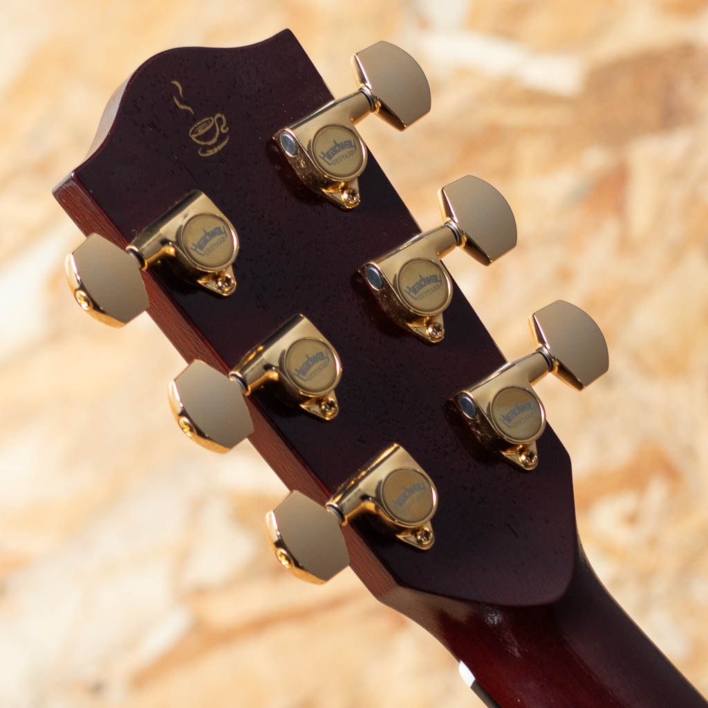 ・ヘッドには「Coffee Break」インレイ、ポジションマークは「コーヒー豆」デザイン