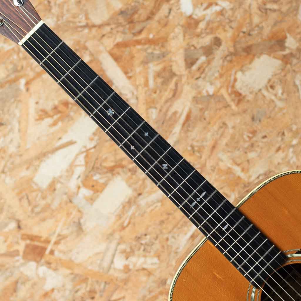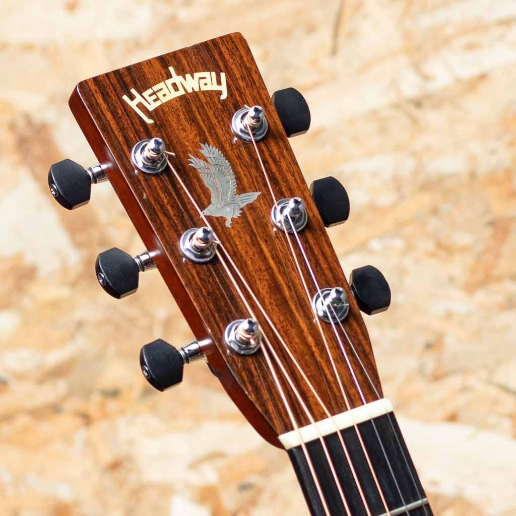 長野県松本市の老舗ブランド"ヘッドウェイ"。大規模なブランドと小規模工房のメリットを合わせたハイブリット式の生産方法を採用し、高品質なギターを生み出し続けています。本器はドレッドノートシェイプの"HD-101"2006年製USED品。スプルーストップ、ローズウッドサイド&バック、マホガニーネック、エボニー指板&ブリッジ、ゴトーペグ、ダイヤモンド&スノーフレークス指板インレイ、アイボロイドバインディング、ヘリンボーントリム、ノンスキャロップドブレイシング。ドレッドノートによるひき締まった低音とバランスの良いサウンド。強いピッキングにも対応でき、プレイヤーのピッキングニュアンスを存分に表現できるポテンシャルを持つ1本です。ヘッド表の上部には塗装の浮きが見られます。全体的に打痕や小キズなどは多めの状態で、ネック裏には爪痕が見られますが、木部の割れはございません。ネック周りのコンディションは良好で演奏性も良く、プレイヤーコンディションの1本。オリジナルハードケース付属。