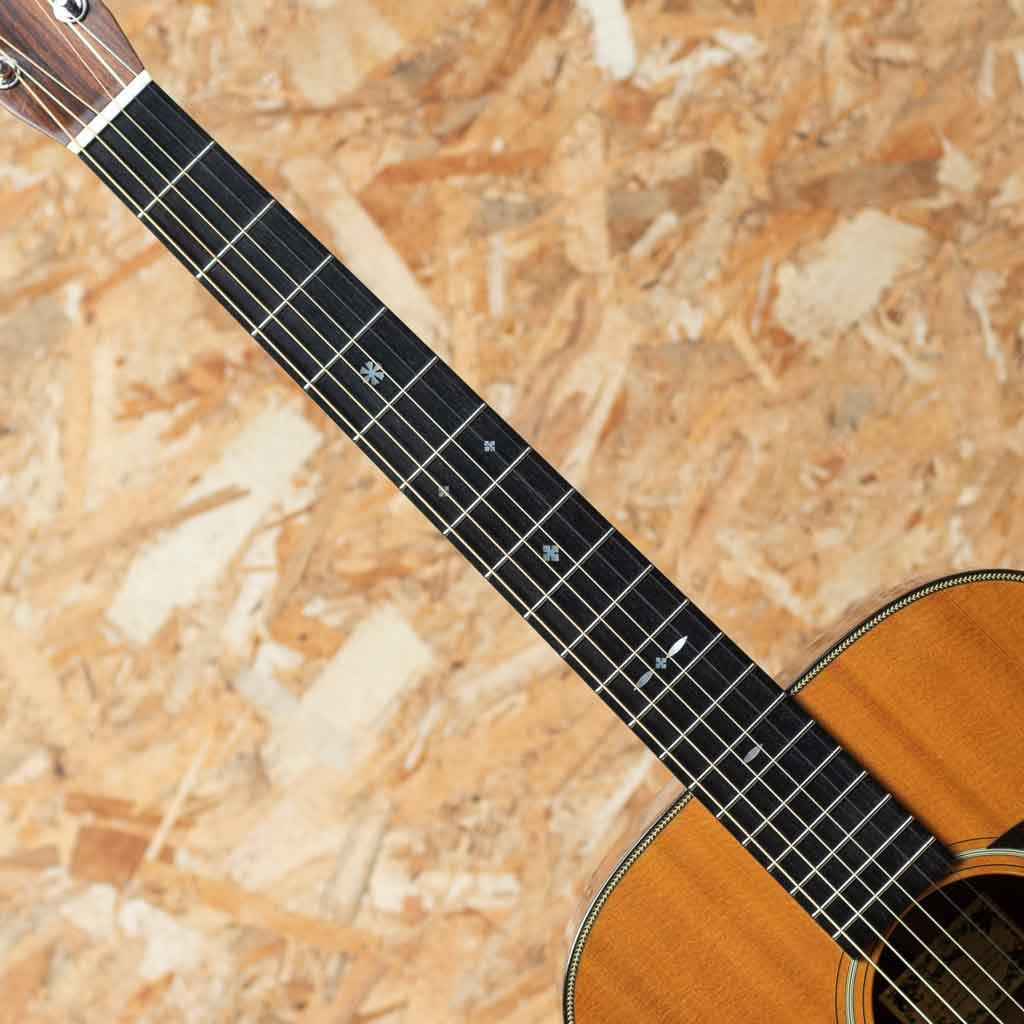 長野県松本市の老舗ブランド"ヘッドウェイ"。大規模なブランドと小規模工房のメリットを合わせたハイブリット式の生産方法を採用し、高品質なギターを生み出し続けています。本器はドレッドサイズの”HD-103”2007年製USED品。シトカスプルーストップ、マホガニーサイド&バック、マホガニーネック、エボニー指板&ブリッジ、ゴトーペグ、ダイヤモンド&スノーフレイクス指板インレイ、ヘリンボーントリム、ノンスキャロップドXブレイシング。伝統的な18スタイルを踏襲したモデルです。Dサイズの為豊かなロー感、空気感を含んだトーン、深く響くような出音。マホガニーらしくドライで乾いたサウンドをでありつつ重量感のあるローも持っており軽い音色の印象は受けません。強いピッキングにも許容範囲が広くプレイヤーのピッキングニュアンスを存分に表現できるポテンシャルを持っている1本です。ストロークでフォーキーにも、フィンガーで緩急をつける演奏にも対応できるギター。ボディ全体にポツポツと細かな塗装の浮きが見られる他、小さな打痕や当てキズは見られますが木部の割れはなく、比較的きれいなコンディションをキープしております。ネックの状態も良く、演奏性も問題ございません。オリジナルハードケース付属。