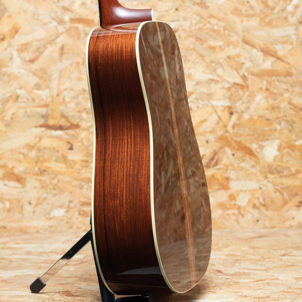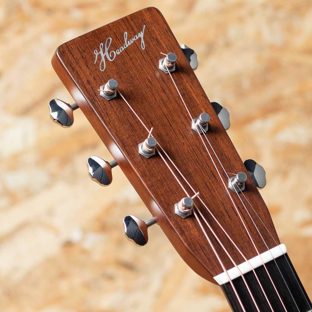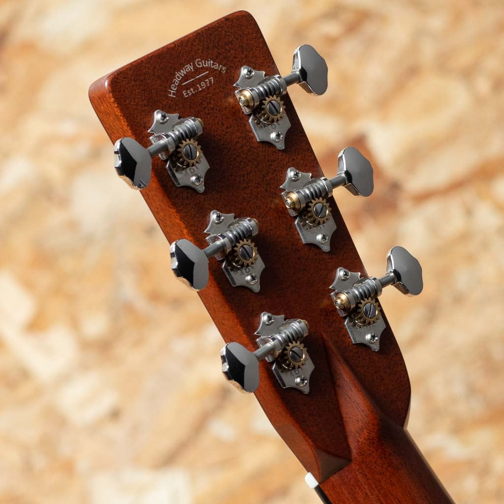 独自の工法と方法論で高品質のアコースティックギターを製作している長野県松本市の老舗ブランド"ヘッドウェイ"。多くのアコースティックギターファン、ミュージシャンたちに支持される日本製ギターを代表するブランドのひとつです。本器はHeadwayのマスタービルダー"降幡 新"氏作のカスタムモデル"HD-280 CUSTOM"2022年製USED品。ボディ材は師である百瀬譲りの優れた選定技術で選り抜かれた極上な材を使用しており、表板には4Aアディロンダックスプルース、サイド&バック材には長年ストックされていたプレミアムセレクトのマダガスカルローズウッドが使用されています。バックには個性を引き立てるアクセントとなるように、センター部分にサップの入った杢が採用されています。ホンジュラスマホガニー1Pネック、エボニー指板&ブリッジ、34セミフォワードシフテッドスキャロップドXブレイシング、ゴトーオープンバックペグ、筆記体ロゴ。敢えて飾らないことにより、飽きが来なく、長く愛されるデザインとなっています。軽いタッチでもしっかりとしたボリュームで迫力のあるサウンド。塗装も音色を最大限に引き出せるよう極薄ラッカーフィニッシュとなっています。バランスも良く、ストローク、指弾きと広いスタイルでお使い頂ける印象です。過去にPUが取り付けられており、ジャックサイズの穴が空いております。わずかに軽微なフレットの摩耗は見られますが、目立つ傷なども特に見受けられず、きれいなコンディションが保たれております。質実剛健、長く育てるギターをコンセプトに製作した1本。オリジナルハードケース付属です。