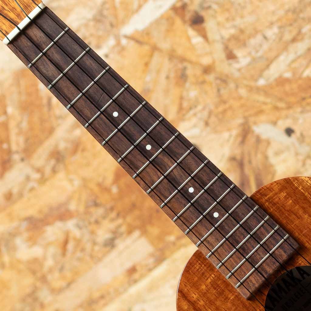 1916年にサミュエル・K・カマカが創業して以来、熟練した職人技と徹底した品質管理を誇りハワイアンウクレレメーカーのトップブランドとしての地位に君臨し続ける「KAMAKA」。本器はスタンダードなソプラノサイズモデルの2017年製USED品。ハワイアンコアボディ、マホガニーネック、ローズウッド指板&ブリッジ、ゴトー製プラネタリーペグ。カマカ特有の太く甘いトーンを持っており、まさにウクレレらしい心地よいサウンド。ソプラノならではの可愛らしい響きも特徴です。軽微なネックのツヤ感などは見られますが、大きく目立つ傷などは見られずきれいな状態です。きれいな杢の個体の1本。オリジナルハードケース付属です。