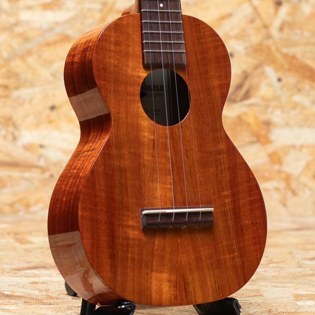 1916年にサミュエル・K・カマカが創業して以来、熟練した職人技と徹底した品質管理を誇りハワイアンウクレレメーカーのトップブランドとしての地位に君臨し続ける「KAMAKA」。本器はスタンダードなコンサートサイズモデルのUSED品。2014年製です。ハワイアンコアボディ、マホガニーネック、ローズウッド指板&ブリッジ。ペグはゴトー製のUPTペグへ変更されています。カマカ特有の太く甘いトーンを持っており、まさにウクレレらしい心地よいサウンド。現行モデルとは異なり、グロスフィニッシュを採用しているため、音色もより艷やかです。使用感は薄く、ネックの状態含めプレイコンディションも大変良好。オリジナルハードケースが付属いたします。