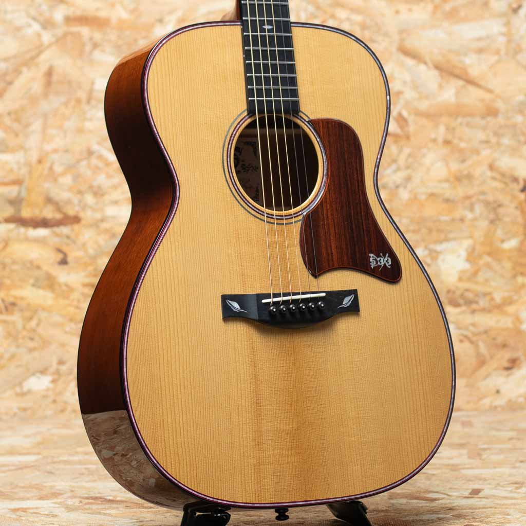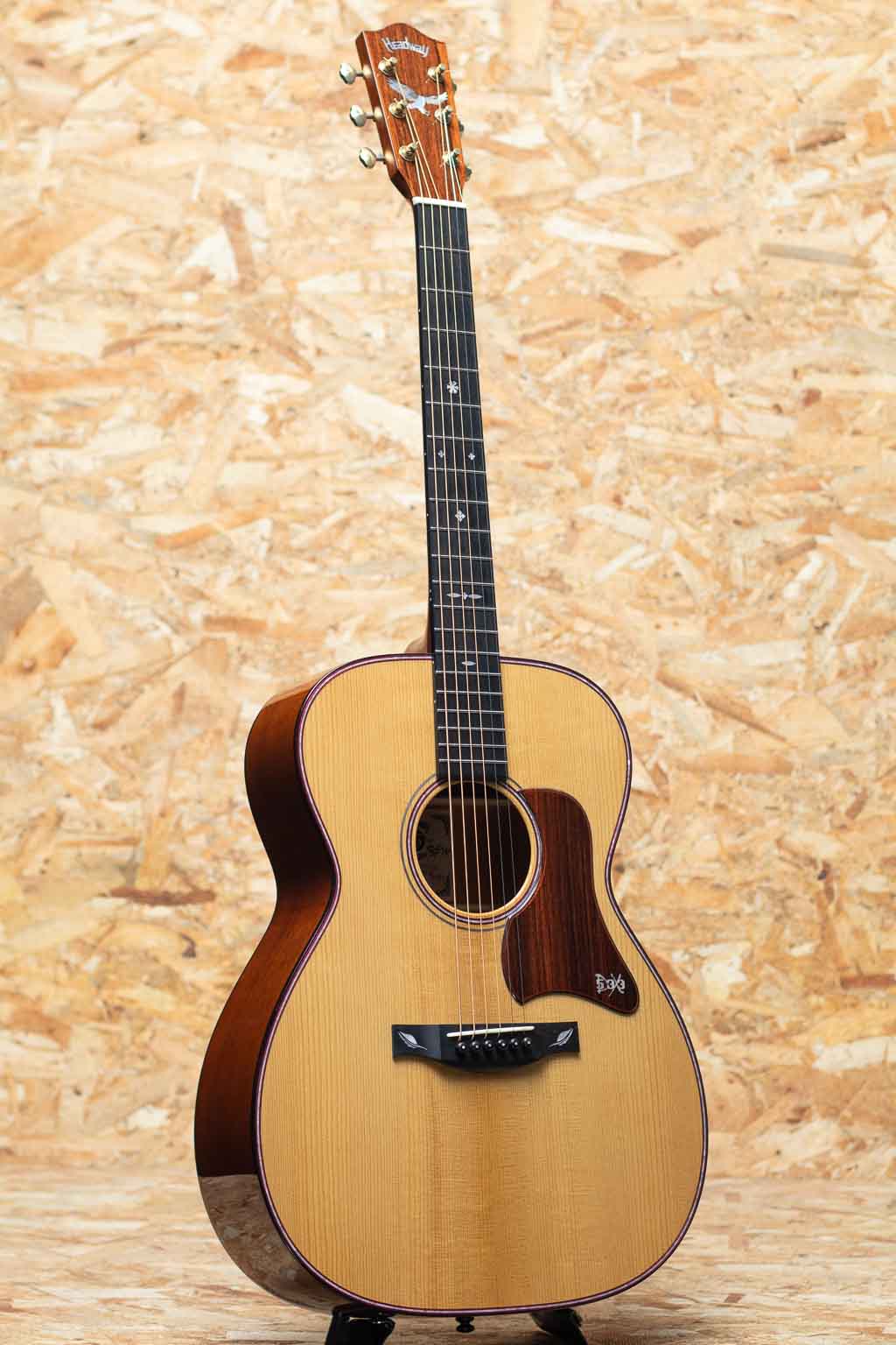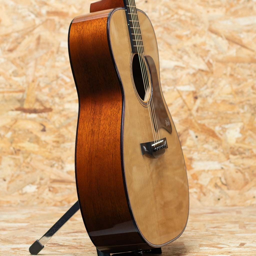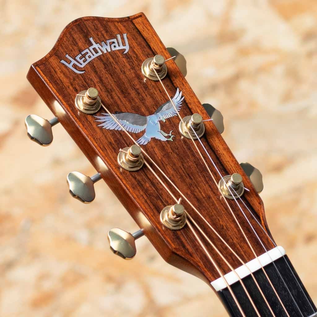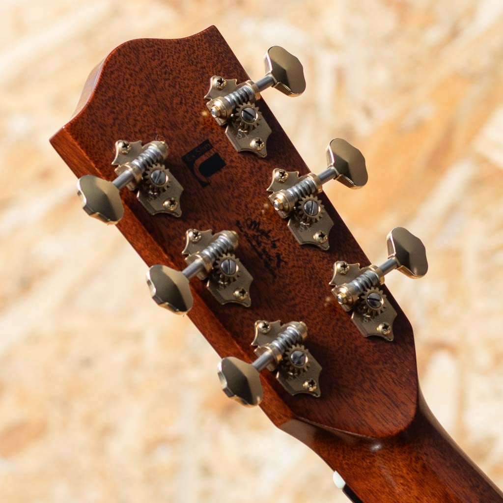 長野県にて工場を持つ(株)ディバイザーの冠ブランドヘッドウェイギター。精度の高い作りが人気を博し70年代よりコアなファンを持つ老舗ブランドです。本器は極上サーモアディロンダックスプルースを採用した”HF-533DX / CM’22 SF,S-ESU/ATB”。"DEVISER ONE DAY GUITAR SHOW"で発表された4本限定スペシャルモデルです。良質なアディロンダックスプルースを無酸素状態にし約180℃近い高温で熱し、乾燥させた後に冷却させたサーモアディロンダックスプルーストップ、通称「赤い宝石」と呼ばれるマホガニー界の最希少材であるキューバンマホガニーサイド&バックワンピースマホガニーネック、エボニー指板&ブリッジ、オリジナルゴトーオープンバックゴールドペグ、オリジナルスノーフレークス指板インレイ、オリジナル塗り込みウッドピックガード、アバロンイーグルヘッドインレイ、ベッコウ柄バインディング、Headway史上最高の薄さと握りやすさを誇るエクストラスリムUネックシェイプ。近年製ながらその音質は数十年も弾き込まれた木材のような水分の抜けた「カラッ」とした枯れたトーンと弾き手のニュアンスを瞬時に表現するレスポンスを併せ持ち、煌びやかで抜けのいいアタック感、そして温かみのあるウッディで明るい黄金比のようなトーンバランスを存分にお楽しみ頂けます。ネックコンディション良好でサドルマージンも充分に残し今後の心配もありません。使用感も薄く、大変キレイな状態をキープした一本。レギュラーモデルとはひと味違う魅力ある限定モデルです。オリジナルハードケース付属