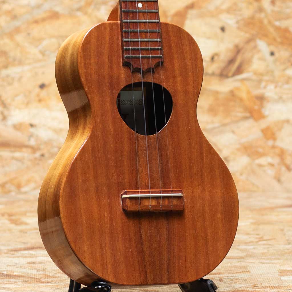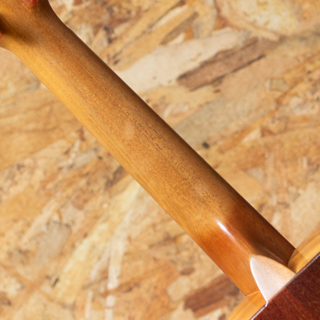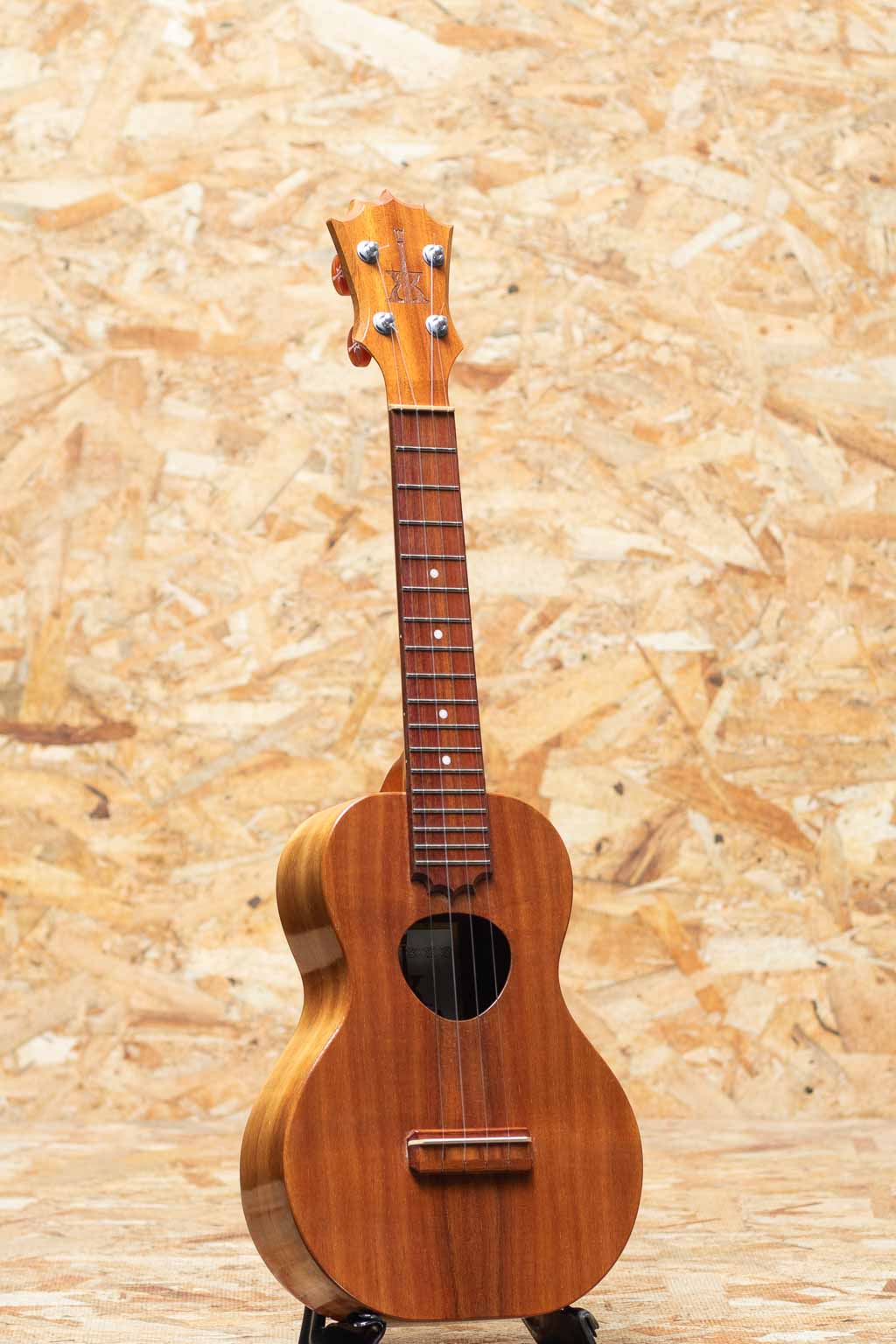 アルヴィン・オカミにより1995年に創設されたコアロハ・ウクレレ。現在は長男で社長のアランと、次男で副社長のポールを中心に、少数精鋭にて運営されております。今ではハワイを代表するウクレレメーカーの一つとなったコアロハ。モダンなルックスデザイン、優れた演奏性で、他のメーカーにはないハイファイでクリア、そしてなんと言っても大きな音量が特徴。本器はコンサートスタンダードモデル”KCM-00”2009年製のUSED品。グロス仕上げで杢目の良さが際立ち、音色も艶やかでまとまりがあります。コンサートサイズで演奏の幅も広く、様々なジャンルに対応可能。ペグはGotoh製のUPTペグに交換されておりますが、ツマミはおなじみのオレンジカラーのコアロハロゴ入りのものが取り付けられております。ボディエンドやサイドに小キズや打痕がいくつか見られますが、大きなダメージは見られず比較的きれいな状態が保たれています。人気ブランドの定番モデルのUSED品。汎用ソフトケース付属。
