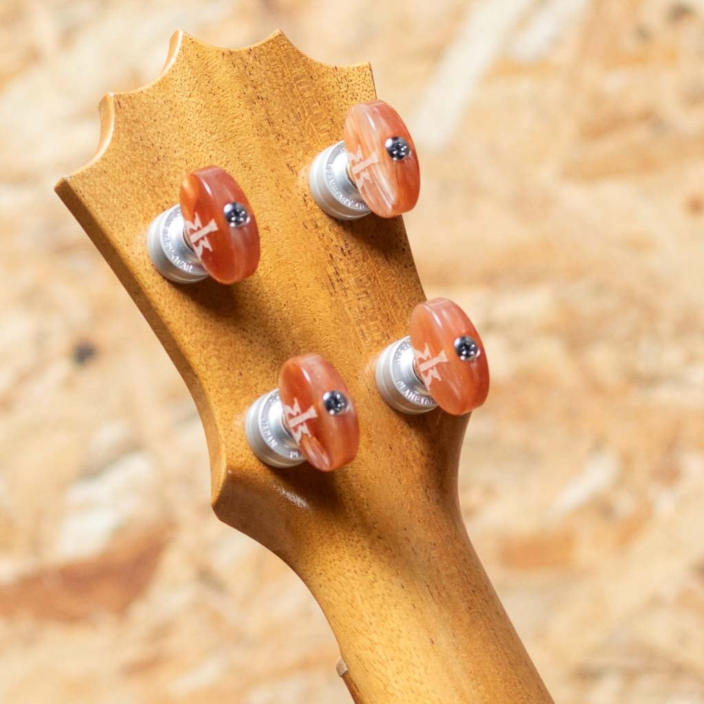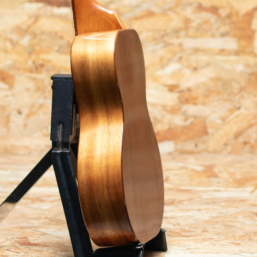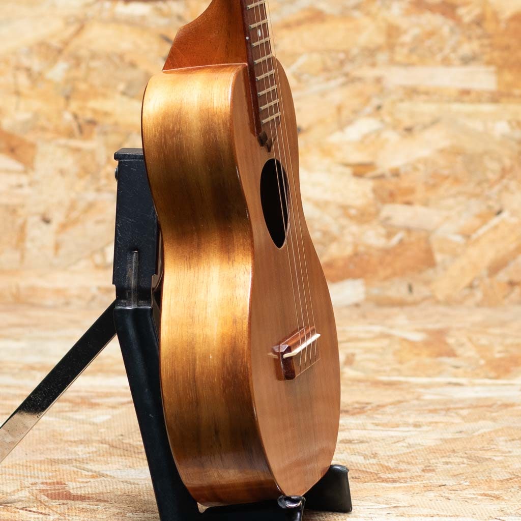アルヴィン・オカミにより1995年に創設されたコアロハ・ウクレレ。現在は長男で社長のアランと、次男で副社長のポールを中心に、少数精鋭にて運営されております。今ではハワイを代表するウクレレメーカーの一つとなったコアロハ。モダンなルックスデザイン、優れた演奏性で、他のメーカーにはないハイファイでクリア、そしてなんと言っても大きな音量が特徴。本器はコンサートスタンダードモデル”KCM-00”2009年製のUSED品。グロス仕上げで杢目の良さが際立ち、音色も艶やかでまとまりがあります。コンサートサイズで演奏の幅も広く、様々なジャンルに対応可能。ペグはGotoh製のUPTペグに交換されておりますが、ツマミはおなじみのオレンジカラーのコアロハロゴ入りのものが取り付けられております。ボディエンドやサイドに小キズや打痕がいくつか見られますが、大きなダメージは見られず比較的きれいな状態が保たれています。人気ブランドの定番モデルのUSED品。汎用ソフトケース付属。